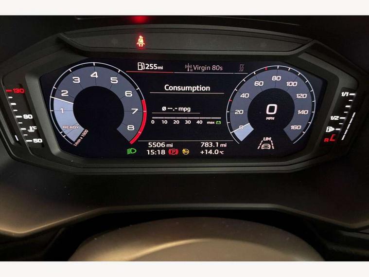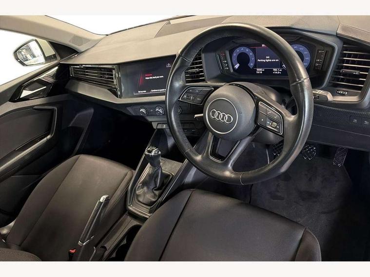 10.25" Digital instrument cluster display classis style instrument dials + speed, odometer, time, outside temperature, telephone menu + fuel level warning, Audi connect safety emergency and service including E-call, Audi smartphone interface with connect compatible smartphone via USB directly MMI display + Nav, music, third party apps controlled via MMI controller, Automatic start/stop system, Bluetooth interface, Driver's information system, Electromechanical power steering, Lane departure warning system, Service interval indicator, Speed limiter, Voice control system, Washer fluid level indicator, Dynamic suspension, 1 x SDXC card reader, 2 x USB type C connection points, 6 passive loudspeakers, DAB Digital radio, MMI radio plus with 8.8" colour MMI display screen and MMI touch, Auto dimming rear view mirror, Body coloured bumpers, Body coloured door mirrors, Electric front and rear windows, Electrically adjustable, heated, folding door mirrors with integrated LED side indicator, Front side air inlets with front spoiler lip and rear diffuser in matt black grained, Heat insulating glass windscreen and side windows, Heated rear windscreen, LED headlights with LED rear lights + dynamic rear indicators + headlight adjustment and high beam, turning light + LED daytime running lights, Radiator grille in matt black, Rain and light sensors, Rear fog lights, Rear wiper, 12V socket in centre console with two cup holders, 3 rear seats with headrests, 3 spoke leather multifunction plus steering wheel, 40:60 Split folding rear seat or folded fully, Air vents, door handle recesses and centre console in black, Delta cloth upholstery, Driver and passenger seat with manual height adjust with forward and backwards adjustment, Front head restraints, Front/rear floor mats, ISOFIX child seat mounting for front passenger and outer rear seats including top tether attachment point of outer rear seats, Leather gear knob with aluminium trim, Leatherette handbrake grip, Luggage compartment light with front and rear reading lights, Manual air conditioning, Titanium grey cloth headlining, Luggage compartment pack - A1, 3x3 point rear seatbelts, Audi pre-sense front with pedestrain and cyclist recognition, Brake assist function, Driver and front passenger airbag with front side and head airbags, Electronic Stability Control including ABS, EBD, ASR and EDL, Front and rear seatbelt reminder, Front passenger airbag deactivation switch, Hill hold assist, Seatbelt height adjustment for front seats, Seatbelt monitoring, Tyre pressure warning light, Warning triangle and first aid kit, Anti theft alarm, Anti theft wheel bolts and loose wheel warning, Immobiliser, Remote central locking with 2 foldaway keys, Black inlays polygon structure, 15" 5 arm design alloy wheels,