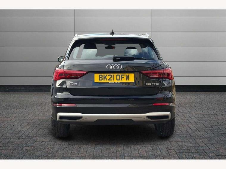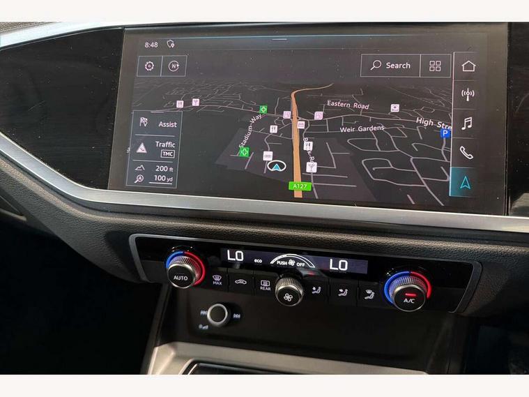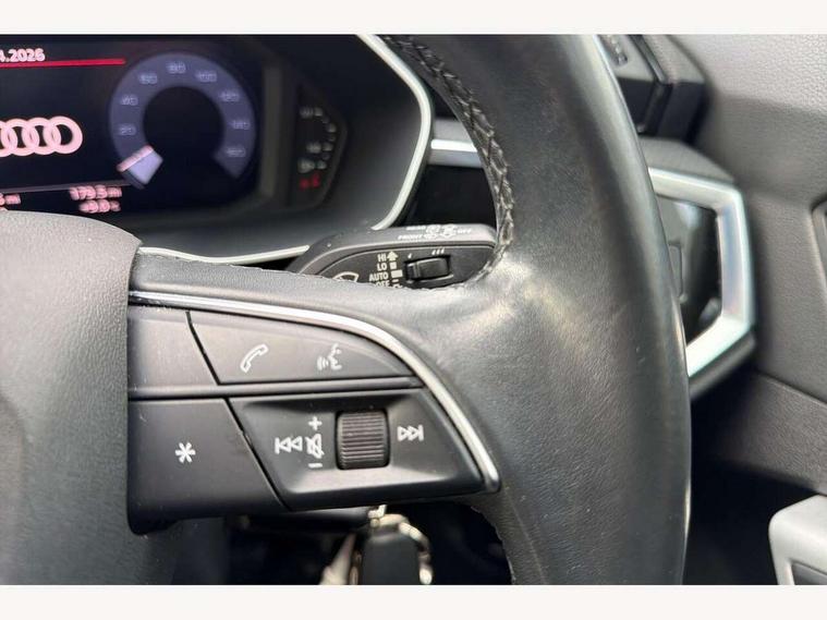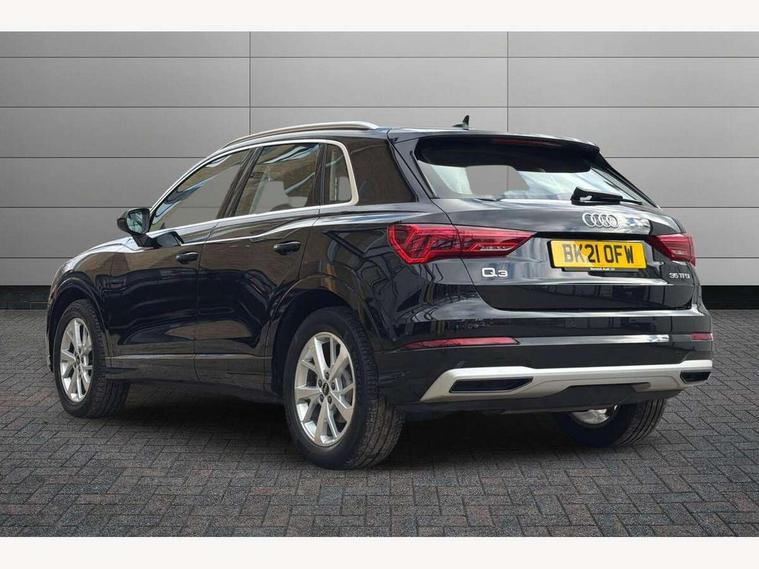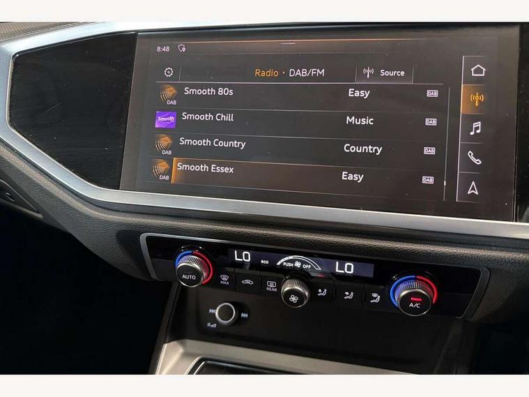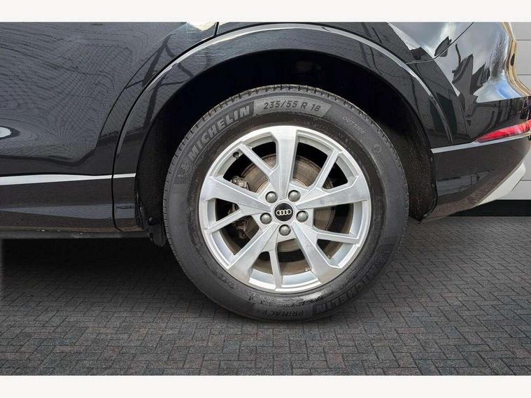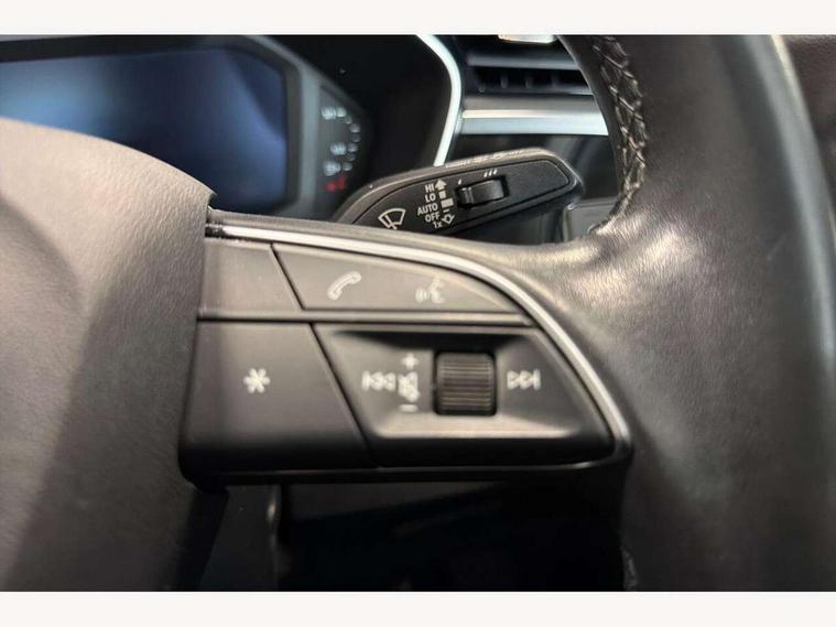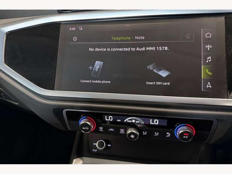 Audi connect safety and service (e-call), Audi drive select, Audi lane departure warning, Audi smartphone interface includes wireless Apple carplay/Android Auto, Audi Virtual Cockpit - 10.25" display, Bluetooth interface, Camera based traffic sign recognition, Cruise control + speed limiter, MMI Navigation Plus with high resolution 10.1 inch touchscreen colour display, Power operated tailgate, Progressive steering, Rear parking sensors, Service interval indicator, Start stop system with recuperation, Voice control system with natural language interaction, Standard suspension, 2 USB-C ports with charge and data functions, 6 passive loudspeakers, DAB digital radio module, Acoustic windscreen, Aluminium roof rails, Aluminium window trim, Auto dimming frameless rear view mirror, Body coloured bumpers, Electrically folding, adjustable and heated door mirrors with integrated LED side indicators and kerb view function for passenger side, Front and rear electric windows, Front fog lights, Front side air inlets in matt selenite silver, Front spoiler in matt selenite silver, Grille vertical bars in aluminium silver/Matt, High gloss black finish B and C pillars, LED headlights with LED daytime running lights and dynamic rear indicator, LED rear lights, Rain and light sensors, Rear diffuser strip in matt selenite silver, Silver chrome grille surround, Titanium black radiator grille, 12V socket in rear centre console, 3 spoke multi-function leather steering wheel, 40:20:40 folding with manual adjustment for 60:40 forwards/backwards position and backrest angle, Adjustable rear seat bench/backrest, Aluminium door sill trims, Dual zone electronic climate control, Front and rear floor mats, Front and rear headrests, Front and rear roof module including reading lights, Front centre armrest, Glove compartment lighting, Height and reach adjustable steering wheel, ISOFIX child seat mounting for front passenger with airbag deactivation and outer rear seat including top tether attachment point for outer rear seats, Luggage compartment light, Lunar silver cloth headlining, Manual front seats with height adjustment, Stainless steel luggage compartment sill finisher, Non smoking pack - Q3, 3x3 point rear seatbelts, 6 airbags - Driver, front passenger, curtain and side windows, Audi pre-sense front with pedestrain and cyclist recognition, Electrically operated child locks on rear doors, Electromechanical parking brake, Electronic stabilisation control including ABS, ASR and EDL, Hill descent control, Hill hold assist, Pre sense basic, Seatbelt monitoring, Tyre pressure warning, Warning triangle and first aid kit, Anti theft alarm, Anti theft wheel bolts, Remote central locking, Detail dashboard around MMI touch colour display in glass look, black with surround in aluminium look, Micrometallic silver inlay,