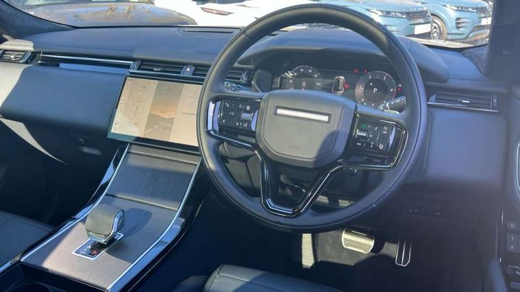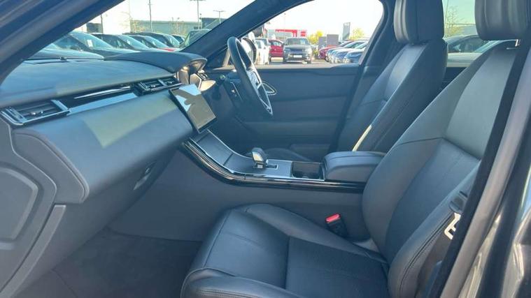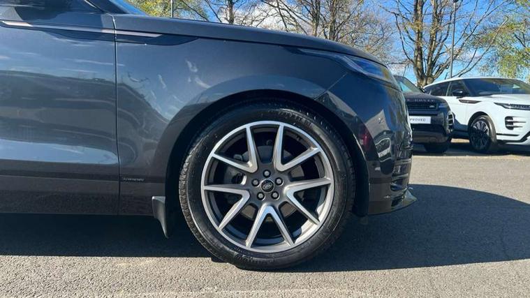3D surround camera includes forward traffic detection and vehicle guidance, Adaptive cruise control with steering assist, Android Auto, Apple CarPlay, Blind spot assist, Bluetooth connectivity, Brake pad wear indicator warning light, Driver condition monitor, eCall emergency call system, Front and rear parking aid, InControl remote, Land Rover InControl apps, Lane keep assist, Pivi pro with connected navigation, Rear collision monitor, Rear traffic monitor, Service indicator, Speed proportional electronic power assisted steering (EPAS), Traffic sign recognition with adaptive speed limiter, Trip computer, Voice control system, Wade Sensing, Wireless device charging, 8 speed automatic transmission, Adaptive dynamics, All terrain progress control, Electronic air suspension, Open differential with torque vectoring by braking, Single speed transfer box, Terrain Response 2 with dynamic program, DAB radio, Steering wheel mounted controls, 3rd brake light, Acoustic laminated windscreen, Auto dimming interior rear view mirror, Autobiography badge, Automatic headlamp levelling, Automatic headlights, Black roof rails, Body coloured bumpers, Boot protection plate, Contrast bonnet in burnished copper & rear lettering, Electric windows with one touch open/close and anti trap, Flush deployable exterior door handles, Follow me home headlights, Heated rear window with timer, Heated washer jets, Heated windscreen, Metal load space scuff plates, Pixel LED headlights with signature DRL, Power fold, auto-dimming, heated door mirrors with memory and approach lights, Rain sensor windscreen wipers, Rear animated directional indicators, Rear fog lights, Rear side wing doors, Rear wash/wipe, Sliding panoramic roof with powered sunblind, Tailgate/boot lid spoiler, Trailer stability assist, Velar badge, 3 seat bench in 2nd row, Ambient lighting, Bright metal pedals, Carpet mats, Driver/passenger sunvisors with illuminated vanity mirrors, Ebony suedecloth headlining, Electrically adjustable steering column, Full extended leather upgrade, Heated steering wheel, Isofix system on outer rear seats, Loadspace cover, Overhead lighting console, Overhead stowage for sunglasses, Passive front headrests, Rear air vents, Rear centre headrest, Single front passenger seat, Twin front cupholders, Twin sliding front centre armrest, Online pack with data plan - Velar, Power socket pack 2 - Velar, 380mm front brakes and 325mm rear brakes, 3x3 point rear seatbelts, Anti-lock braking system (ABS), Cornering brake control, Curtain airbags, Customer configurable autolock, Door side intrusion beams, Driver airbag, DSC - Dynamic Stability Control, Electronic brake force distribution, Electronic parking brake, Electronic traction control, Emergency braking, Front and rear seatbelt reminder, Hill descent control, Hill launch assist, Low traction launch, Passenger airbag, Power operated child locks, Rear airbags, Roll stability control, Side airbags, Tyre pressure monitoring system (TPMS), Global lock and unlock switch on driver door, Immobiliser, Intrusion sensor, Keyless entry, Lock only switch on front passenger door, Locking wheel nuts, Perimetric alarm, Remote central locking, All season tyres,