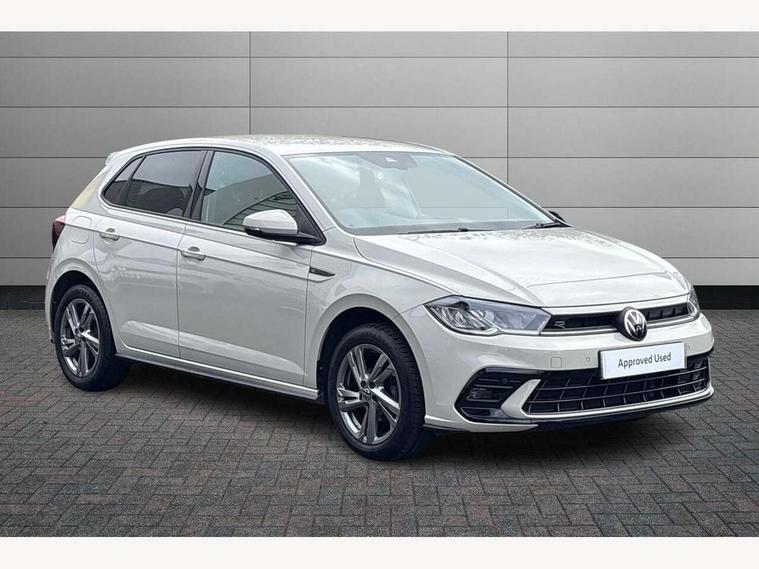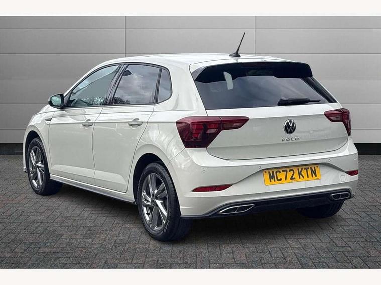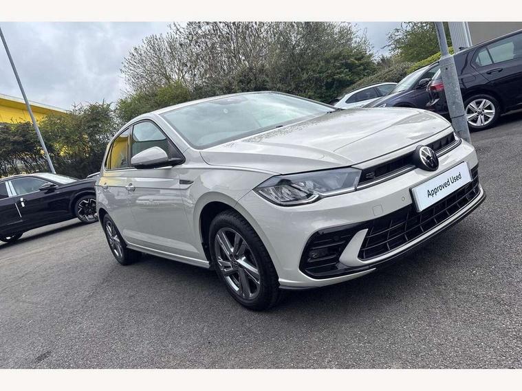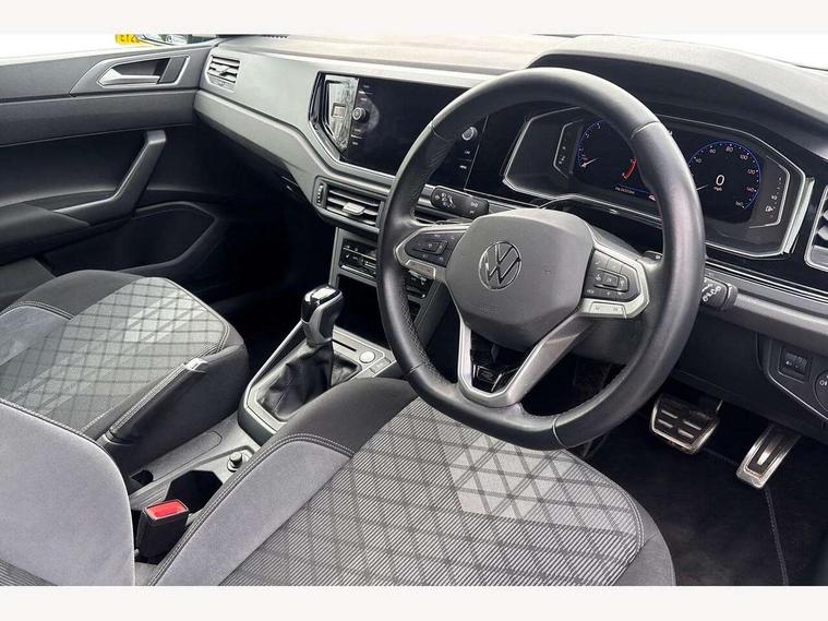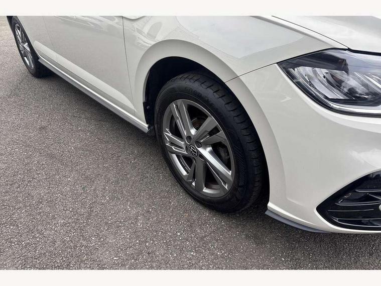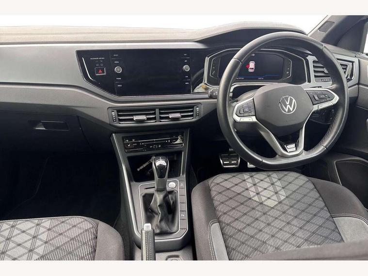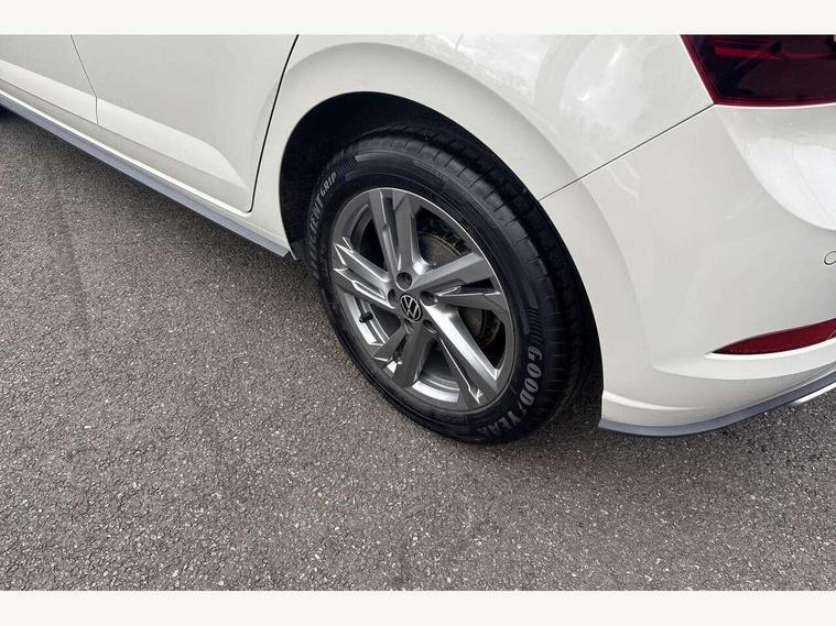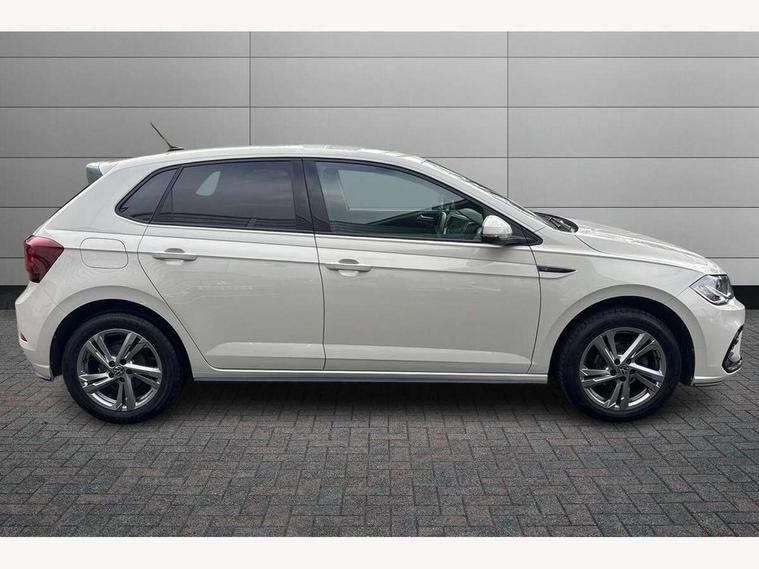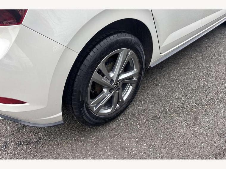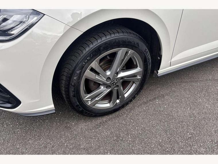 Adaptive cruise control with follow-to-stop and speed limiter, Bluetooth mobile phone interface, Digital Cockpit Pro with 10.25" Display, Driver alert system, Dynamic road sign display, Emergency call service, Power assisted speed sensitive steering, Preparation for We connect and We connect plus, Speedo and rev counter, electronic odometer, trip, service interval display and fuel gauge, Standard rear axle, Travel Assist - Lane keeping system and traffic jam assist, Travel assist including emergency assist, Trip computer, Warning signal and warning light for front and rear seatbelts not fastened, Washer fluid level indicator, Wireless app connect, Front wheel drive, Rear shock absorpion, Start-stop system with battery regeneration (recuperation - energy recovery during braking), DAB Digital radio, Diversity antenna for FM reception, Front and rear 6 speakers, Body colour bumpers, Body colour door handles, Electric front windows, Front scuff plates with R-Line logo, Heat insulating darkened glass in side and rear windows, Heat insulating glass windscreen, Power folding adjustable/heated exterior mirrors and front passenger exterior mirror lowering function, Rear electric windows, Rear fog light, Rear side wing doors, Rear windscreen washer and wiper with interval delay, Third brake light, 12V power socket in centre console, 2 USB-C ports in the front, 2 USB-C charging sockets on the center console in the rear, 3 rear head restraints, 60/40 split folding rear seat and rear seat bench not split, Air care climatronic air conditoning system with active combination filter and 2-zone temperature control, Black roof lining, Chrome plated radiator grille inserts, air vent surrounds and light switch surrounds, Door and side trim panel, Driver and front passenger seat height adjustment, Driver/passenger sunvisors with illuminated vanity mirrors, Front + rear carpet mats in recycled material, Front centre armrest, Front footwell illumination, Front seat backrest storage pockets, Front sports comfort seats, Handbrake lever handle in leather, Headliner in recycled material, Isofix child seat preparation easy-fit (for two outer rear seats, and front passenger seat) compatible with I-size, Karoso artvelours cloth upholstery, Leather trimmed gear knob, LED interior light with switch off delay and dimmer, 2 reading lights front and rear, Luggage compartment cover, Luggage compartment floor, Luggage compartment lighting, Lumbar adjustment for front seats, Single front passenger seat, Stainless steel pedals, Standard pedal cluster, Three spoke leather wrapped multifunction steering wheel with shifting paddles, Light and sight pack - Polo R-Line/Black Edition, 3 point height adj front seatbelts + pretensioners, 3x3 point rear seatbelts, ABS, Driver and front passenger airbag with front passenger airbag deactivation, Drivers and front passengers safety optimised head restraints, ESC (Electronic stability control) + EDL (Electronic Differntial lock) and ASR (Traction control), Extended and predictive pedestrian/ cyclist protection, Front curtain and side airbags with center airbag, Hill hold control, Manual child lock in rear doors, Single tone horn, Tyre pressure loss indicator, Alarm with interior protection, Anti-theft alarm system with interior monitoring, backup horn, and towing protection, Anti-theft wheel bolts, Electronic engine immobiliser, Chrome applications on rotary light, mirror adjustment, window regulator switches, outlet with frame in black, Dark grey anodised matt decorative inserts in dash and front door panels, Low rolling resistance tyres,