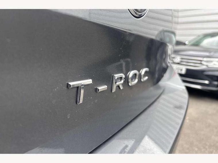 10.25" Digital cockpit pro, Bluetooth mobile phone interface, Driver alert system with fatigue detection, Driver tips and journey analysis, Emergency call service, Lane keeping system Lane Assist, Modified key software - reduce switch off time for key status change to Long no motion, Online services, Park assist including front and rear parking sensors, Service interval indicator, Tailgate/trunk lid release from outside, Think blue trainer driver tips and journey analysis, Warning sound and light for front seatbelts unfastened, Wireless app connect, Battery regeneration during braking, Start/stop function with battery regeneration, Diversity antenna for FM reception, Music playback - MP3, WMA and AAC files, Premium USB cable in choice of either Apple or Android smartphone compatibility, SD card slot, Simultaneous pairing of 2 compatible mobile devices, Title and cover art display, We Connect and We Connect Plus functionality, 3rd brake light, Auto dimming interior rear view mirror, Automatic hazard lights activation under emergency braking, Automatic headlight control with LED separate daytime running lights with coming/leaving home function, Body colour sports bumpers with silver metallic underbody fascia, Dynamic headlight range control with self adjusting whilst driving, Extended roof spoiler, Exterior mirrors aspherical on driver side, convex on front passenger side, External USB type C socket and charging sockets, Front windscreen wiper with intermittent wipe and 4 position delay, Heated rear window, LED rear combination lamps, LED rear number plate lights, LED tail lamp rear comination lamps, Light mode for poor weather, rain, fog or snow, Power windows with comfort operation and circuit breaker, Rain sensor, Rear exhaust tailpipe, Rear fog light on one side and reversing lights on both sides, Rear side wing doors, Rear wash/wipe with intermittent wipe setting, Remote electrically foldable door mirrors, puddle lights and reverse activated passenger's door mirror, 12V power socket in centre console, 3 rear head restraints, 3 seat bench in 2nd row, 4 load lashing points in luggage compartment, Air care climatronic air conditoning system with active combination filter and 2-zone temperature control, Chrome plated radiator grille inserts, air vent surrounds and light switch surrounds, Door and side trim panel with leatherette insert, Drawer under drivers seat, Front + rear carpet mats, Front centre armrest, Front comfort sports seats, Front cupholders x 2, Front footwell illumination, Instrument lighting, white adjustable panel illumination, Interior ambient lighting and surround lighting, Interior light delay, Isofix child seat preparation, Leather gearshift handle, LED interior light with switch off delay/dimmer and 2 front/rear LED reading lights, Load-through provision with cup holder when folded down ('Unsplit rear seat bench, split folding backrest, with centre armrest), Luggage compartment lighting, Non-folding front passenger seat backrest, Single front passenger seat, Storage compartment in left and right luggage area, Storage compartment in rear doors, Storage compartments in driver and front passenger doors, Sunvisors with illuminated vanity mirrors, Variable boot floor, height adjustable and removable, Driver assistance pack without proactive passenger protection - T-Roc, 3 point height adj front seatbelts + pretensioners, 3 point seatbelts in outer rear with ECE label, ABS, Child locks on rear doors, Driver and front passenger airbag with front passenger airbag deactivation, Driver and front passenger safety-optimised head restraints, Drivers seatbelt reminder, Electronic parking brake, Electronic Stability Control (ESC) inc EDL (Electronic Differential Lock) and ASR (Traction Control), Front and rear passengers curtain airbag system including front side airbags, Front assist with city emergency braking and pedestrian monitoring, Front seat side impact airbags, Predictive pedestrian protection, Rear disc brakes, Single tone horn, Tyre pressure loss indicator, Volkswagen roadside assistance, Anti-theft alarm system with interior monitoring, backup horn, and towing protection, Remote central locking with SAFELOCK, radio remote control with 2 remote control folding keys, Trims for alloy wheels,