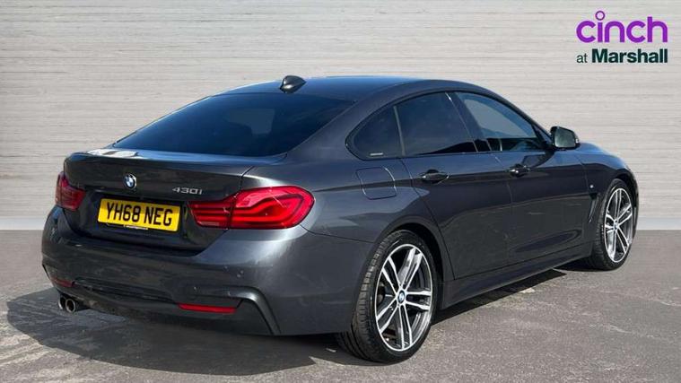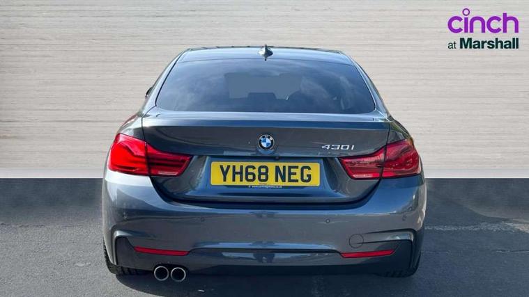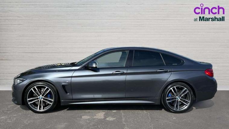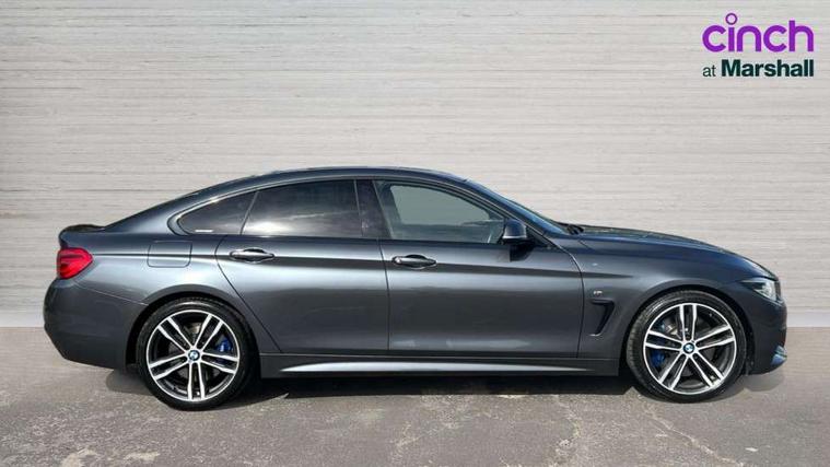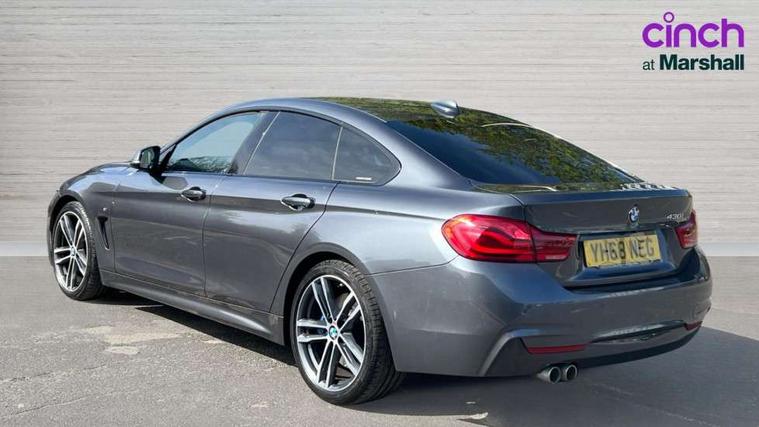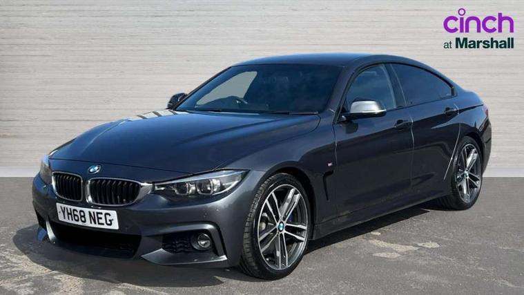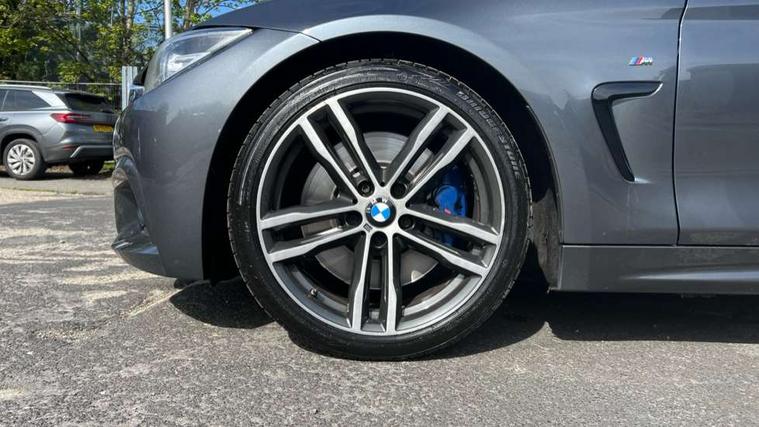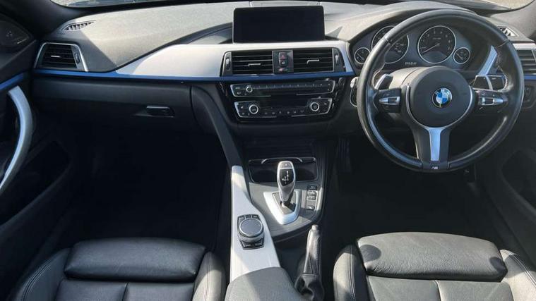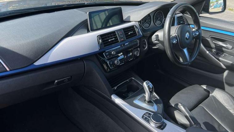Auto start-stop, Automatic tailgate operation, BMW Online services, BMW remote services, BMW Teleservices, Brake pad wear indicator warning light, Check Control warning system for monitoring of lights and door/luggage compartment open warning, Control display - 6.5" colour display screen, Front/rear park distance control (PDC), iDrive Controller with 8 favourite buttons, Instrument cluster with speedometer with mph readout, tachometer, fuel gauge and oil temperature gauge, Lights on warning by audio warning signal when ignition is switched off, M Sport instrument cluster, Oil sensor for level and grade, warning by check control system, On board computer - average speed, fuel consumption, outside temp display with acoustic warning, clock/date, service interval, odometer/trip meter, Optimum shift indicator, Personal Profile - automatic lock when driving away selectable, Run flat indicator, Aluminium front suspension, Drive performance control with ECO PRO comfort + sport mode, Electronic differential lock, Five link rear suspension, Incorrect fuelling protection, Sport automatic transmission with steering-wheel mounted gearshift paddles and launch control, DAB tuner, Auto dimming rear view mirror, Body colour door handles, Body colour front bumper, Body colour mirror caps, Body colour roof mouldings, Chrome kidney grille with extra wide black, high gloss black vertical slats, Direction indicator, side repeaters, integrated in exterior mirrors, Door sill finishers with M designation, Dual exhaust tailpipes in left with chrome finisher, Dynamic brake lights, Electric front windows with fingertip open/close + anti-trap facility, Follow me home headlights, Front air inlet with high gloss black finish, Front and rear bumper system, Green tinted heat protection glazing, Heated windscreen washer jets, Heated, electrically adjustable exterior mirror aspheric on driver side, convex on passenger side, High gloss black rear bumper insert, High gloss shadow line, High level third brake light, LED daytime running lights, LED direction indicator lenses, LED eyebrow light, LED front fog lights, LED tail lights with 3D L-shaped LED light design, Lightweight engineering, M aerodynamic bodystyling, M designation side badges, Rain sensor including auto headlights activation, Shark fin antenna, Two speed adjustable intervals windscreen wipers, Visible VIN plate, Welcome lighting, Windscreen with grey shadeband, 12V sockets in front centre console and passenger footwell, 2 Rear seat headrests, 3 spoke leather M sport multifunction sports steering wheel, 4 grab handles, Air conditioning and radio control panel in high gloss black, Anthracite headlining, Automatic air conditioning with two zone control, Chrome centre console panel highlight, Driver and front passenger seat heating, Folding front centre armrest with storage compartment, Folding storage compartment with glasses holder + coin tray, Front and rear side armrests integrated into door trim, Front door storage with bottle holder, Front head restraints, Front sports seats with electric side bolster adjustment, Glove compartment, Glove compartment opener with chrome trim, Interior lighting, front centre over interior mirror and rear centre automatic interior light activation when door is opened, ISOFIX child seat preparation+airbag deactivation, Leather gearknob and handbrake lever, Load lashing eyes in luggage compartment, Reach + rake adjustable steering column, Rear centre armrest with 2 cupholders, Rear coded belt buckles, Storage compartment in rear centre console, Sunvisors with vanity mirrors and ticket pocket, Toolkit located in luggage compartment, Two front cup holders with a sliding lid, Velour floor mats, Extended lighting package - 4 Series Gran coupe, Media pack - Professional - 4 Series M Sport, Airbag - Front driver and passenger, front and rear head, front side, curtain head protection, manual deactivation of front passenger airbag possible, Anti lock braking system (ABS) with brake assist, Automatic Stability Control (ASC), Battery safety cut-off, BMW emergency call, Brake drying, Brake energy regeneration, Brake pretensioning, Cornering brake control (CBC), Crash sensor activating central locking release, hazard warning lights, Dynamic brake control, Dynamic stability control + (DSC+), Dynamic Traction Control - DTC, Front and rear ventilated brake disc, Front seatbelt force limiters, Hill start assistant, Pyrotechnically pre-tensioned front seatbelts, Seat belt security check for driver, Side impact protection, Twin horns, Tyre pressure monitoring with three level warning strategy, Variable torque distribution, Warning triangle and first aid kit, Central locking switch for all doors, fuel filler cap and luggage compartment, Electronic engine immobiliser, Remote control integrated key with blue inset, Start/stop button with Comfort Go keyless engine start and auto Start/stop deactivation button, Thatcham category 1 alarm, Reduced rolling resistance tyres, Run flat tyres,