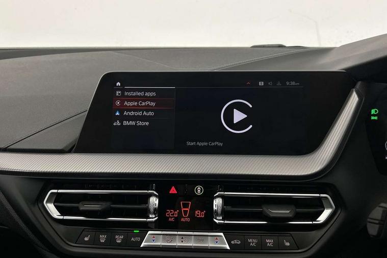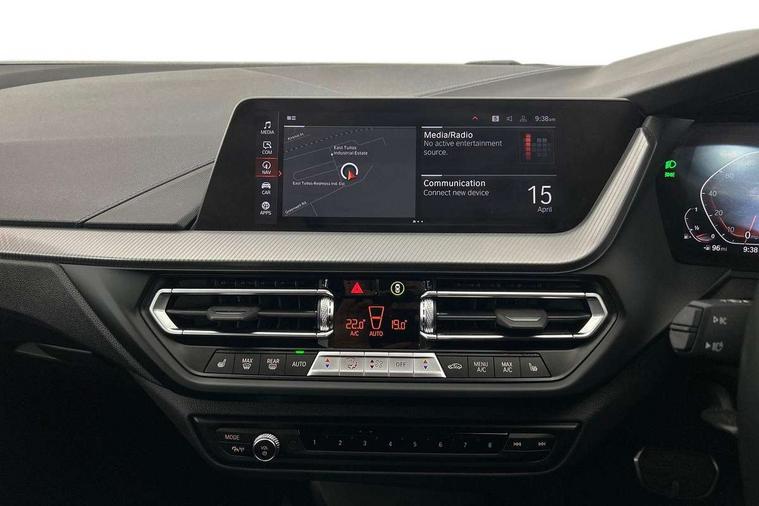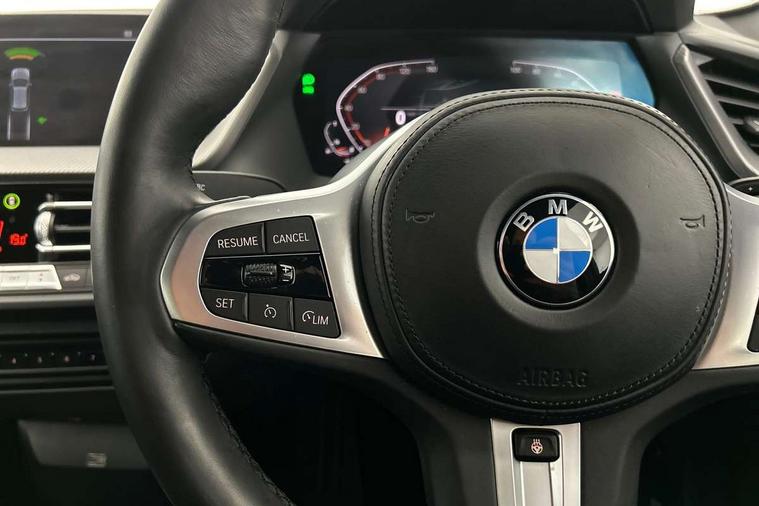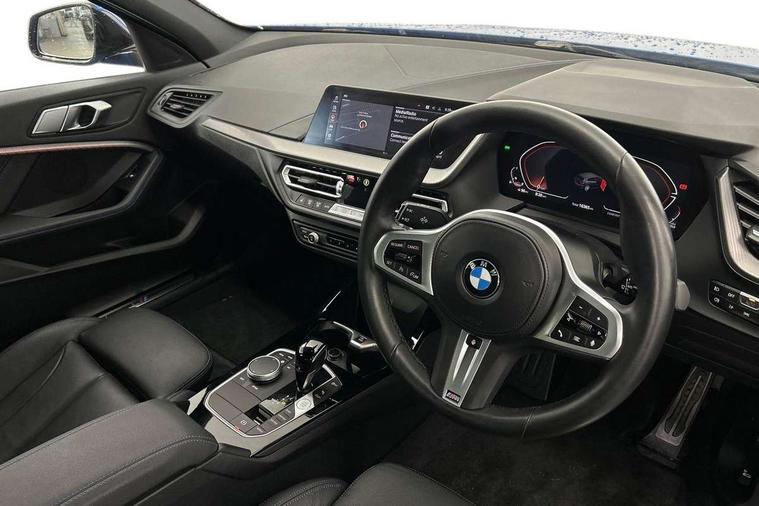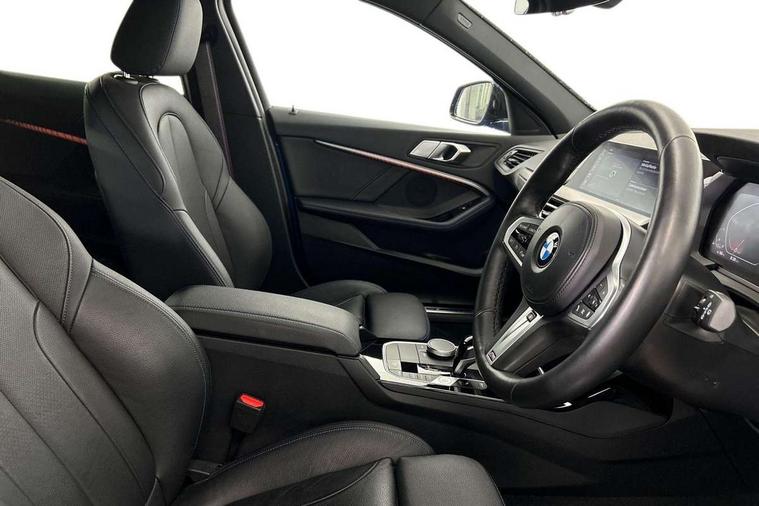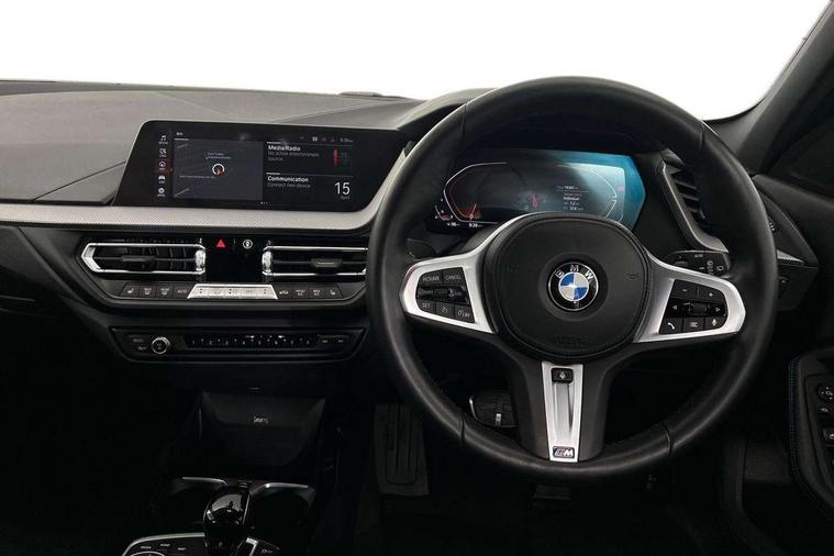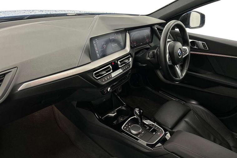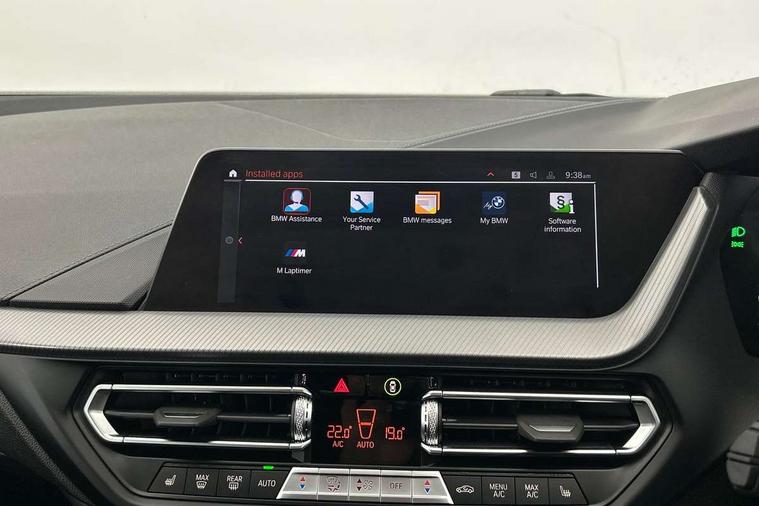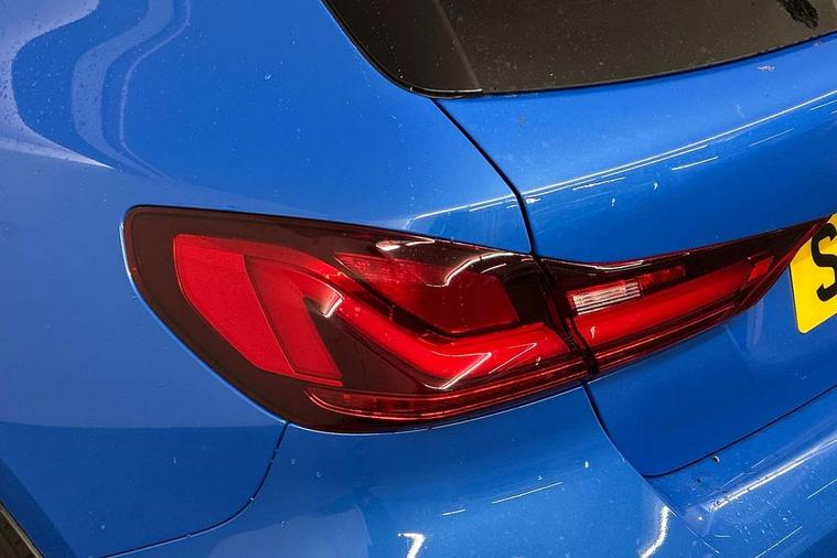 Active guard plus, Attentiveness assist, Bluetooth / WiFi interface for wireless connection of mobile terminal devices and audio streaming, BMW ConnectedDrive online services, BMW Teleservices, Check Control warning system for monitoring of lights and door/luggage compartment open warning, Cruise control with brake assist, Eco pro mode, Front axle single joint with specific axle kinematics to minimise drive influences on steering + provide increased rigidity agile driving behaviour, Integrated owners handbook, Lane departure warning system, Oil sensor for level and grade, On board computer, Optimum shift indicator, Personal Profile, Pull away assistant, Rigidly mounted rear subframe - Multi link construction with separate spring / damper configuration and excellent driving characteristics, Speed limit Info including no-overtaking indicator, Speed limiter, Aluminium lightweight construction, Anti roll bar front and rear, Balancer shaft, Double VANOS twin scroll turbocharging system, Drive Performance Control, Electronic differential lock, High precision injection, M sport suspension, Petrol Particulate Filter, Twin tube gas filled shock absorbers with degressive characteristic curve, VALVETRONIC engine management, DAB Digital radio, Auto dimming rear view mirror, Automatic headlight beam throw control, Automatic windscreen wipers and automatic headlight, Body colour door handles, Body colour mirror caps, Body colour roof trims, Chrome 'M' logo side designation, Chrome exhaust twin tailpipes round 90mm in left, Chrome kidney grille frame with Satin Aluminium struts, Direction indicator side lights in exterior mirrors, Fading support, Folding side mirrors with auto dimming/folding wing mirrors with auto dimming, Follow me home headlights, Front and rear bumper system with replaceable deformation elements, Front and rear electric windows with open and close fingertip control, anti trap facility and comfort closing, Front door sill finishers in black plastic with M designation in metallic look, Green tinted heat protection glazing, Heated, electrically adjustable exterior mirror aspheric on driver side, convex on passenger side, High gloss shadowline window frame, Recess cover mirror frames and B/C pillar embelisher trim, High level third brake light, Integrated front windscreen with washer jets, LED daytime running lights, LED eyebrow turn indicators, LED front fog lights, Lightweight engineering, Matt black air guide grilles, Matt black wheel arch trim, Model designation on electric bootlid, Nearside reverse light in rear light cluster, Preparation for high beam assistant, Rear fog lights, Rear side wing doors, Rear window wiper, Shark fin antenna, Trailer stabilisation logic, Visible VIN plate, Welcome lighting, 12V power socket in front centre console with blanking plug, 3 rear seat head restraints, 3 seat bench in 2nd row, 3 spoke sports leather steering wheel with black leather and stitching, pearl chrome decorative finish, specific M Badge, Ambient interior lighting, Anthracite headlining, Black boot net with lashing eyes, Cargo function on 2nd seat row, Child seat ISOFIX attachment for two outer rear seats and front passenger seat with anchorage points, Conditioned based service, Driver and front passenger seat heating, Folding rear clothes hook, Four grab handles integrated in roof lining, Front and rear door pockets with bottle holders, Front and rear side armrest integrated into door trim, Front armrest, Front sports seats, Glove compartment, Height adjustable front head restraints, Luggage compartment for bag hooks on left and right, foldable luggage compartment liner and four lashing eyelets, Manual adjust steering wheel, Multi-function controls for steering wheel, Single front passenger seat, Storage compartment in centre console, Sun visors with vanity mirrors and insert tab, Two front centre console cupholders, Two zone automatic air conditioning, Velour floor mats, Additional interior lighting pack - 1 Series, BMW live cockpit professional pack- 1 Series, Connected pack professional - 1 Series, Interior lights pack - 1 Series, M Sport exterior styling aerodynamics pack - 1 Series, 2 tone horn, 3 point seatbelts on all seats, front pyrotechnic belt tensioners, stopper and belt force limiters, rear coded belt buckles, Airbags - Front driver/passenger, front and rear curtain head protection, front side, manual deactivation of front passenger airbag, Anti lock braking system (ABS) with brake assist, BMW emergency call, Brake drying, Braking readiness, Child proof locking system in rear door, City braking function, Comfort modes, Cornering brake control, Crash sensor activating central locking release, hazard warning lights, fuel cut off, interior lighting + activation of safety battery terminal clamp, Driver and front passenger seat belt security check, Dynamic stability control + (DSC+), Dynamic Traction Control - DTC, Electrically operated hand brake including automatic hold function, Front and rear disc brakes, Seatbelt warning, Side impact protection, Tyre pressure monitoring system, Warning triangle and first aid kit, Central locking switch for all doors, fuel filler cap and luggage compartment, Deadlocking function system to all doors, Drive away locking system on all doors and luggage compartment with de-activated in iDrive settings, Locking wheel bolts, Remote control with integrated key with High-gloss Black inlay and M designation and 1 button for open/ close lock, window, open luggage compartment, Start/stop button illuminated in centre console with keyless engine start and auto start stop deactivation button, Thatcham Cat.1 alarm and immobiliser, Wheel slip limitation close to the actuator (ARB), Contrast stitching on instrument panel, Electrically powered 12V compressor, Reduced rolling resistance tyres,