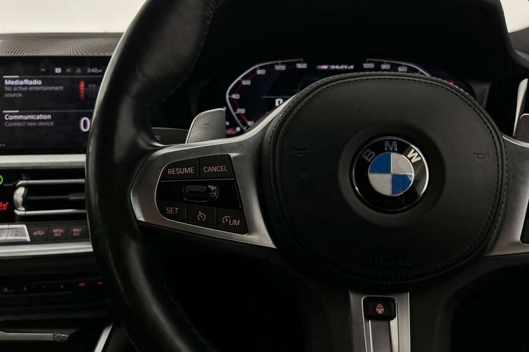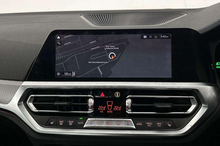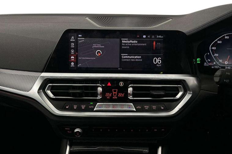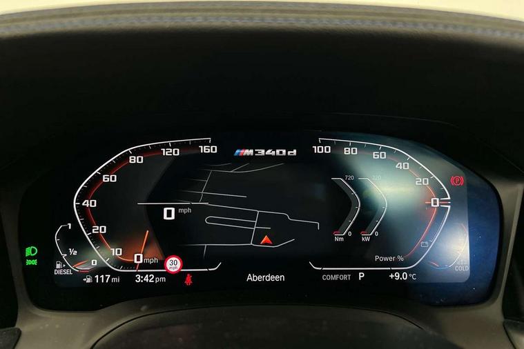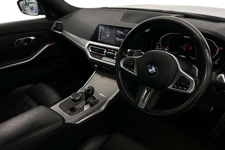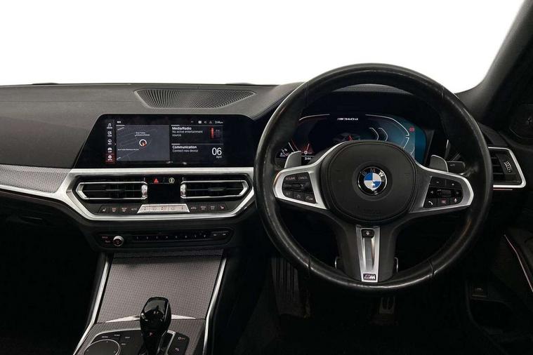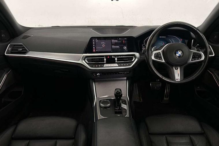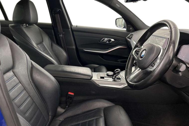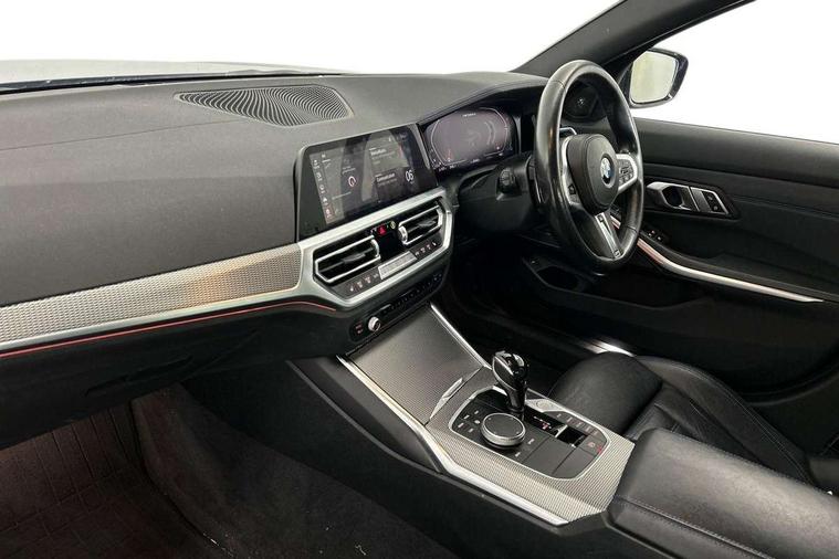 Active guard plus, Attentiveness assist, Bluetooth hands free facility with USB audio interface with audio streaming, BMW iDrive controller on centre console, BMW Live Cockpit Professional Nav with 12.3" instrument display + 10.25" display, Intelligent Voice Assist, BMW OS 7, HDD, 2USB, 4G LTE connect, BMW service history, BMW Teleservices, Brake pad wear indicator in front and rear, Check Control warning system for monitoring of lights and door/luggage compartment open warning, Condition based service, Cruise control with brake function + speed limiter, Electric power steering with Servotronic steering optimised at all speed ranges, Instrument cluster with speedometer with mph readout, tachometer, fuel gauge and oil temperature gauge, Integrated owners handbook, Oil sensor for level and grade, warning by check control system, On board computer - average speed+fuel consumption, service interval, clock/date, odometer/trip meter, outside temperature display and ice warning, Optimum shift indicator, Personal Profile - automatic lock when driving away selectable, Variable sport steering, 48V Mild hybrid technology, Adaptive M suspension, Balanced 50/50 weight distribution, Battery cut-out switch, Diesel particulate filter, Drive performance control - ECO PRO, comfort and sport modes, Incorrect fuelling protection, Larger capacity fuel tank, M Sport differential, Stroke dependent dampers, DAB tuner, Electronic service booklet, 2 x square exhaust tailpipes, Acoustic glazing, Active airstream chrome frame kidney grille with 8 high gloss black vertical slats, Automatic headlight beam throw control with load dependent regulating reaction, dynamic compensation of braking dive and acceleration squat, Black roof mouldings, Body colour door handles, Body colour front and rear bumpers, Body colour fuel filler flap, Dynamic brake lights, Electric windows - front and rear, with open/close fingertip control, anti-trap facility and comfort closing, Exterior mirrors - electrically folding with anti-dazzle, Fading support, Front and rear bumper system with replaceable deformation elements, Front black door sill finishers with BMW designation, Green tinted heat protection glazing, High gloss shadow line exterior trim, Interior rear view electrochromatic mirror with automatic anti dazzle function, LED daytime running lights, LED front fog lights, Lightweight engineering, M designation on front side panels, left and right, M Sport spoiler, Matt black exterior B pillar, Model designation on right side of tailgate, Rain sensor with automatic headlight activation, Shark fin antenna, Sun protection glass, Two part LED tailights in L-shape with components in smoked glass, brake light, LED turn indicator and rear fog light, Visible VIN plate, Welcome lights in interior and door handle area, Windscreen wipers with integrated washing jets, xDrive designation on left tailgate, 12V power socket in front storage compartment, 2 front cupholder in centre console with clamping elements and matt black inlay, 3 rear seats with non folding headrests with 3 point seat belts, 3 zone automatic air conditioning, 4 pieces lashing eyelets in luggage compartment, 40:20:40 split folding rear seat with loading system, Ambient lighting with welcome carpet light, Anthracite headlining, Armrest integrated in front and rear door trim + front centre console armrest, Backrest width adjustment, Centred top Luggage compartment lights, Four grab handles integrated in roof lining, Front and rear door exit lighting (left / right), Front and rear door pockets, Front and rear reading lights, Front and rear velour floor mats, Front head restraints, Heated front seats, Height adjustable mechanically and infinitely variable steering column, Illuminated armrest storage compartment, Illuminated glove compartment with separate small compartment, Interior lighting - front centre over interior mirror with soft light, rear centre and front and rear footwell lighting, M sport leather steering wheel, Make-up mirror lights, Rear centre armrest with 2 cupholders, Rear centre console with storage compartment and ventilation grille, Sunvisors with vanity mirrors and ticket pocket, Toolkit located in luggage compartment, Connected pack professional - 3 Series Saloon/Touring, M sport exterior styling pack - 3 Series Saloon/Touring, 2 tone horn, BMW emergency call, Brake energy regeneration, Braking pre-tensioning, Child proof locking system in rear door, Child seat ISOFIX attachment rear outer seats, Coasting in idle in ECO PRO mode, Crash sensor activating of airbags, Unlocking doors, hazard warning lights, interior light, safety battery terminal, Driver and front passenger side airbags, integrated in the door side seat backrest bolsters for all seat variants, Driver/Front Passenger airbags, Dry braking, Dynamic brake control, Dynamic stability control + (DSC+) - Anti-lock Braking System (ABS) with brake assist and cornering brake control + Automatic Stability Control (ASC), Dynamic Traction Control - DTC, Electric parking brake including automatic hold function and automatic release of the parking brake when driving off, Front passenger manual airbag deactivation, Head airbags for all 4 outer seats, Hill start assist, M sport seatbelt, Seat belt security check for driver and front passenger, Side impact protection, Three 3 point seat belts on all seats including front belt stopper, pyrotechnic belt tensioners and belt force limiters, Tyre pressure monitoring with three level warning strategy, Ventilated front and rear disc brakes, Warning triangle and first aid kit, Alarm system (Thatcham 1) with remote control and electronic engine immobiliser, Central locking switch for all doors, fuel filler cap and luggage compartment, Remote control with integrated key one button open/close vehicle and windows, sole opening of the luggage compartment lid and panic mode, Start/stop button with Comfort Go keyless engine start and auto Start/stop deactivation button, Vehicle ke