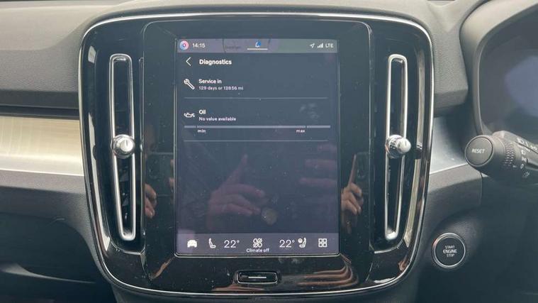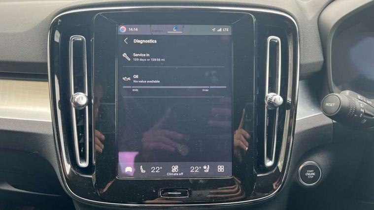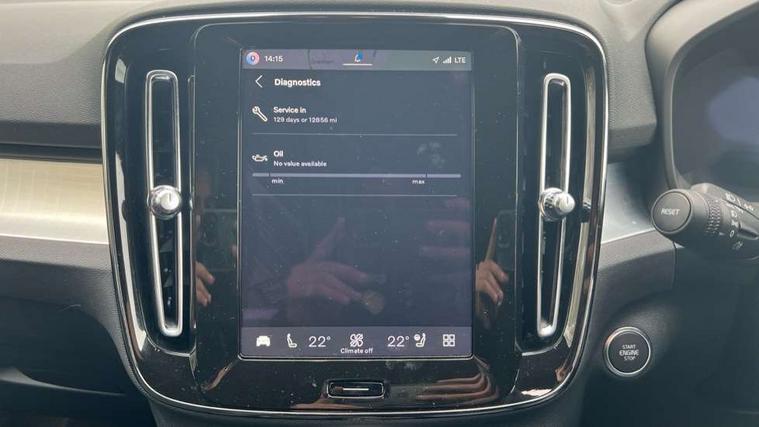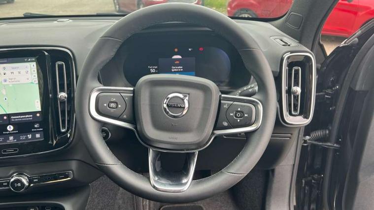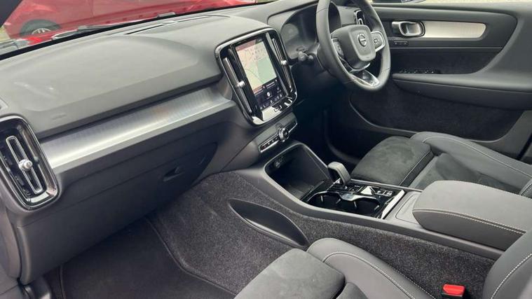 12.3" Progressive Driver Display, 9" centre console portrait touch screen, Adjustable steering wheel force, Android auto (Wired), Apple carplay (wired), Bluetooth handsfree system, Driver alert control, Driver assistance (pilot assist and adaptive cruise control), Driver awareness - Blind spot information system with steer assist, cross traffic alert with autobrake and rear collision warning and mitigation, E-call, Front and rear parking sensors, Front park assist, Google automotive services - Enabled entertainment apps, navigation with google maps, voice recognition with google assistant, Hands free power tailgate, Intelligent speed assistance, Lane keeping aid, Oncoming Lane Mitigation, Speed sensitive steering, Volvo cars services with app - Driving journal, engine remote start, remote door locking/unlocking and vehicle dashboard, Wireless/Inductive Mobile Phone Charging, Automatic transmission with start/stop and manual change functions, Dynamic chassis, DAB Digital radio, Steering wheel mounted remote controls, Adaptive brake lights with high level LED brake lights, Auto dimming feature for exterior door mirrors, Auto dimming interior mirror, Auto folding and heated power door mirrors, Automatic headlamp levelling, Automatic LED Headlights + Active high beam incorporating daytime running lights, Dark tinted windows - rear side windows and rear screen, Front aluminium tread plates, Front and rear electric windows, High gloss black front and rear skid plate, High gloss black front bumper deco, High gloss black front grille strikethrough and ironmark, High gloss black rear model, engine and volvo logo badges, High gloss black window trim, Home safe and approach lighting, Integrated roof rails in high gloss black, LED front fog lights, Puddle lights, Rain sensor with automatic windscreen wiper activation, Rear side wing doors, Rear wiper, Roof antenna, Roof spoiler, Visible VIN plate, 12V socket in front tunnel console and luggage compartment, 2-Zone electronic climate control with CleanZone air quality system and pollen filter, 3 seat bench in 2nd row, 3 Spoke tailored steering wheel with chrome trim, 60/40 versatile split folding rear seat, Centre console cupholders and storage, Charcoal carpet and floor mats, Charcoal headlining, Connect suede textile/microtech upholstery, Flexible load floor and grocery bag holder, Front headrests, Front seat cushion extensions, Glovebox bag hook, Heated front seats, Height adjustable passenger seat, Height/reach adjustable steering column, High gloss centre tunnel deco, High level illumination - Front door pocket, front side step (under door), tailgate, instrument panel, front door inlay, rear courtesy&reading lights, Integrated waste bin, Isofix attachments on outer rear seats, Load cover, Load protection net, Mid level illumination - Front footwell, luggage & glovebox compartment, front cabin courtesy & reading lights, illuminated vanity mirrors+ticket holder, Multi directional lumbar support for driver and passenger seat, Power driver seat with memory + exterior mirrors memory, Rear armrest with cupholders, Rear headrests, Single front passenger seat, Underfloor luggage compartment storage, Climate pack without heated front seats - XC40, 3x3 point rear seatbelts, City safety with steering support with Pedestrian + cyclist + front collision warning with full auto brake and rear auto brake, Driver and passenger airbags, Drivers knee airbag, Electronic parking brake with auto hold, First aid kit, Front and outer rear seatbelt reminder and pretensioners, Front seats SIPS airbags, Hill descent control - Off-road drive mode, Hill start assist, IC (Inflatable Curtains) - Full Length, Passenger airbag cut-off device, Power child locks on rear doors, Road sign information display, Run off Road Protection, SIPS (Side Impact Protection System), Slippery road and hazard light alert, Stability and Traction Control with Spin control, Engine Drag Control and Corner Traction Control, Tyre pressure monitoring system, Vehicle deceleration control with Anti-lock Brake System, Electronic Brake Distribution and Emergency Brake Assist, Warning triangle, WHIPS whiplash protection system - front, 2 x Key integrated remote control central locking including with deadlocking system and auto open/close windows, Anti-theft alarm including immobiliser/volume sensor + level sensor, Keyless drive includes keyless entry and keyless start, Locking wheel nuts, 20" 5 spoke high gloss black alloy wheels,