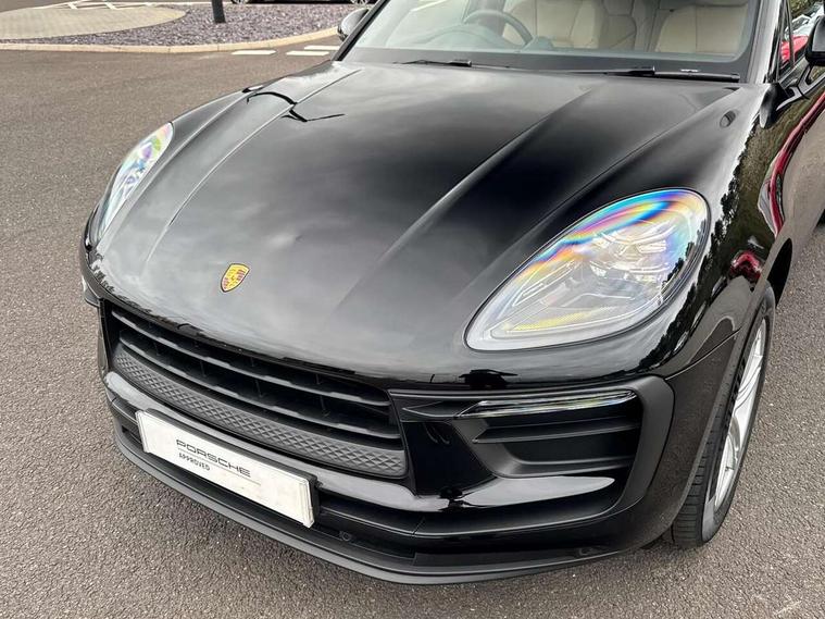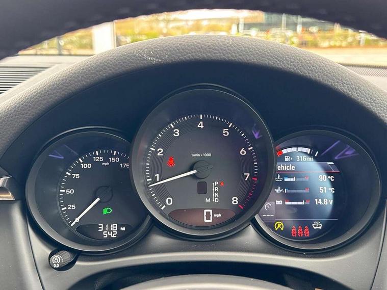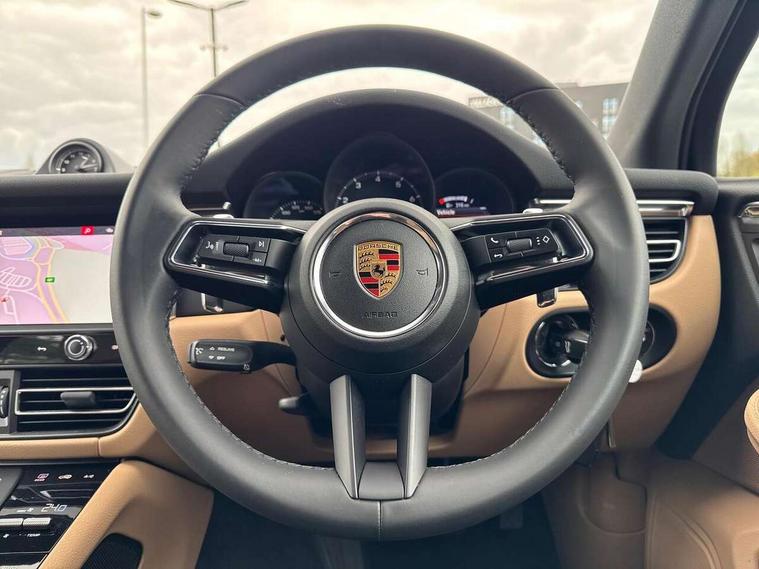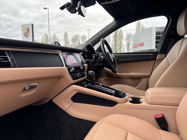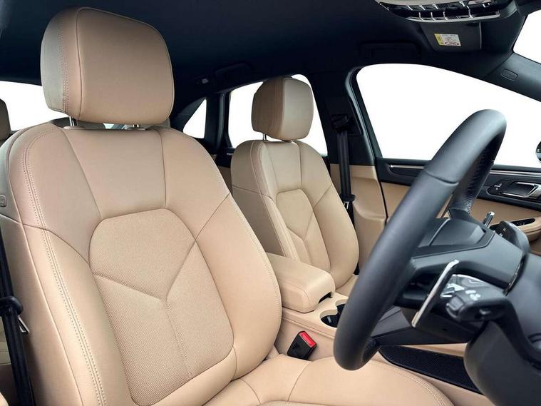 Analogue clock on dashboard, Automatic start/stop system, Automatic tailgate, Cruise control + speed limiter, eCall emergency call system, Instrument cluster with high resolution 4.8-inch TFT display, gear indicator for PDK, service interval display, external temperature indicator, fuel gauge, Off-road button, On board computer, Porsche Communication Management (PCM) including online navigation module, mobile phone preparation, audio interfaces and voice control system, Sports button in centre console, 7-Speed Porsche Doppelkupplung (PDK) with automatic mode and manual controls (gearshift paddles) on steering wheel, Direct fuel injection (DFI), Gasoline particulate filter, VarioCam camshaft control for inlet and exhaust valves, 2 USB sockets in rear centre console, Apple CarPlay with Siri voice recognition, Connect Plus including online navigation, LTE communication module with SIM card reader, wireless internet access, Porsche Car Connect services, DAB Digital radio, Porsche Vehicle Traking System Plus (PVTS Plus), Smartphone compartment with wireless charging, Two USB C charging and connectivity ports in the front centre console storage compartment, Active radiator grille shutters, Automatic headlight activation including welcome home lighting, Bumper system with high strength cross members and two deformation elements + One threaded fixture point for towing eye contained in onboard tool kit, Dynamic cornering lights, speed-sensitive headlight and dynamic range control, adverse weather function, four-point LED daytime running lights, Electric front and rear windows with remote closing function + anti trap + one touch, Electrically folding and heated exterior mirrors, Front light modules with LED position lights and direction indicators, Front windscreen wipers with two speeds, intermittent wipe and rain sensor, Front with integrated cooling air intakes, Fully galvanised body, Heated rear window with automatic switch off, High level 3rd LED brake light integrated into roof spoiler, Loading edge protection in aluminium, Rear side wing doors, Rear window wiper with intermittent function and washer jet, Roof spoiler in high gloss black, Towbar preparation, 3 adjustable rear headrests, 3 rear seats, 3 zone auto climate control separate temperature setting+air recirculation include quality sensor, airflow regulation+AC MAX button+humidity sensor, 4 way adjustable front head restraints, 40:20:40 split folding rear bench seat, Cloth hook b-pillar, Fold up centre console armrest with fore/aft adjustment, Front and rear bottle holders in door panels, Front passenger seat, Glove compartment, Isofix fastening system for child seats on outer rear seats, Luggage compartment cover, Particle/pollen filter with active carbon filter, Rear armrest with 2 cupholders, Storage bin in centre console, Storage compartment in side of luggage compartment and storage compartment in spare wheel recess, Storage pocket in front and rear doors, Two integrated cup holders in front with variable diameter, Two socket 12V power outlets in front console and luggage compartment, Uncovered storage compartment in centre console, Ambient comfort lighting pack - Macan, Lower exterior trim package in black - Macan, 3-point automatic seatbelts with front and outer rear seats pretensioners and force limiter + manually height adjustable seatbelt + reminder warning, Auto hold function, Black painted brake calipers, Child locks on rear doors, Curtain airbags along entire roof frame and side windows from A pillar to the C pillar, Electronic parking brake, Front passenger airbag deactivation facility for installation of child seats indicator in overhead console, Front side airbags integrated into seat, Full size driver and passenger airbags, Internally vented brake discs with diameter of 350mm at front and 330mm at rear, Multi-Collision braking, Porsche hill control (PHC), PTM(Porsche Traction Management) and All-wheel drive with map-controlled multi-plate clutch, Roll over sensor for curtain airbag and seatbelt pretensioners, Side impact protection in doors, Tyre pressure monitoring system, Vehicle stability system, Porsche stability management (PSM) including ABS, ASR, ABD, MSR and trailer stability management, Vented discs brake with 4 piston aluminium monobloc fixed caliper at front, Vented discs brake with combination floating calipers at rear, Alarm system with ultrasonic interior surveillance, Dashcam preparation, Engine immobiliser with key transponder, Remote control central locking, Accent trims with silver coloured finish,