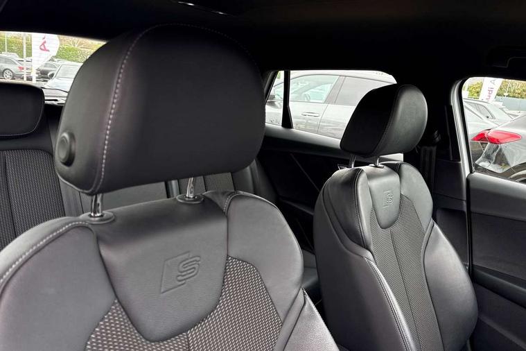 Audi connect navigation and infotainment includes innovative services, Audi connect remote and control connects your vehicle to your smartphone, Audi drive select, Audi drive select with efficiency, Audi smartphone interface, Audi virtual cockpit, Automatic start/stop system with recuperation, Bluetooth interface includes bluetooth audio streaming, Cruise control, E-call, MMI navigation plus with MMI touch, Power operated tailgate, Progressive steering, Rear parking sensors, 2 x SDXC card reader, 6 passive loudspeakers, DAB Digital radio, DVD Drive, Auto dimming rear view mirror, Black window trims, Electrically adjustable, folding, auto dimming and heated door mirrors with integrated LED side indicators, Front windscreen with grey tinted sunband, LED daytime running lights, LED headlights with LED rear lights, LED third brake light, Rear side wing doors, Rear wiper, S Line badges on the front wings, S Line body styling - front and rear bumpers, side skirts, radiator grille, rear diffuser insert and front air intakes, Variable front intermittent wipers, Wheel arch trims in manhattan grey, 12v socket in front, 3 seat bench in 2nd row, 4-way electric lumbar support for front seats including seat height adjustment for both front seat, 60/40 split folding rear seat bench, Black cloth headlining, Front and rear head restraints, Front centre armrest, Front/rear floor mats, Height/reach adjust steering wheel, Illuminated door sill trims with S logo, Single front passenger seat, Stainless steel pedals, Tool kit, 3x3 point rear seatbelts, 6 airbags - Front, curtain and front side airbags, Electromechanical parking brake, Electronic stabilisation control including ABS, ASR and EDL, Front passenger airbag deactivation, Hill hold assist, Pre-sense front with pedestrian recognition, Seatbelt monitoring, Tyre pressure warning light, Warning triangle and first aid kit, Anti theft alarm, Anti theft wheel bolts, Manual child locks, Remote central door locking, Aluminium interior element, Matt brushed aluminium trim inlays,