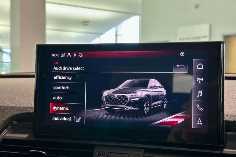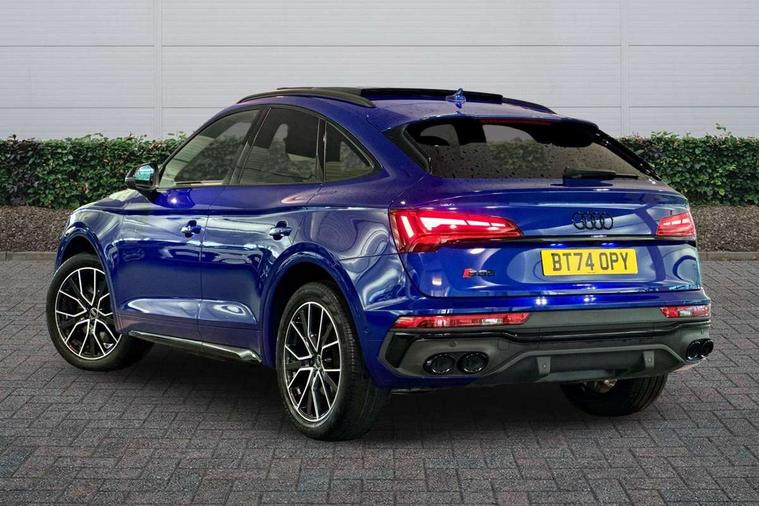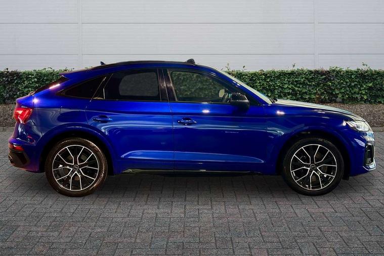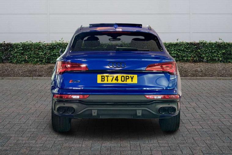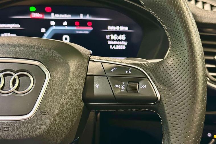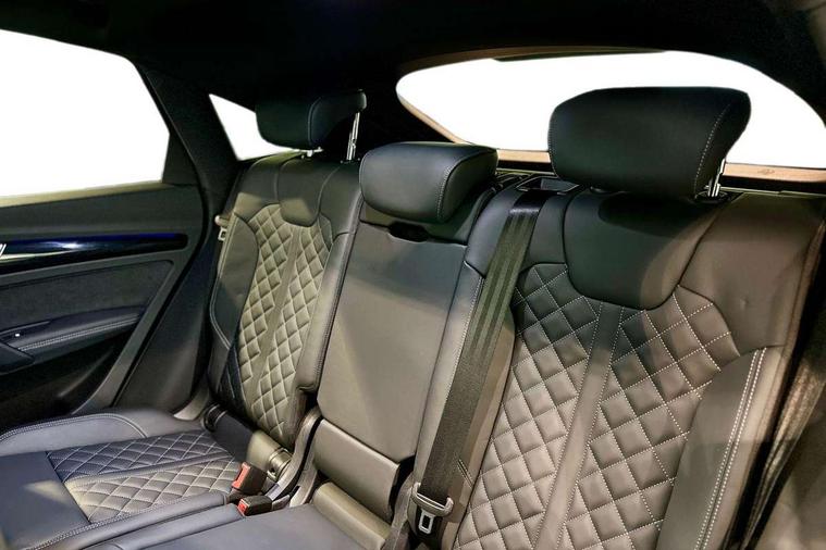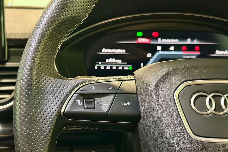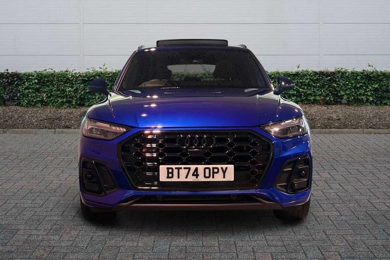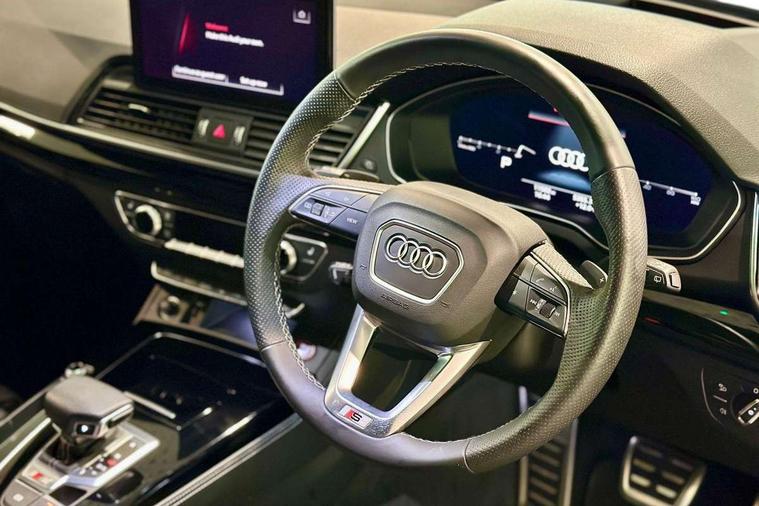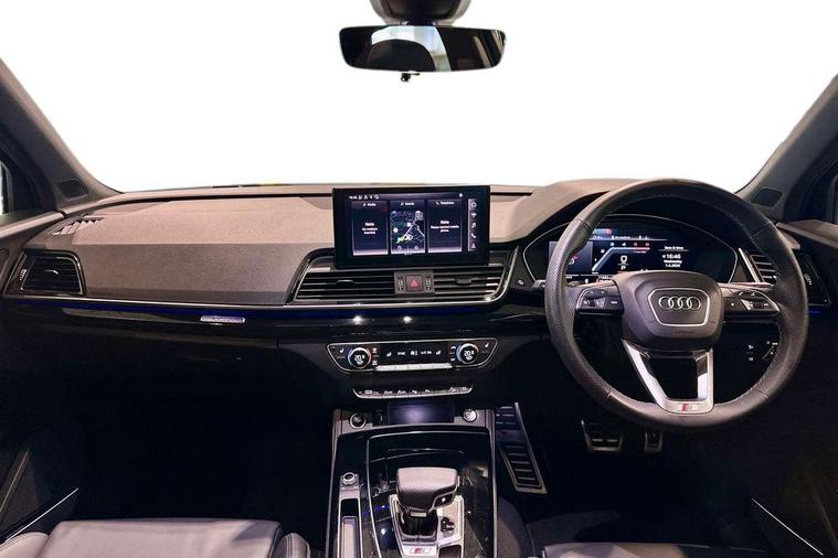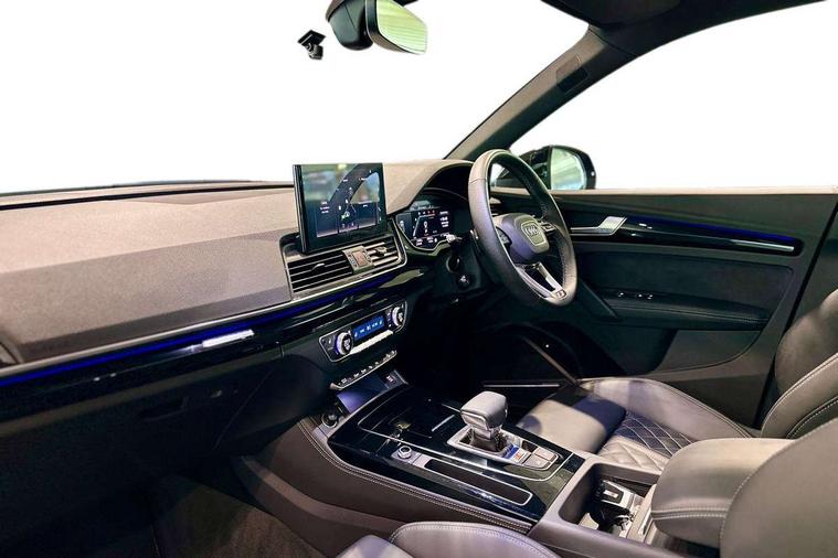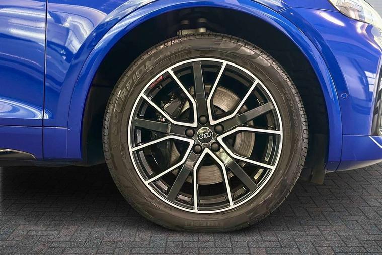 Acoustic front and rear parking sensor, Audi connect safety and service (e-call), Audi connect with Amazon Alexa Integration, Audi drive select, Audi virtual cockpit plus with 12.3" screen and three different layout designs, Audi wireless smartphone interface, Automatic start-stop system with coasting functionality and efficiency programme, Bluetooth interface, Electro - mechanical power assisted steering, MMI navigation plus with 10.1" touch screen, Power tailgate, Reversing camera, Service interval indicator, Voice control system with Audi hotword activation "Hey Audi", 70 litre fuel tank and 24 litre AdBlue tank, Diesel particulate filter, Quattro on demand, S sport suspension with damper control, 2 x USB charging port with aux input socket, Audi sound system, DAB Digital radio, Acoustic windscreen, Aluminium roof rails, Audi beam, Audi matrix LED headlights with dynamic front and rear indicators, Auto dimming door mirrors, Auto dimming frameless rear view mirror, Automatic headlight adjustment, Automatic headlights and windscreen wipers, Body colour bumpers, Body colour underbody protection, Chrome plated exhaust trims, Daytime running lights, Door sills in Selenite silver, Electric adjustable/heated/folding door mirrors, Front air inlet surrounds in aluminium, Front and rear electric windows, Front radiator grille in honeycomb design, Headlight washers, High level LED brake light, Rear chrome trim strip below lights, Rear privacy glass and rear side windows, Rear side wing doors, Rear spoiler, Rear wiper, Roof bars, S front and rear bumpers, S Line side skirts, S rear diffuser in body colour, 3 rear headrests, 4 way electric lumbar support for driver and front passenger, 40:20:40 split folding 3 rear bench seat in 2nd row with rear centre armrest, Black cloth headlining, Comfort front centre armrest, Contrast stitching on seats, steering wheel and gear lever gaiter, Deluxe 3 zone electronic climate control, Fine Nappa leather upholstery with diamond pattern contrast stitching + front sport seats with S embossed logo, Front head restraints, Front/rear floor mats, Fully electrically adjustable seats, Gear lever in black leather, Heated front seats, Height/reach adjustable steering column, Illuminated door sill trims with S logo, Massage function for front seats, Rear seat bench plus-adjust for forwards/backwards position/backrest angle, cupholders in the armrest, load through hatch and remote backrest release, Removable luggage compartment floor, Single front passenger seat, Stainless steel pedals, Sunvisors with vanity mirrors, Trunk roller cover, Extended interior upholstery pack - Q5, High gloss pack - Q5, LED interior light pack - Q5, 3 point seatbelts on all seats, 6 airbags - Driver, front passenger, curtain and side airbags, Electrically operated child locks on rear doors, Electromechanical parking brake, Electronic stabilisation control including ABS, ASR and EDL, First aid kit with warning triangle and vests, Front passenger airbag deactivation, Hill descent control, Hill hold assist, ISOFIX child seat mounting for front passenger seat and ISOFIX child seat mounting with Top Tether for outer rear seats, Multi collision brake assist, Pop-up bonnet for pedestrian protection, Pre sense city, Seat belt force limiter, Seatbelt monitoring, Tyre pressure warning, Anti theft alarm, Anti-theft wheel bolts, Keyless Go access/ignition system, Remote central locking, Air vents inserts and centre console in gloss black, 20'' 5 twin star spoke design alloy wheels in gloss graphite grey,