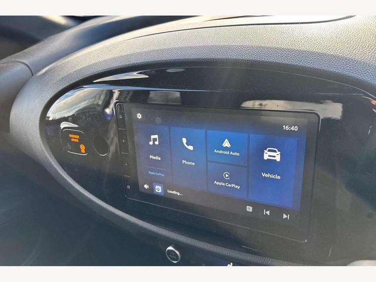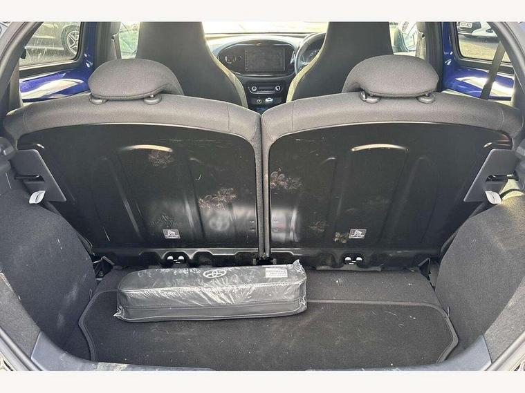 4.2" TFT colour screen, Adjustable speed limiter, Analogue speedometer, Bluetooth connectivity, Digital tachograph, Driver attention alert system, eCall emergency call system, Electric power steering, Intersection turn assist, Key reminder warning, Noise reduction kit, Pre collision system with emergency steering assist, Reversing camera with static guide lines, Smart phone integration with Apple car play/Android Auto, Speed limit display, Start and stop, Vehicle Stability Control (VSC), 4 speakers, 9" HD multimedia display touch screen with Toyota smart connect, DAB digital audio broadcast, USB connector, Auto headlights, Auto wipers, Automatic headlights cut-off, Bicycle towing hook, Black contrast roof, Black side protection mouldings, Black wheel arch mouldings, Body colour door handles, Body coloured front bumper, Boot door scuff plate, Eclipse black rear bumper, Electric heated door mirrors, Follow me home headlights, Front fog lights, Front power windows, Gloss black door mirrors, Gloss black upper front grille, Headlight cut-off reminder, LED daytime running lights, LED front light guide, LED High mounted stop lamp, Manual day/night rear view mirror, Manual headlight levelling, Pagoda roof, Power adjustable door mirrors, Power back door, Privacy glass, Projector halogen headlights, Rain sensor, Rear combination lights LED bulb type, Rear side wing doors, Rear windscreen defogger, Rear windscreen wiper, Short antenna, Variable intermittent windscreen wipers, 12v power outlet - front, 2 seat bench in 2nd row, 3 spoke leather steering wheel, 50/50 split folding rear seat, Adhesive roof headlining, Adjustable speed limiter switch on steering wheel, Audio and telephone switches on steering wheel, Auto air conditioning, Black insert on steering wheel, Black roof lining, Boot light, Centre room light, Chrome interior door handles, Chrome surround on air conditioning buttons, Clean air filter, Console box storage in body color, Fabric upholstery, Floor mats, Front and rear cup holders, Front head rest deco art, Front head restraints, Height adjustable driver seat, Intelligent adaptive cruise control switch on steering wheel, ISOFIX child restraint system on rear seats, Lane departure alert switch on steering wheel, Leather gearshift knob, Manual tilt steering wheel, Manually reclining and sliding driver seat, Manually reclining and sliding front passenger seat, Multimedia switches on steering wheel, Pollen filter, Rear door pockets, Rear head restraints, Satin silver insert on gear shift knob, Single compartment glovebox with lights, Single front passenger seat, Soft tonneau cover, Sun visors with mirror on driver and passenger side, Voice recognition switch on steering wheel, Toyota safety sense pack - Aygo X, Anti lock braking system + Electronic brake force distribution, Child safety door lock, Emergency brake light signal (EBS), Hill start assist control (HAC), Passenger airbag on/off switch, Seat belt reminder for front and rear seats, Supplement restraints system (SRS) - 6 airbags, Traction control, Tyre pressure warning system, Immobiliser, Remote power door locks, Black wheel centre caps, Tyre repair kit,