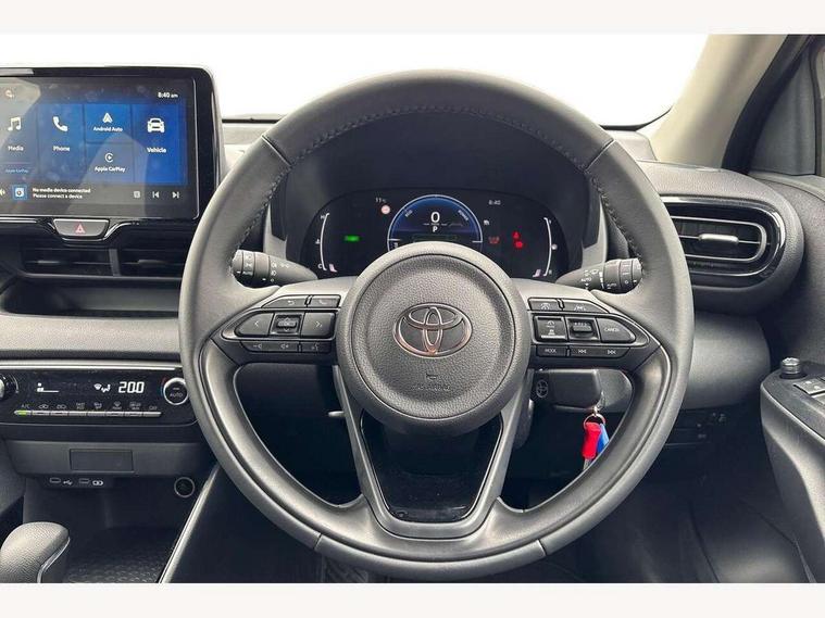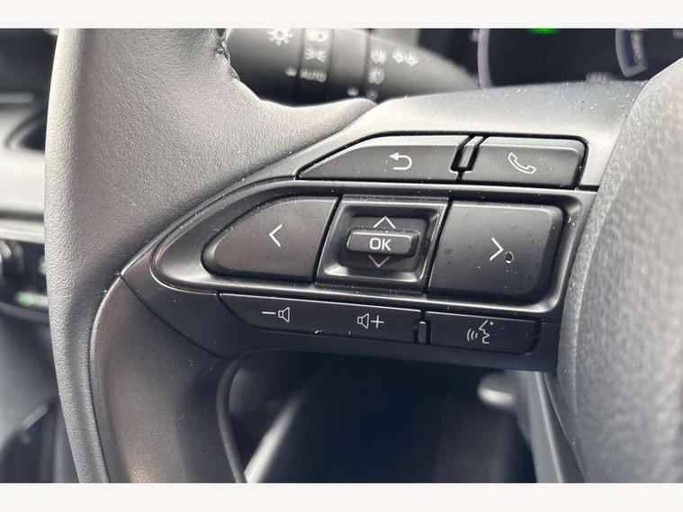 7" Digital Combimeter, Adaptive cruise control, Adjustable speed limit with speed warning, Bluetooth connectivity, Colour binocular inspired displays with digital speedometer, E-call, Electric power steering, Hybrid energy display, Lane trace assist, Multi information display switches on steering wheel, Pre-collision system (PCS), Reversing camera, Smartphone integration with Apple CarPlay and Android auto, Tailgate, Voice recognition, Vehicle Stability Control (VSC), 4 speakers, 9" Multimedia touch display, Toyota Touch 3 system with DAB radio, USB connection, Acoustic windscreen glass, Auto high beam assist, Auto windscreen wipers, Automatic headlights, Body coloured door mirrors, Electric adjustable heated door mirrors, Follow me home headlights, Front auto power windows with anti jam protection, LED daytime running lights, LED front fog lights, LED front light guide, LED Headlights, LED High mounted stop lamp, LED Indicators, LED rear light guide, Manual headlight levelling, Painted chequered front grille, Rain sensor, Rear auto power windows with anti jam protection, Rear privacy glass, Rear roof spoiler, Rear side wing doors, Rear wiper, Shark fin antenna, Turning signal integrated indicators in door mirrors, Variable front intermittent wipers, 3 adjustable rear headrests, 3 seat bench in 2nd row, 3 spoke leather steering wheel, 60/40 split folding rear seat, Active headrests, Adjustable boot height, Auto air conditioning, Coat hooks in rear grab handles, Cup holders (2 front & door), Data Communication Module (DCM) connected services, Fabric upholstery, Front armrest, Glovebox, Grey roof lining, Height adjustable driver's seat, Isofix seat fixing, Leather gearshift, Pollen filter, Shopping bag hooks, Single front passenger seat, Tilt/telescopic steering column, 3 point seatbelts on all rear seats, ABS+EBD+Brake assist, Electronic parking brake, Emergency brake light system (EBS), Front passenger airbag on/off switch, Front seatbelt reminder, Hill start assist control (HAC), Rear child proof door locks, Rear seat belt reminder, Supplemental Restraint System (SRS) 8 airbags: Driver & passenger's airbags, dual side curtain airbags, side impact airbags, front centre airbag, Toyota Safety Sense 3 with over the air updates, Tyre pressure warning system, 2x Master key, Alarm/immobiliser, Remote powered central double locking doors, Soft touch instrument panel, Space saver spare wheel,