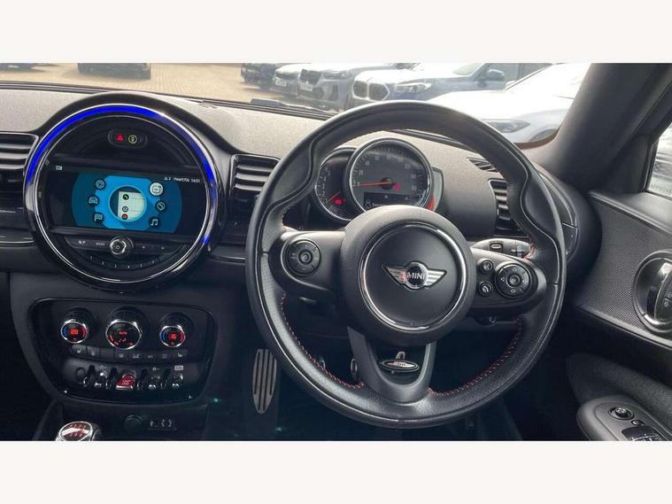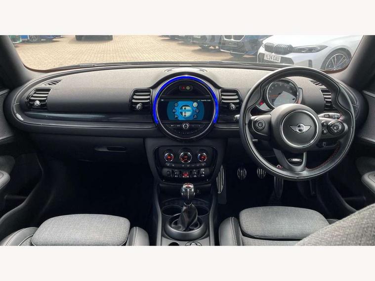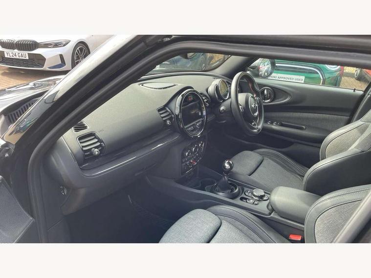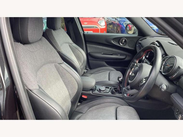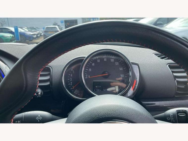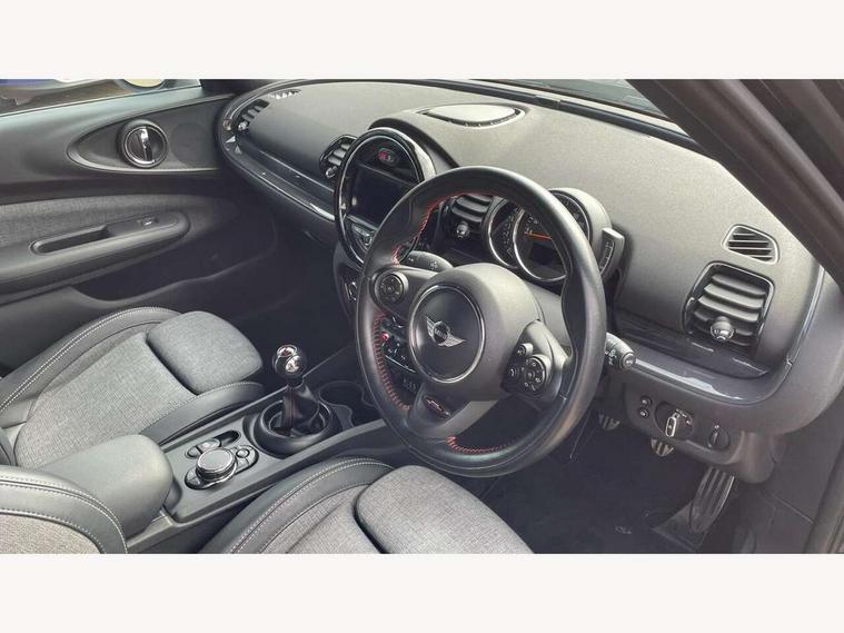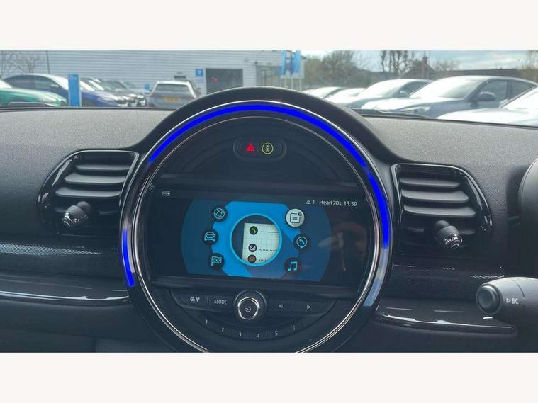 Brake pad wear indicator warning light, Central display with LED ring and 6.5" colour touch screen, DTC - Dynamic traction control, Exterior temperature gauge, Intelligent emergency call, MINI TeleServices, Navigation system, On board computer, Personal Profile, Service interval indicator, Servotronic speed sensitive power steering, Diesel particulate filter, Electronic differential lock, Auxiliary input socket, DAB digital radio module, MINI Connected, MP3 compatible radio/single CD player, Radio visual boost, Anti dazzle rear view mirror, Body coloured bumpers, Chrome door handles, Chrome exhaust tailpipe, Chrome headlight surround, Chrome plated radiator grille, Electric front windows + one touch + anti-pinch, Electrically adjustable door mirrors, Follow me home headlights, Front intermittent wipers, Heated door mirrors/heated windscreen washers, Heated rear window with timer, Metal look door sill finishers, Rain sensor including auto headlights activation, Rear wiper, Roof spoiler, White indicator lights, 12V power point front, 4 lashing points to secure luggage, 60/40 split folding rear seat, Centre console storage box, Chrome interior door handles, Driver/passenger sunvisors, Easy entry seats, Front and rear cupholders, Front and rear Isofix child seat preparation, Front and rear velour floor mats, Front centre armrest with storage compartment, Front headrests, Front interior light, Front passenger grab handle, Front seat backrest storage nets, Heater with recirculation function, Height/reach adjust steering wheel, Luggage compartment lighting, Multifunction steering wheel, Outer passenger rear headrests, Rear armrest with storage, Rear grab handles, Storage compartments in doors, Toolkit in luggage compartment, Interior lights pack - Mini Clubman, 3 point automatic seatbelts, 3 point seatbelts on all rear seats, ABS, Automatic Stability Control (ASC), Cornering brake control (CBC), Crash Sensor - activates hazard/interior lighting + unlocks doors, Driver and passenger airbags, Driver and passenger side airbags, DSC - Dynamic Stability Control, Electronic brake force distribution, Electronic parking brake, Front curtain airbags, Front passenger airbag deactivation, Fuel cut off safety device, Hill start assist, Pyrotechnically pre-tensioned front seatbelts, Traction control, Twin horns, Tyre pressure warning, Drive away door locking, Keyless start, Locking wheel bolts, RF remote control central locking, Second remote key, Thatcham category 1 alarm + immobiliser,