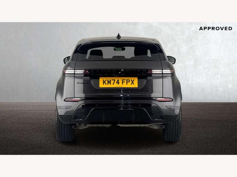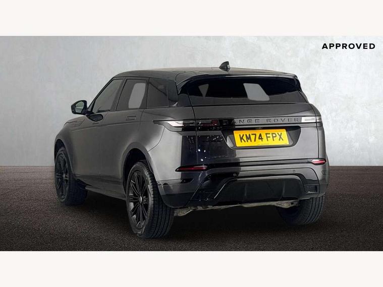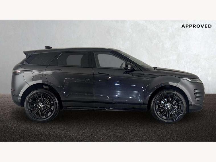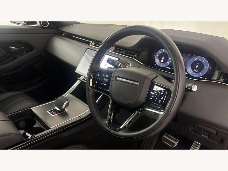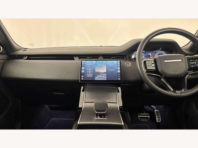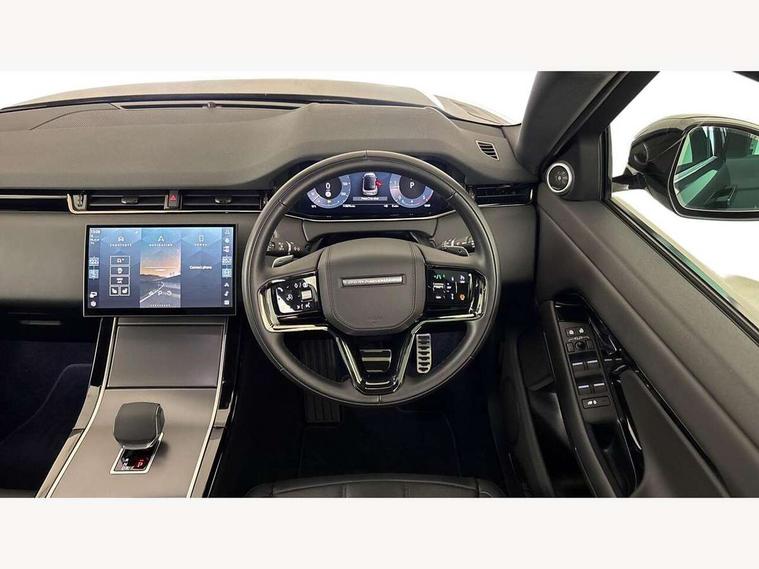 11.4" touch screen, Adaptive cruise control, Android Auto, Apple car play, Blind spot assist, Bluetooth connectivity, Brake pad wear indicator warning light, Driver condition monitor, eCall emergency system, Eco mode, Electronic power assisted steering (EPAS), Front and rear parking aid, InControl remote, Interactive driver display, Land Rover InControl apps, Lane keep assist, Pivi pro connected includes diamond pivi variant, smart settings, connected navigation pro, nuance speech licence, Powered tailgate/boot lid, Rear collision monitor, Rear traffic monitor, Traffic sign recognition with adaptive speed limiter, Voice control system, Wireless device charging, All terrain progress control, Diesel exhaust fluid (DEF) large tank, Efficient Driveline, Large fuel tank, Passive suspension, Terrain Response 2, Digital Audio Broadcast radio-DAB, Steering wheel mounted controls, Acoustic laminated windscreen, Auto headlights, Automatic headlight levelling, Electric windows with one touch open/close and anti trap, Flush deployable exterior door handles, Front and rear recovery eyes, Heated rear window with timer, Heated washer jets, Heated windscreen, Pixel LED headlights with signature DRL and LED tail Lights, Power fold, auto-dimming, heated door mirrors with approach lights and auto dimming driver side, Rain sensing windscreen wipers, Rear animated directional indicators, Rear fog lights, Rear side wing doors, Rear wiper, Side repeater indicators in mirror, Tailgate spoiler, Third brake light, Winter wiper park position, 14 way driver memory electric front seats with 2 way manual headrests + 4 way lumbar support, bolsters, 40:20:40 split folding rear seats with centre headrest and armrest, Ambient interior lighting, Bright metal pedals, Carpet mats, Chrome tread plates with range rover branding Includes stainless steel loadspace scuff plate with etched graphic, Customer configurable single point entry, Electrically adjustable steering column with memory function and easy entry/exit, Front and rear cupholders, Heated steering wheel, Isofix system on outer rear seats, Overhead lighting console, Overhead stowage for sunglasses, Passive front head restraints, Rear air vents, Rear head restraints, Satin chrome gearshift paddles, Single passenger seat, Sunvisors with illuminated vanity mirrors, Twin sliding front centre armrest, Online pack with data plan - Evoque, Power socket pack 2 - Evoque, 3 rear 3 point seatbelts, Anti-lock braking system (ABS), Brake hold function, Customer configurable autolock, DSC - Dynamic Stability Control, Electronic brake force distribution, Electronic parking brake, Electronic traction control, Emergency braking, Front and rear seatbelt reminder, Hill descent control, Hill launch assist, Low traction launch, Occupant protection assist, Passenger seat occupant detector, Power operated child locks, Roll stability control, Six airbags - Driver and passenger airbags/driver knee airbag/front side airbag and curtain airbags, Torque vectoring brake, Tyre pressure monitoring system, Alarm, Immobiliser, Intrusion sensor, Keyless entry, Locking wheel nuts,