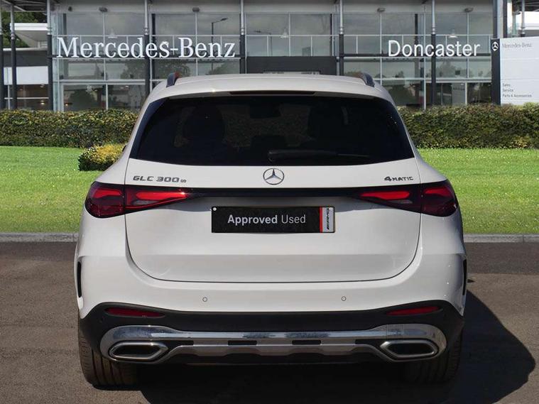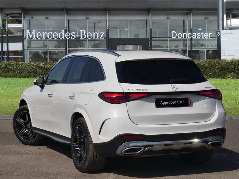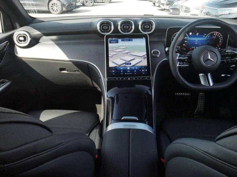 11.9" high resolution multimedia colour display, 12.3" Digital individually configurable instrument display, Acoustic presence indicator, Active lane keeping assist, Attention assist, Blind spot assist, Bluetooth interface for hands free telephone, Collision prevention assist plus, Cruise control with speedtronic variable speed limiter, Dashcam - front camera for video recording, Direct steer speed sensitive steering, DYNAMIC SELECT with a choice of driving modes (ECO, Comfort, Sport, Sport+ and Individual), eCall emergency call system, ECO start/stop function, Fingerprint scanner, Fluorescent jacket for driver, Hard disc navigation, Instrument display in miles with English lettering, MBUX augmented reality for navigation, MBUX navigation premium, MBUX voice control activated by keywords "Hey Mercedes", Mercedes me connect, Outside temperature display, Remote and charging services plus, Remote boot release, Road sign recognition system, Service indicator (ASSYST), Smartphone integration, Status display for rear seat belts in instrument cluster, Traffic sign assist, Trip computer, Wireless charging, 1 x type 2 and 3 phase 4m straight wallbox cable, 49 litre fuel tank, 4MATIC permanent four wheel drive, 7.4 kW monophase on board charger, 9G TRONIC plus automatic transmission, Alternating current charging system (AC charging), Comfort suspension, Petrol Particulate Filter (PPF), Self levelling suspension, DAB digital radio tuner, MBUX extended functions, Mercedes benz sound system, Pre installation for Mercedes Benz Link, Adaptive brake lights, Adaptive high beam assist plus, Aluminium look running boards with rubber studs, Aluminium roof rails, AMG bodystyling front apron, rear apron and side skirts, AMG Line exterior, Auto headlights, Body colour bumpers, Body colour door mirrors, Digital light LED headlights, Electrically adjustable door mirrors, Front and rear electric windows, Headlight washers, Heat insulating dark tinted glass, Heated rear window, High level LED brake light, Integrated LED daytime running lights, LED indicator lights, LED rear fog lights, LED tail lamp, Motor way mode function and locator lighting, Noise acoustic glass, Radiator grille with Mercedes Benz pattern and integreated Mercedes star and louvre in dark grey matt with chrome inlay and black frame, Rain sensor windscreen wipers, Range adjustable headlights, Rear side wing doors, Rear wiper, Transparent Bonnet, Two chrome plated tailpipe trim elements, Variable front intermittent wipers, Welcome and follow-me home light functionality, Wider wheel arch for AMG wheels, 3 seat bench in 2nd row, 40:20:40 split folding rear seats, Ambient lighting premium, AMG line interior, Artico man-made leather upholstery, Audio and onboard settings control on multifunction steering wheel, Automatic child seat recognition sensor, Black fabric roof lining, Black floor mats with AMG lettering, Double cup holder in centre console, Easy-pack removable load compartment cover, Electrically height/reach adjustable steering column, Front centre armrest with stowage compartment, Front head restraints, Galvanised steering wheel gearshift paddles, Heated front seats, Illuminated door sill panels with Mercedes Benz lettering, Illuminated glove compartment, Instrument panel and beltlines in ARTICO manmade leather in nappa look, Multifunction sports steering wheel in nappa leather, Rear centre headrest, Rear head restraints, Rear top tether child seat ISOFIX attachment, Single front passenger seat, Sports pedals with stainless steel surfaces and rubber studs, Sports seats, Sun visors, THERMATIC 2 zone automatic climate control, Anti theft protection package - GLC, Boot comfort package - GLC, Exterior chrome package - GLC, Interior chrome package - GLC, Interior lighting pack - GLC, Keyless-Go comfort package - GLC, Memory pack - GLC, Mirror pack - GLC, Parking package with 360 degree camera - GLC, Seat comfort package - GLC, Stowage space package - GLC 300e/300de, USB Plus Pack - GLC, 3 rear 3 point seatbelts, Active braking assist, Anti-lock braking system (ABS), ASR traction control, Automatic front passenger airbag deactivation, Black seat belts, Brake calipers with Mercedes-Benz lettering + perforated brake discs, Child proof door locks, Dual-stage airbags - driver and front passenger, driver knee bag and window bags for driver, front passenger and rear passengers, Electronic parking brake, Electronic stability programme (ESP) with curve dynamic assist and cross wind assist, Front and rear seatbelt reminder, Front passenger seat occupancy sensor, Front seatbelt pretensioners, Hill start assist, Tyre pressure monitoring system, Warning triangle and first aid kit, Automatic door locking, Guard 360 degree vehicle protection plus, Interior protection/immobiliser, Remote central locking, Centre console in metal structure finish, Metal structure trim, 20" AMG 5 spoke aerodynamically optimised light alloy wheels in painted black with high sheen finish, Summer tyres, TIREFIT with tyre inflation compressor,