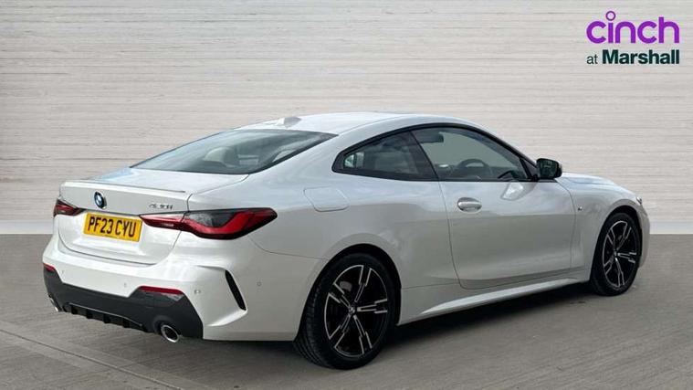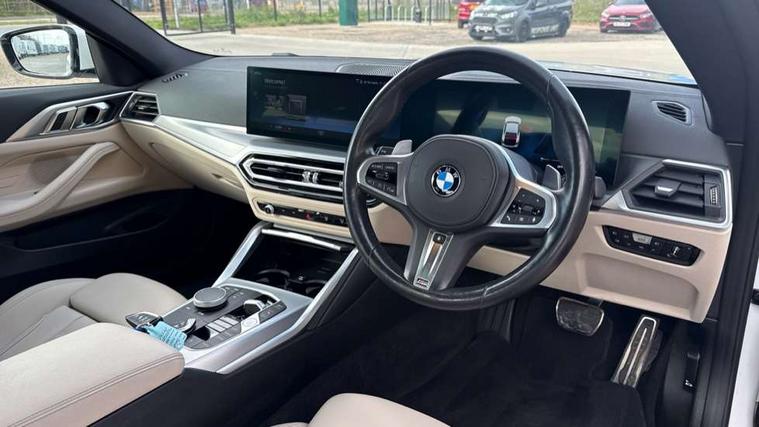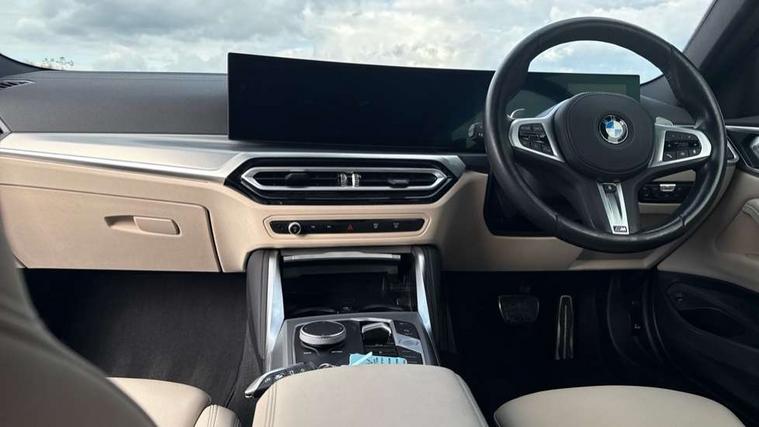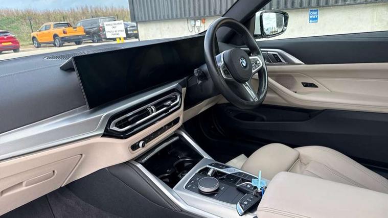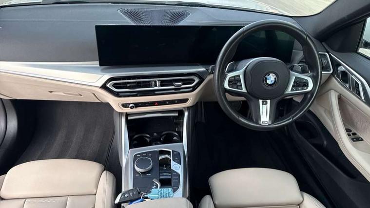 Active guard plus, Attentiveness assist, Auto start-stop, Bluetooth hands free facility with USB audio interface with audio streaming, BMW ConnectedDrive online services, BMW iDrive controller on centre console, BMW Live Cockpit Plus Nav-12.3" instrument&14.9" control Widescreen curved display/Intelligent Voice Assist/iDrive touch/Access 3rd party app/4G LTE, BMW service history, BMW Teleservices, Brake pad wear indicator in front and rear, Check Control warning system for monitoring of lights and door/luggage compartment open warning, Condition based service, Cruise control with speed limit function, Electric power steering with Servotronic steering optimised at all speed ranges, Gearshift time display in manual mode, Instrument cluster with speedometer with mph readout, tachometer, fuel gauge and oil temperature gauge, Integrated owners handbook, Oil sensor for level and grade, warning by check control system, On board computer - average speed, fuel consumption, outside temp display with acoustic warning, clock/date, service interval, odometer/trip meter, Optimum shift indicator, Run flat indicator, Shifting point display, Variable sport steering, 8 speed automatic steptronic transmission with gearshift paddles, Balanced 50/50 weight distribution, Double joint spring strut front axle, Double VANOS, Drive performance control - ECO PRO, comfort and sport modes, Electronic differential lock control (EDLC), High precision injection, Low centre of gravity, M sport suspension, Petrol Particulate Filter, Stroke dependent dampers, VALVETRONIC engine management, 2x USB Type C ports in front centre console for charging and data transfer, 2x USB Type C ports in rear centre console for charging, DAB tuner, Electronic service booklet, Acoustic glazing, Automatic headlight beam throw control with load dependent regulating reaction, dynamic compensation of braking dive and acceleration squat, Automatic windscreen wipers and automatic headlight, Automatically dimming electrochromatic rear view mirror, BMW emblem on engine compartment lid and tailgate, BMW kidney grille with mesh grille front side of the nuggets in matt aluminium and frame in chrome high gloss, Body colour fuel filler flap, Body colour roof fin, Brushed aluminium inserts in the front door sill finishers with BMW designation, Door sill strips, Dynamic brake lights, Electric windows - front and rear, with open/close fingertip control, anti trap facility and comfort closing function all round, Exterior mirrors - electrically folding with anti-dazzle, Fading support, Follow me home headlights, Front and rear bumper system, Front apron plastic in body colour, Green tinted heat protection glazing, High gloss shadow line exterior trim, Illuminated bow type door handles in body colour drivers side with door lock, Interior rear view electrochromatic mirror with automatic anti dazzle function, LED daytime running lights, LED front fog lights, LED front indicators, Licence plate panel integrated into front bumper and tailgate, Lightweight engineering, M designation on front side panels, left and right, M rear boot spoiler, Model designation on right side of tailgate, One piece front bumper cover including towing eye cover in body colour, Preparation for high beam assistant, Rear boot, Reversing light, Side frame decorative moulding black matt, Two part LED tailights in L-shape with components in smoked glass, brake light, LED turn indicator and rear fog light, Visible exhaust tailpipe finisher, Visible VIN plate, Welcome lights in interior and door handle area, Widened track and increased camber values for max transverse dynamics, agility and steering precision, Window recess cover black high gloss, Windscreen wipers with integrated heated washing jets, 12V power socket in front centre console, 2 front cupholder in centre console with clamping elements and matt black inlay, 2 Rear seat headrests, 2 seat bench in second row, 3 spoke M sport leather multifunction steering wheel, 3 zone automatic air conditioning, 4 pieces lashing eyelets in luggage compartment, 40:20:40 split folding rear seat and rear centre armrest with two cupholders, Anthracite headlining, Armrest integrated in front and rear door trim + front centre console armrest, BMW ID, Driver seat backrest width adjustment, Extended storage - Luggage compartment partition net on left side trim panel, Bag hook on both sides of the luggage compartment, Four grab handles integrated in roof lining, Front and rear door pockets, Front and rear reading lights, Front sport seats, Heated driver and front passenger seats, Height adjustable front headrests, Height adjustable mechanically and infinitely variable steering column, Illuminated armrest storage compartment, Illuminated glove compartment with separate small compartment, Make-up mirror lights, Single front passenger seat, Storage compartment in rear centre console, Sunvisors with illuminated vanity mirrors and ticket pocket, Toolkit located in luggage compartment, Velour front floor mats, Vernasca leather upholstery, Ambient lighting pack - 4 Series, Connected professional package - 4 Series, M sport exterior styling pack - 4 Series, 2 x 3-point rear seatbelts, Battery safety cut-off, BMW emergency call, Brake energy regeneration, Braking pre-tensioning, Child seat ISOFIX attachment for the two outer rear seats, Coasting in idle in ECO PRO mode, Cornering brake control (CBC), Crash sensor activating of airbags, Unlocking doors, hazard warning lights, interior light, safety battery terminal, Driver and front passenger side airbags, integrated in the door side seat backrest bolsters for all seat variants, Driver/Front Passenger airbags, Dry braking, Dynamic brake control, Dynamic stability control + (DSC+) - Anti-lock Braking System (ABS) with brake assist and cornering brake control + Automatic Stability Control (ASC), Dynamic Traction Control - DTC, Electric parking brake including automatic hold function and automatic release of the parkin