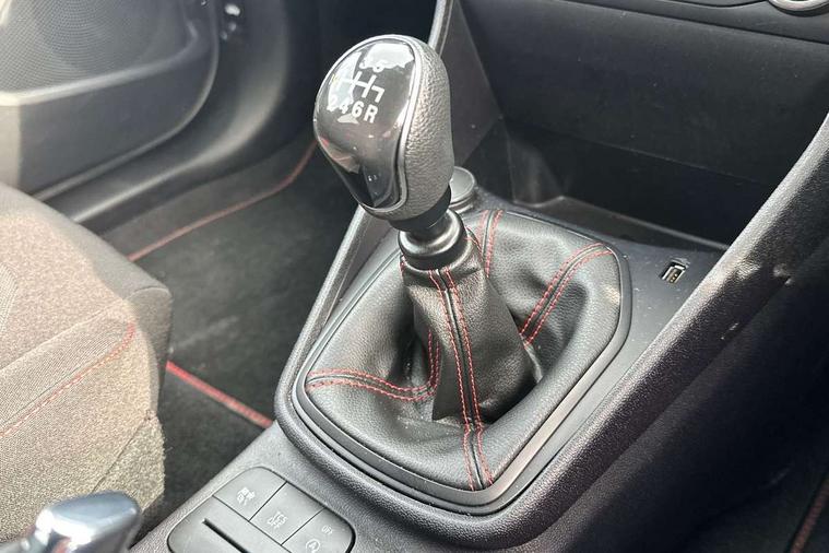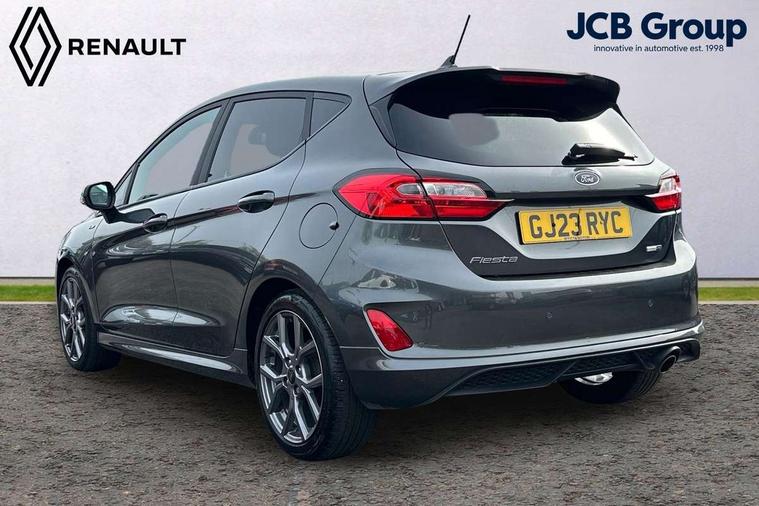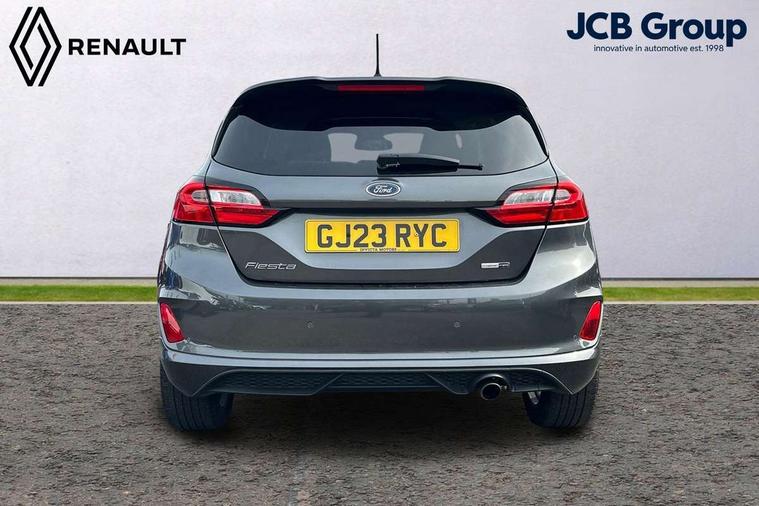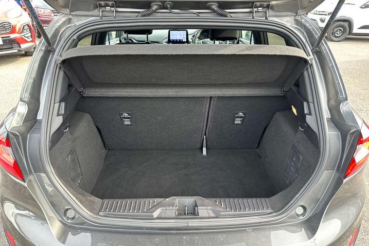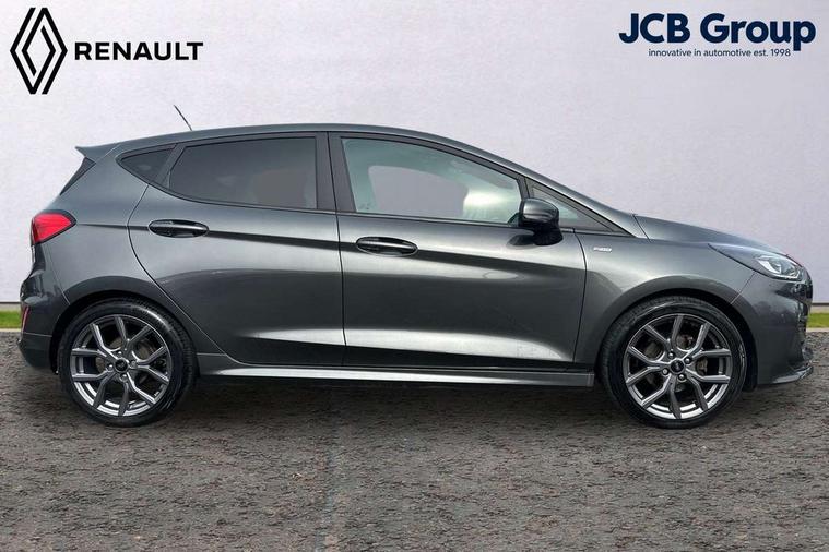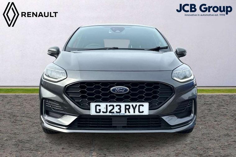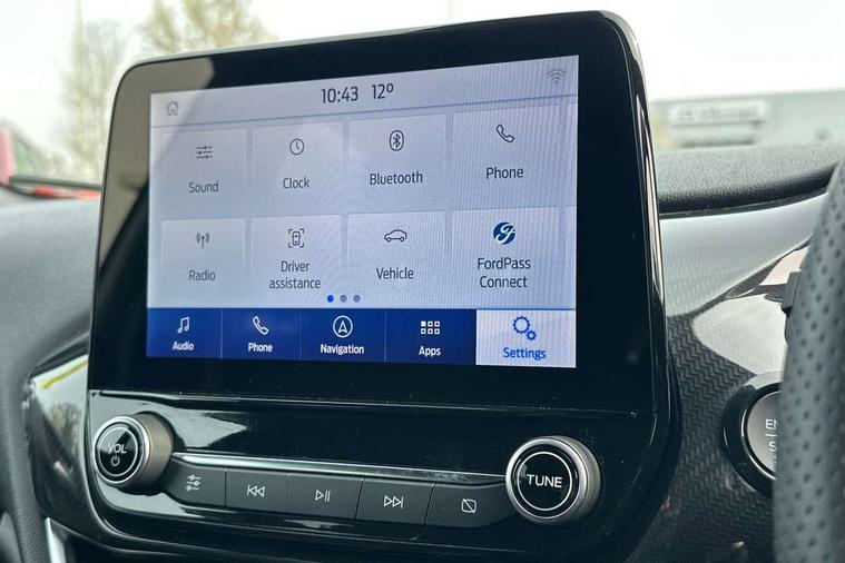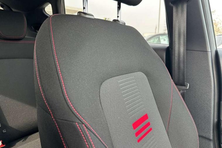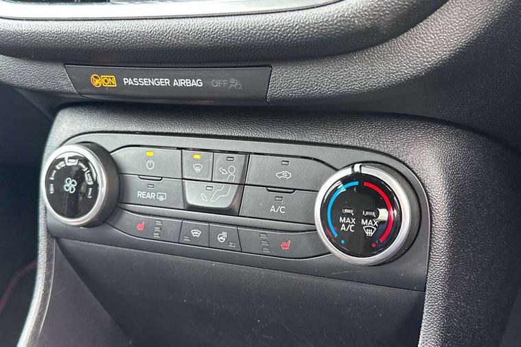 4.2" Colour TFT Ice blue illumination analogue cluster, Driver alert system, Electric power steering, Ford easy fuel, Lane keep assist, Lane keeping aid, Rear parking distance sensors, Selectable drive modes (Normal, Sport, Track), Trip computer, Sports suspension, 3rd brake light, Auto high beam, Automatic headlights, Body colour bumpers, Body colour large rear spoiler, Body coloured electrically operated with side indicators, Electric front windows/one touch facility, Electric rear windows, Quickclear heated windscreen, Rain sensing wipers and auto dimming rear view mirror, Rear privacy glass, Rear side wing doors, Rear wiper, Unique ST-Line grille, full bodystyling kit and large body coloured rear spoiler, 3 rear headrests, 3 seat bench in 2nd row, Adjustable head restraints, Black headlining, Centre console with opening armrest, 2x cupholders, 12v and USB, Cloth upholstery with red stitching, Leather gear knob, Manual 2 way passenger seat adjust, Manual 4-way driver seat adjust, Manual air conditioning, Premium floor mats, Sensico wrapped steering wheel, Single front passenger seat, 3 point seatbelts on all rear seats, Electronic stability control with hill start assist, Front and rear seat belt warning, Manual child lock in rear doors, Tyre pressure monitoring system, Keyless start with 'Ford Power' starter button, MyKey system, Remote central locking, Thatcham alarm with power door dead locks, 17" 5x2 spoke alloy wheels with rock metallic finish,