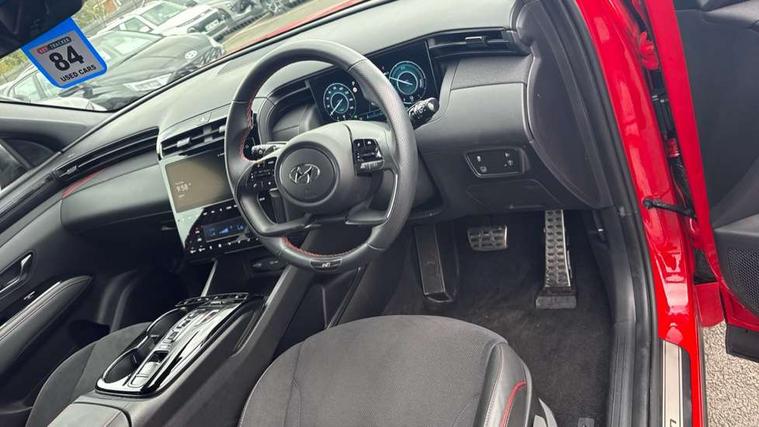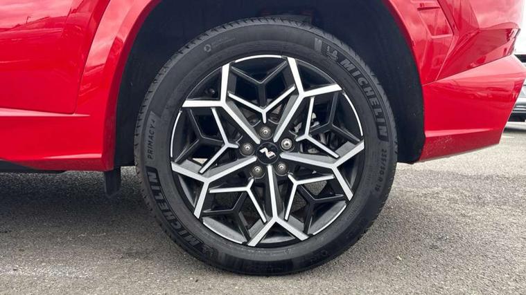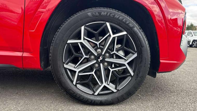 10.25" super vision instrument cluster, 10.25" touchscreen satellite navigation with mapcare and live services, Apple car play/Android Auto, Bluetooth system, Cruise control, Digital clock, Drive mode selector, Driver attention warning, E-call, Emergency stop signalling system, Forward Collision Avoidance Assist (FCA) - Car, Pedestrian and Cycle, Front and rear parking sensors, Intelligent speed limit assist, Lane follow assist, Lane keep assist, PAS, Rev counter, Reversing camera, Tailgate open warning light, Trip computer, Trip odometer, Voice recognition, Water temperature gauge, Windscreen washer fluid sensor and warning indicator, Wireless phone charging pad, Shift by Wire Gear Selector (SBW), 2 front and 2 rear speakers with 2 tweeters, DAB Digital radio, Steering wheel mounted audio/phone controls, USB connections in front and rear, Adjustable intermittent front windscreen wipers with aero wiper blade, Auto dimming rear view mirror, Automatic defog system, Automatic headlights with dusk sensor, Automatic windscreen wipers with rain sensor, Black headlamp bezels, Body colour bumpers, Body colour door mirrors with integrated indicators, Body colour exterior door handles, Body coloured wheel arches, Dark chrome effect radiator grille, Electrically adjustable, heated and power folding door mirrors, Follow me home headlights, Front and rear electric windows with anti-trap mechanism and one touch control, Front fog lights, Gloss black door frame moulding, High beam assist, High level third brake light, LED daytime running lights, LED rear lights, MFR - LED headlight with static bending light, N Line body coloured side mouldings, N Line design front grille, N Line Exclusive front and rear bumpers, N Line rear spoiler with fins, Positioning Lights - LED, Privacy glass - Rear windows and tailgate, Rear side wing doors, Rear wash/wipe with intermittent wipe setting, Roof rails, Silver front and rear skid plate, Sports twin tip exhaust and diffuser, Tinted glass with windscreen shade band, Trailer stability assist, 12V power outlets in front console and luggage compartment, 3 seat bench in 2nd row, 40/20/40 split folding rear seat, Adjustable head restraints (Up and down), Alloy pedals, Ambient lighting, Black headliner, Cupholders in rear armrest, Door courtesy lights, Driver and passenger sunvisors with illuminated LED vanity mirrors, Driver's seat electric lumbar support, Driver's seat manual height adjust, Dual zone climate control, Front and rear door pockets, Front armrest with storage box, Front door pocket bottle holders, Front passenger seat lumbar adjustment, Heated front seats, Height/reach adjustable steering column, Illuminated/air conditioned glove compartment, ISOFIX child seat anchorage points attached on outer rear seats, Leather wrapped steering wheel, Leather/suede upholstery, Luggage area underfloor compartment, Luggage compartment lighting, Luggage cover, Luggage hooks, Manual height adjustable front passenger seat, Map and reading lights, N Line logo on steering wheel, Reclining rear seats, Retractable load cover, Single front passenger seat, Sunglasses holder, 3x3 point rear seatbelts, Active bonnet, Airbag - Front, front side, curtain and centre front airbags, Anti-lock brake system (ABS), Brake assist function, Childproof rear door locks, Curtain airbag roll over sensor, Downhill brake control, Electric parking brake with auto hold function, Electronic stability control, Front and rear seatbelt reminder, Front passenger airbag deactivation switch, Front seatbelt pretensioners, Hill start assist control (HAC), Multi-Collision braking, Outer rear seatbelt height adjustment, Seatbelt height adjustment for front seats, Traction control, Tyre pressure monitoring system with individual tyre pressure display - TPMS, Vehicle stability management, Alarm, Deadlocks, Immobiliser, Locking wheel nuts, Remote control central locking, Smart key with keyless entry and engine start/stop button, Speed sensitive auto door locking, 19" Alloy wheels, Tyre repair kit,