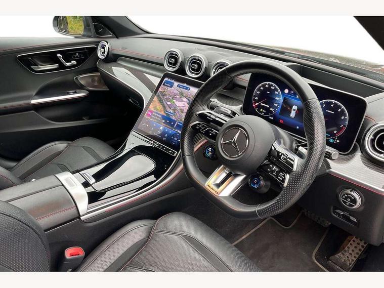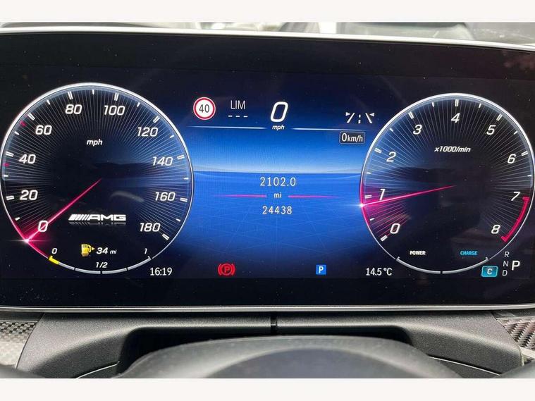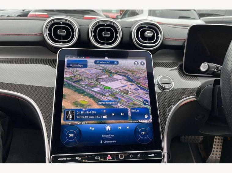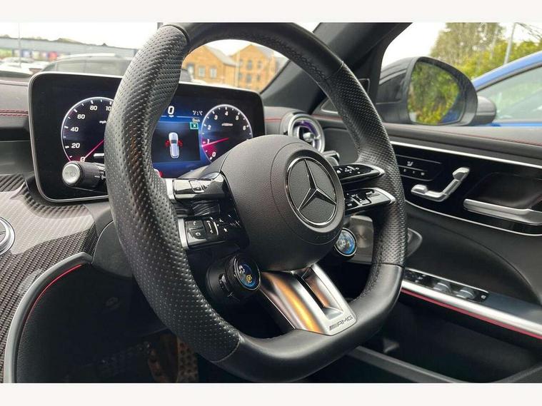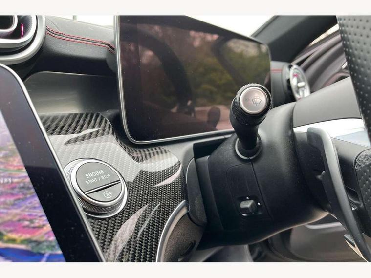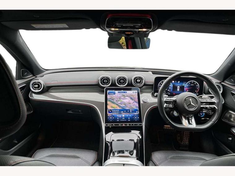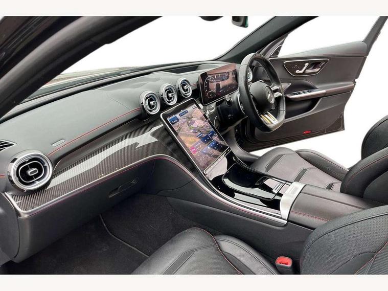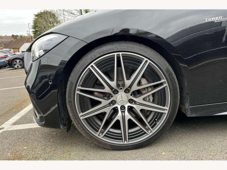 11.9" high resolution multimedia colour display, 12.3" digital instrument cluster display, Active brake assist plus, Active lane keeping assist, AMG DYNAMIC SELECT with a choice of driving modes (Slippery, Comfort, Sport, Sport+, Individual), Attention assist, Cruise control with speedtronic variable speed limiter, E-call, Easy pack automatic powered tailgate, Extended MBUX functions, Finger print sensor, Fluorescent jacket for driver, Head up Display, MBUX augmented reality for navigation, MBUX navigation premium, MBUX voice control activated by keywords "Hey Mercedes", Mercedes connect me, Mercedes me remote services, Outside temperature gauge, Pre-installation for digital key transfer, Rear axle steering, Remote boot release, Service indicator (ASSYST), Smartphone integration, Sports direct steer speed sensitive steering, Status display for rear seat belts in instrument cluster, Traffic sign assist, Wireless charging system for mobile devices, 66l fuel tank with increased capacity, 9G TRONIC 9 speed automatic transmission, Agility control sports suspension with adaptive damping system, Petrol Particulate Filter, Residual engine heat utilisation, Sporty engine sound system, Burmester 3D surround sound system, DAB Digital radio, MBUX multimedia system, Adaptive brake lights, Adaptive high beam assist plus, AMG body styling front apron, rear apron and side skirts, AMG front bumper with sporty air intakes and chrome elements, AMG illuminated door sills with AMG lettering and with exchangeable cover, AMG rear bumper with high gloss chrome elements, AMG side skirts in vehicle colour, B-pillar trim in glossy black, Body coloured bumpers, Body coloured door mirrors, Chrome beltline trim, Chrome roof rails, Daytime running lights, Digital light LED headlights with projection function, Electric panoramic sliding sunroof, Electric windows with one touch opening/closing and obstruction sensors, Electrically adjustable and heated door mirrors, Exhaust system with two round twin tailpipe trim elements in high gloss chrome, Green tinted glass, Heat insulating dark tinted glass, Illuminated front door sill panels, LED Indicators, LED tail lights, LED third brake light, Mercedes AMG exterior, Noise acoustic glass, Powerdomes on bonnet, Privacy glass, Radiator diamond grille with integrated Mercedes Benz star and louvre silver with chrome pins, Radio aerial integrated into rear window, Rain sensor with automatic windscreen wiper activation, Rear side wing doors, Rear wiper, 3 seat bench in 2nd row, 3 spoke flattened bottom AMG multifunction steering wheel in black nappa leather with chrome inserts and perforated leather in grip area, 40:20:40 split folding rear bench seat, AMG Leather upholstery, AMG sports seats, AMG steering wheel buttons, Audio and onboard settings control on multifunction steering wheel, Auto Mercedes-Benz child seat recognition sensor, Black air vents with silver chrome elements, Black floor mats with AMG lettering, Black roof liner, Door trim elements high gloss black with silver chrome surroundings and switches, Double cupholder in centre console, Electrically height/reach adjustable steering column, Folding rear seat backrest, Front and rear head restraints, Front centre armrest with storage compartment, Gearshift paddles on steering wheel, Heated front seats, Illuminated glove compartment stowage, Interior lighting - 64 colour Ambient lighting, Load compartment cover, Mercedes AMG interior, Overhead control unit in high gloss black, Rear top tether child seat ISOFIX attachment, Single front passenger seat, Sports pedals with stainless steel surfaces and rubber studs, Sunvisors with illuminated vanity mirrors, Thermotronic automatic 4 zone climate control, Interior lighting package - C Class, Memory package - C Class, Mirror pack - C Class, Parking package with 360 degree camera - C Class, Seat comfort pack - C Class, Stowage space pack - C Class, USB package - C Class, USB package plus - C Class, 3 rear 3 point seatbelts, Active bonnet pedestrian safety measure which detects an impact and raises bonnet, Adaptive brake system with HOLD function and brake drying in the wet, Anti-lock braking system (ABS), Brake calipers with Mercedes-Benz lettering + perforated front brake discs, Child proof door locks, Drivers knee airbag, Drivers pelvis airbag, Dual stage driver/passenger airbags, Electric parking brake, Electronic Stability Programme (ESP), Front centre airbag between driver and front passenger seats, Front side airbags, Larger brake discs on front axle, Rear seatbelt warning indicator, Sports braking system, Tyre pressure monitoring system, Warning triangle and first aid kit, Window airbags for driver, front passenger and rear passenger, Central locking with interior switch, automatic locking and crash sensor with emergency opening function, Chrome surround in electric key, Dashcam, Keyless Go comfort access, URBAN GUARD vehicle protection (Thatcham Category 1) consisting of break-in, anti-theft alarm system (ATA), interior monitoring and tow-away protection, Artico man-made leather dashboard with contrast stitching, Centre console trim in high gloss black with carbon fiber trim, 20" AMG 5 twin spoke light alloy wheels in tantalite grey with high sheen finish, Noise reduced tyre with foam absorber, Summer tyres, TIREFIT with tyre inflation compressor,