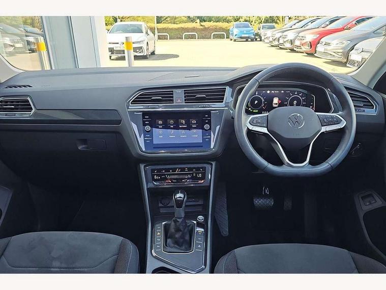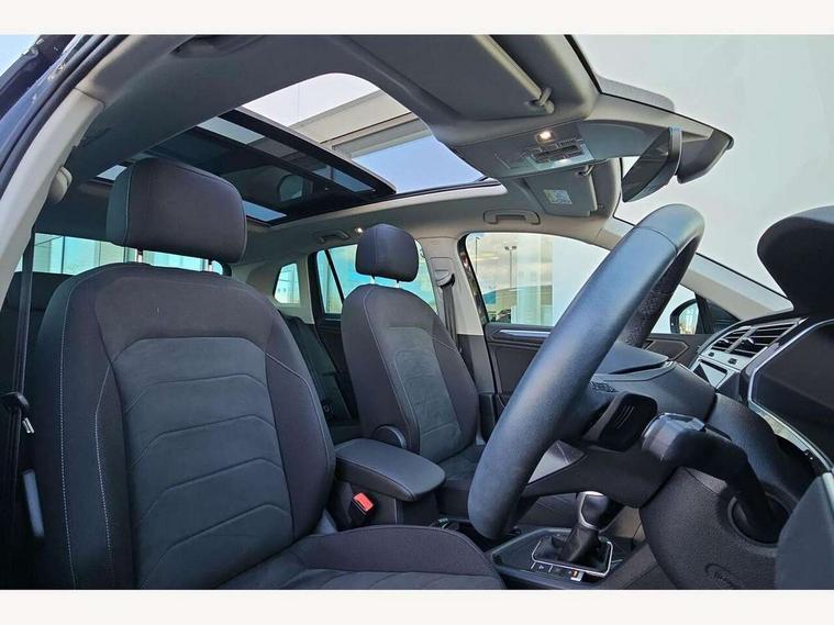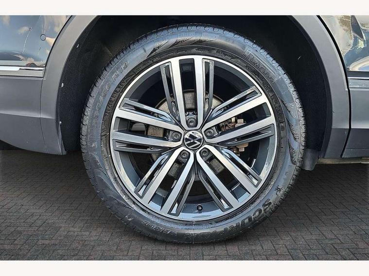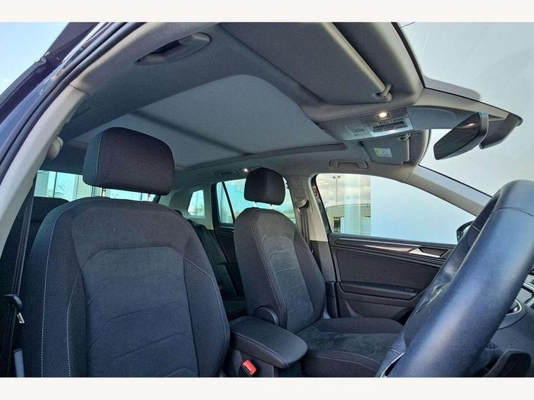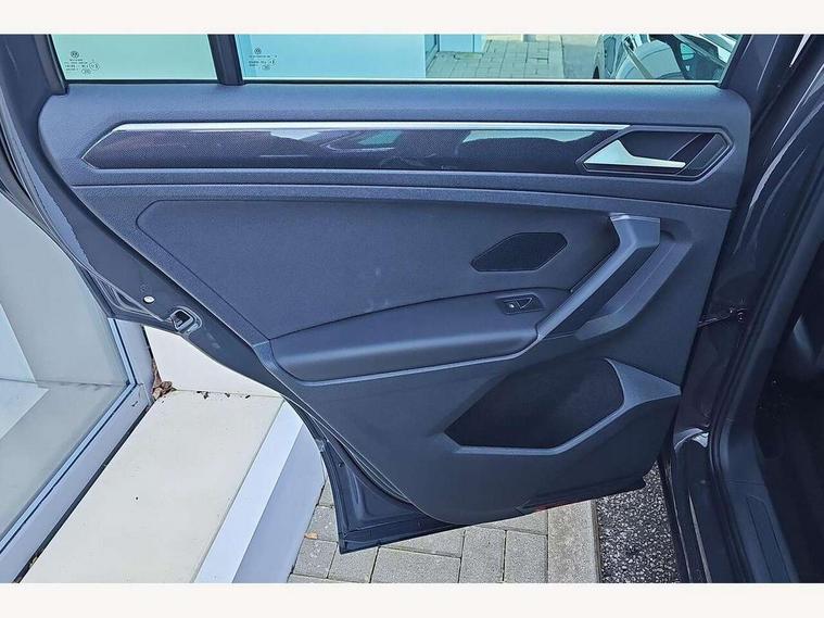 Adaptive cruise control ACC stop and go including speed limiter, App-Connect incl. App-Connect Wireless for Apple CarPlay and Android Auto, Bluetooth phone integration system, Distance control assist, Driver alert system, Driver profile selection, Dynamic road sign display, eCall emergency call system, Electromechanical speed sensitive power steering, Engine start/stop button, Lane keeping system Lane Assist, Lights on warning, Motorised electric tailgate operated via key fob, drivers door and foot movement under tailgate, Multifunction front facing camera, Outside temperature display, Premium multifunction display with multi colour display, Remote control boot opening, Rev counter, Revision / skills operating concept travel assistant, Service interval indicator, Speed limit display, Start/stop system with regenerative braking, Tailgate/trunk lid unlocking from outside, Trip computer, Warning sound and light for doors and tailgate open, Battery regeneration during braking, Charging cable Mode 3 Type 2 / 3 (16A), XDS electronic differential lock for improved traction and handling, 4 X 20 watt output, 8 Speakers, Diversity antenna for FM reception, Radio, SD card slot, Simultaneous pairing of 2 compatible mobile devices, SMS functionality - read, compose and send SMS messages using touch-screen display, Title and cover art display, USB C ports, Aluminium door sill protectors, Auto dimming interior rear view mirror, Automatic headlight control system, Body colour door handles, Body coloured bumpers, Body coloured door mirrors with integrated indicators, Coming/leaving home lighting function, Dynamic headlight range control, Front and rear electric windows, Heated rear window, High level 3rd brake light, IQ light-Adv high beam, Dynamic light assist for LED matrix headlamp+LED separate DRL+DCL, dark red rear LED tech, Poor weather light+ cornering light, Laminated safety glass windshield, heat and sound insulating, LED rear number plate lights, Privacy glass for rear side windows and rear window, Rain sensor windscreen wipers, Rear exhaust tailpipe, Rear fog lamp, Rear side wing doors, Rear windscreen washer and wiper with interval delay, Side and rear windows in heat insulating glass, Tilting and sliding panoramic sunroof with rear panoramic sunroof, Trailer Stability Programme, Windscreen wipers/ intermittent wipe + 4 position delay, 12V outlet in center console rear and in luggage compartment, 12V outlet in front and tray, 2 cup holders in front, 2 LED front reading lights, 2 LED rear reading lights, 3 bench rear seats in 2nd row, 3 rear headrests, 4 load lashing points, 40:20:40 split folding rear seats, Air Care Climatronic 3 zone automatic climate control with enhanced air filter and controls in the rear, Backrest release for left front seat, Climate control unit rear with touch function, Door and side trim panel in foam film and woven fabric, Front centre armrest, Front footwell illumination, Front seats head restraints (x-adjustment), Height adjustable front seats, Height/reach adjust steering wheel, Instrument lighting white adjustable panel illumination, Interior light with delay, Isofix Preparation 2 Rear child seats, Leather gear knob, Lockable cooled glovebox, Luggage compartment lighting, Luggage net, Rear bench seat asymetrically split folding, longitudinally movable and folding with load-through hatch and center armrest, Remote unlocking for rear seat backrest, Removable luggage cover, Removable rear headrests, Safety optimised front head restraints, Single front passenger seat, Sliding/reclining rear seats, Standard rear seat release, Storage compartment in driver's door, Storage compartment in passenger's door, Storage compartment in rear doors, Storage compartments in luggage area left and right, Storage tray on dashboard, Sun visors with illuminated vanity mirrors, Top front comfort seats, Variable boot floor, height adjustable and removable, Easy open and close pack with safelock - Tiguan, Park assist pack - Tiguan, 3 point seat belt for centre rear seats, 3 point seat belts with seat belt pretensioners for the outer rear seats, Active bonnet, Curtain airbags for front and rear passengers, Driver/Front Passenger airbags, Drivers knee airbag, Electronic parking brake with auto hold, Electronic Stability Control with driver steering recommendation, ABS, ASR, EDL, EDTC and trailer stabilization, Front assist with autonomous emergency braking (for Adaptive Cruise Control ACC up to 130 mph), Front disc brakes, Front passenger airbag deactivation, Front side airbags, Height adjustable front 3 point seatbelts + pretensioners, Hill hold control, Manual child proof rear door locks, Pedestrian monitoring system, Power assisted brakes, Proactive passenger protection system in combination with front assist, Rear disc brakes, Rigid safety cell with front and rear crumple zones, Two tone horn, Tyre pressure loss indicator, Warning sound and light for front seat belts if unfastened, Anti theft alarm system with interior monitoring, backup horn and towing protection, Anti theft wheel bolts, Central locking system with safelock radio remote control and 2 remote control folding keys, Electronic engine immobiliser, Tool kit, Tyre mobility kit Includes 12V compressor and tyre sealant,