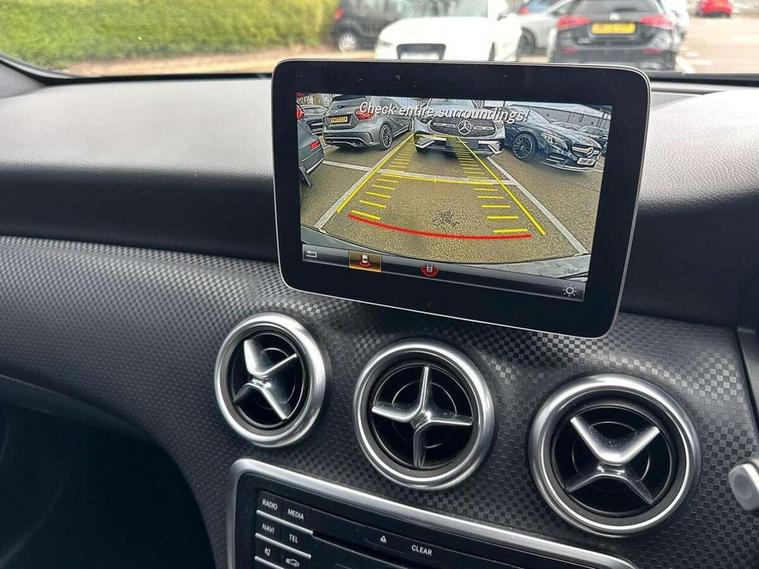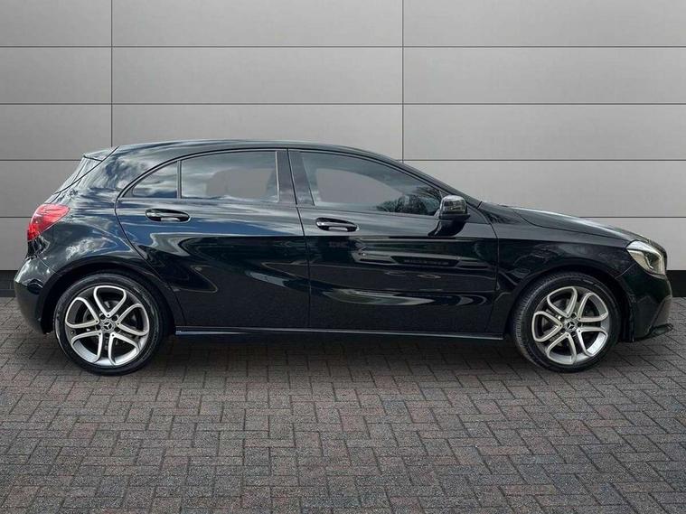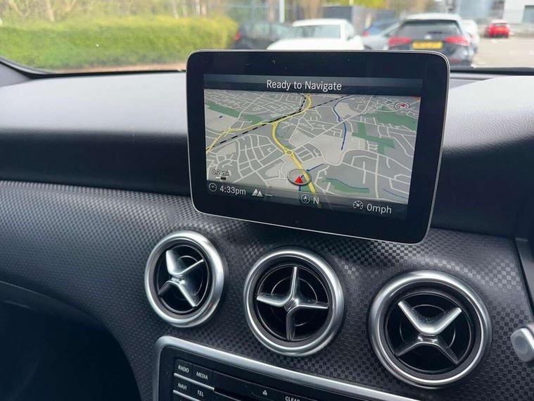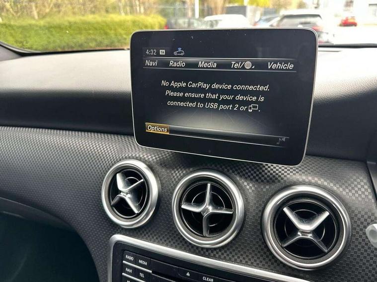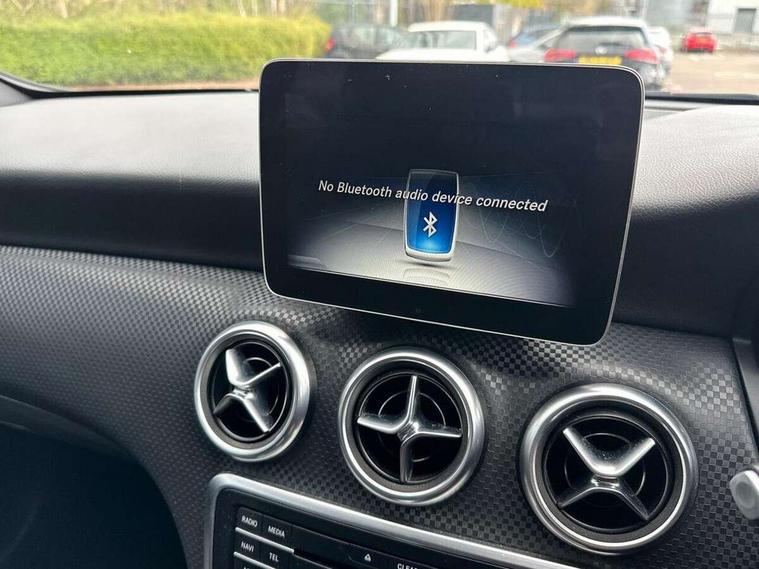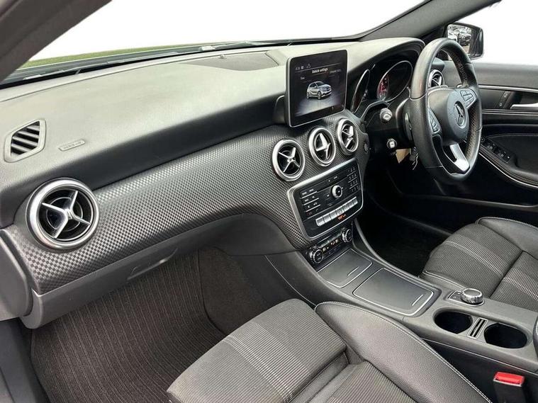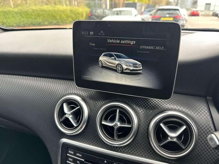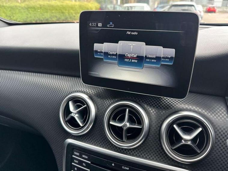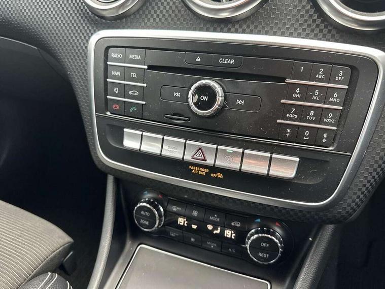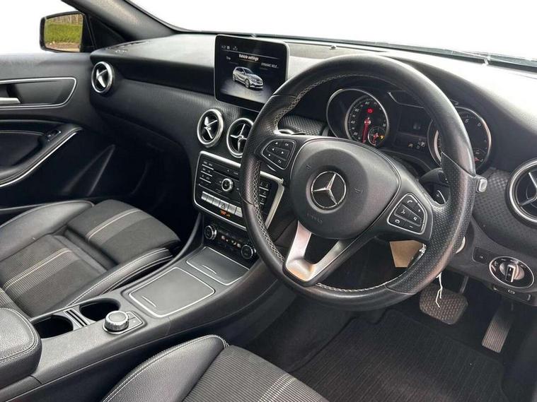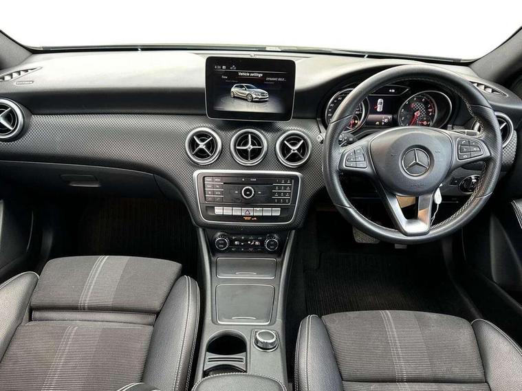 8" colour display screen, Attention assist, Bluetooth interface for hands free telephone, Bulb failure indicator, Collision prevention assist plus, DYNAMIC SELECT with a choice of driving modes (ECO, Comfort, Sport, Sport+ and Individual), External temperature gauge, Garmin Map pilot navigation system with SD Card, Low fluid warning light, Reversing camera, Service indicator (ASSYST PLUS), Smartphone integration with Apple CarPlay, Speed sensitive parameter assisted steering, Speedtronic cruise control, Trip computer, Comfort suspension, Media interface, Mercedes Audio 20 radio/single CD + telephone keypad, SD card slot, USB port, Adaptive brake lights, Body colour bumpers, Body colour door handles, Body colour side skirt, Body coloured door mirrors, Chrome beltline trim, Diamond radiator grille with black pins with one louvre in silver + chrome insert, Electric adjustable heated door mirrors, Electric front windows, Electric rear windows, Headlamp assist, Heated rear window with timer, LED daytime running lights, LED Headlights, LED tail lights, Privacy glass, Rain sensor windscreen wipers, Rear wiper, Twin Trapezoidal tailpipes, 1/3 to 2/3 split folding rear seats, 12V socket, 3 spoke perforated leather multifunction sports steering wheel, ARTICO man-made leather/Maringa cloth upholstery, Auto Mercedes-Benz child seat recognition sensor, Black headlining, Dual zone automatic climate control, Footwell lights, Front and rear reading lights, Front centre armrest with storage compartment, Front head restraints, Front sport seats, Gearshift paddles on steering wheel, Height adjustable front seats, Height/reach adjustable steering column, Illuminated door sills, Illuminated glovebox, Illuminated storage compartment, Isofix rear child seat preparation, Load securing rings in luggage compartment, Luggage compartment cover, Rear head restraints, Storage compartment under load area floor, Sunvisors with illuminated vanity mirrors, Twin front cupholders, Seat comfort pack - A Class, 3 rear 3 point seatbelts, ABS with Brake Assist, Active bonnet, Adaptive brake system, Black seat belts, Child proof door locks, Crash responsive emergency lighting, Drivers knee airbag, Dual stage driver/passenger airbags, Electronic parking brake, ESP with ASR, Front and rear seatbelt reminder, Front head airbags, Front passenger seat occupancy sensor, Front side airbags, Hill start assist, Tyre pressure monitoring system, Warning triangle and first aid kit, Window airbags, Alarm system/interior protection/immobiliser, Keyless ignition, Remote central locking, Checked pattern trim, Chrome air vent surrounds, 17" 5 twin spoke alloy wheels painted in black with high sheen finish, Tirefit sealant with electric air pump,