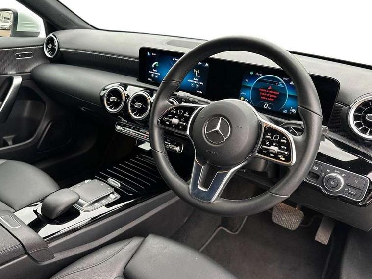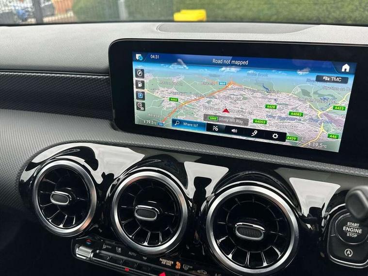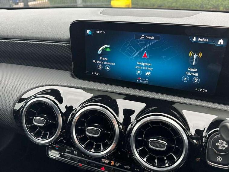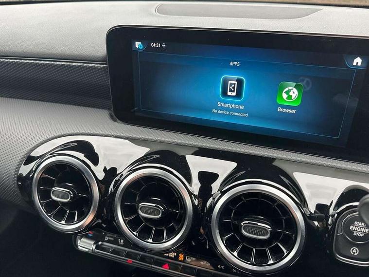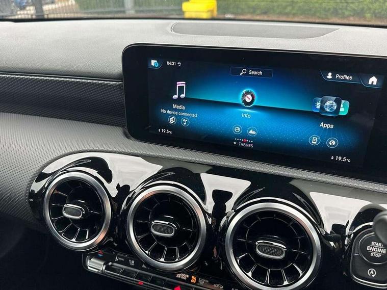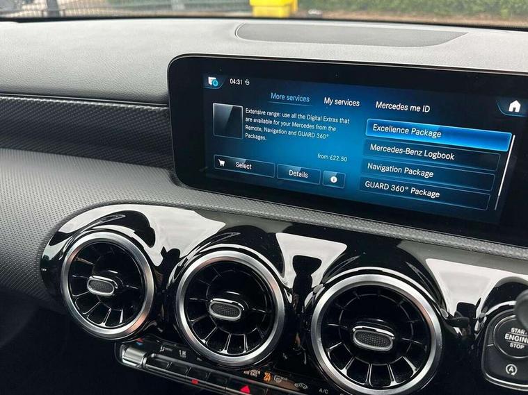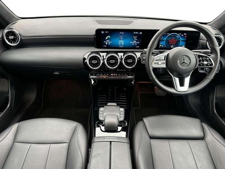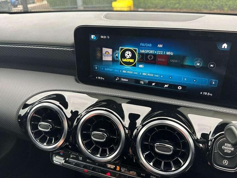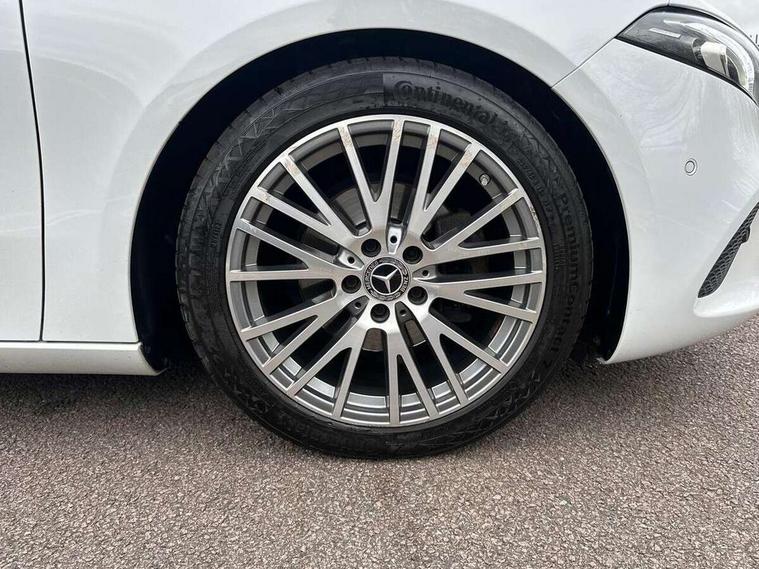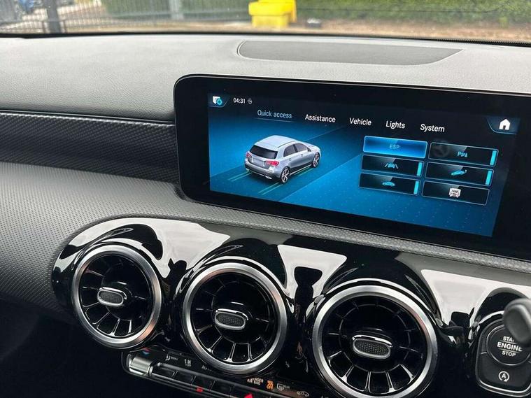 10.25" media display, 180 degree rear view camera with parking guidelines, 7" colour screen in instrument panel, Active parking assist with visual and audible warning of detected obstacles, Attention assist, Brake pad wear indicator warning light, Car wash mode, Cruise control + speed limiter, Direct steering, Dual bluetooth interfaces, DYNAMIC SELECT with a choice of driving modes (ECO, Comfort, Sport and Individual), ECO start/stop function, Fluid level warning indicator for fuel, oil, coolant and washer fluid, Hard-disk navigation, Hey Mercedes Voice activation, Lamp failure indicator, Lane keeping system, Mercedes me connect including emergency call system, accident recovery, breakdown and maintenance management, Mercedes me remote services, Outside temperature gauge, Owners manual in English, Pre-installation for private car sharing, Preinstallation for Mercedes Benz link, Service indicator (ASSYST), Smartphone integration with Apple CarPlay and Android auto, Speed limit assist, Speed sensitive power steering, Trip computer, Ultrasonic sensors positioned in the front and rear bumpers, Lowered comfort suspension, Rear axle torsion beam, 2 USB ports (type C) in rear stowage compartment and one in front of center console, 6 speakers, DAB Digital radio, MBUX multimedia system with DAB digital radio and touchpad including satellite navigation, Mercedes-Benz sound system - 100W, 4 Electric Front and Rear windows, Adaptive brake lights, Automatic headlights, Black weather strip, Body colour bumpers, Body colour door handles with chrome inserts, Body colour side skirt, Body coloured door mirrors, Chrome beltline trim, Diamond radiator grille with black pins with one louvre in silver + chrome insert, Electric adjustable and heated door mirrors with integrated LED side indicators, Exhaust system - Twin visible tailpipes in polished stainless steel, Headlamp assist automatic headlamp activation, Heated glass rear windscreen + timer control, LED High level third brake light, LED high performance headlamps with integrated LED daytime running lights, LED tail lamp, Privacy glass, Radio aerial, Rain sensing windscreen wipers with two sensitivity settings, Rear fog lights, Rear side wing doors, Rear wiper, Window line trim strip in chrome, 3 seat bench in 2nd row, 3 Spoke leather multi function steering wheel, 40:20:40 split folding rear seats, Artico man-made leather upholstery, Auto Mercedes-Benz child seat recognition sensor, Black air vents with surround in silver chrome, Black roof lining, Controller on centre console with chrome surround, Front centre armrest with storage compartment, Front comfort seats with adjustable head restraints, Front door sills with Mercedes Benz lettering, Front seat backs luggage nets, Gearshift paddles on steering wheel, Heated front seats, Height/reach adjustable steering column, Interior mirror with reading lamps in black and frameless, Manual height adjustable front seats, Rear head restraints, Seat occupancy sensor for front passenger seat, Single front passenger seat, Stowage compartment in centre console with retractable cover, Sunvisors with illuminated vanity mirrors, Touchpad on center console, Twin front cupholders, Two zone thermotronic luxury automatic climate control, Velour floor mats, Light and sight pack - A Class, Mirror package - A Class, Seat comfort pack - A Class, 3 rear 3 point seatbelts, ABS with Brake Assist, Active bonnet, Active brake assist includes forward collision warning system with autonomous braking, Adaptive brake assist with hold function and hill start assist, Childproof locks manually operated for rear doors and electrically operated for rear power windows, Crash responsive emergency lighting, Driver and passenger head and side airbags, Drivers knee airbag, Dual stage driver/passenger airbags, Electronic parking brake, ESP curve dynamic assist, ESP with ASR, Front and rear seatbelt reminder, ISOFIX and top tether child seat fixing points in two outer rear seats, Tyre pressure monitoring system, Warning triangle and first aid kit, Window airbags, Alarm system/interior protection/immobiliser, Keyless Go, Remote central locking and crash sensor with emergency opening function, Urban guard vehicle protection system with immobiliser and interior protection, Black seatbelts, Dark carbon fibre interior trim, 18" Multi spoke light alloy wheels painted in himalayas grey with high sheen finish, Summer tyres, Tirefit sealant kit,