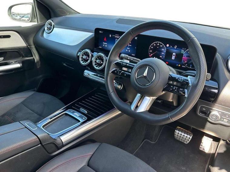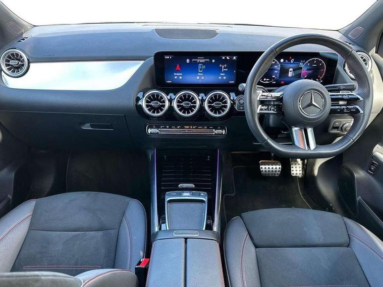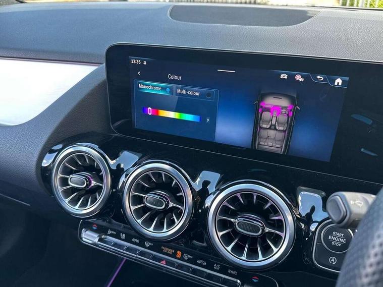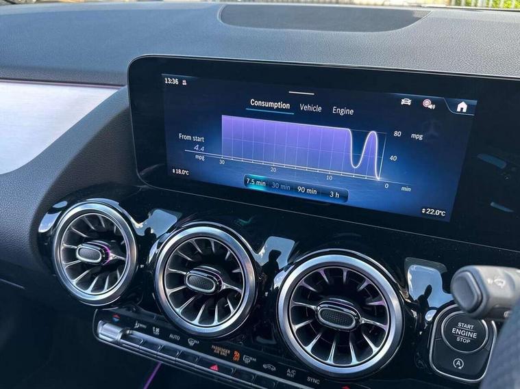 10.25 inch touchscreen central media display, 10.25" Digital instrument cluster display screen, Attention assist - Monitors steering behaviour and long journey fatigue, Blind spot assist, Brake pad wear indicator warning light, Cruise control + speed limiter, Direct steer system, Dual bluetooth interfaces, DYNAMIC SELECT with a choice of driving modes (ECO, Comfort, Sport and Individual), ECO start/stop function, Engine start/stop button, Fingerprint scanner, Fluid level warning indicator for fuel, oil, coolant and washer fluid, GPS aerial, Hard disk navigation, Hey Mercedes Voice activation, Lamp failure indicator, Lane keeping assistant (LKA), Live traffic information, MBUX augmented reality for navigation, Mercedes me connect including emergency call system, accident recovery, breakdown and maintenance management, Mercedes me remote services, Outside temperature gauge, Owners manual and service booklet in English, Pre-installation for private car sharing, Preinstallation for Mercedes Benz link, Remote boot closing, Service indicator (ASSYST), Smartphone integration with Apple CarPlay and Android auto, Speed limit assist, Speed sensitive power steering, Tailgate, Trip computer in multifunction display with current consumption indicator, Wireless charging, Lowered comfort suspension, DAB digital radio tuner, MBUX multimedia system, Mercedes Benz advanced sound system (225 W) with 10 speakers, 1 central speaker, speakers on doors, a tweeter on door, one sub woofer + boost amplifier, 4 Electric Front and Rear windows, Adaptive brake lights, Adaptive high beam assist, AMG body styling - AMG front apron with front splitter and AMG rear apron and visible exhaust tailpipe trim elements, Body coloured bumpers, Body coloured side skirts, Car wash function, Chrome window line, Diamond radiator grille with pins in fine star pattern, Electric adjustable and heated door mirrors with integrated LED side indicators, Exhaust system with 2 Visible tailpipe trim elements and rear apron with trim in chrome, Headlamp assist automatic headlamp activation, Heat insulating dark tinted rear and rear side windows, Heated glass rear windscreen + timer control, High level LED third brake light, Interior mirror with black reading lamps and frameless, LED high performance headlamps with integrated LED daytime running lights, LED tail lamp, Pre-installation for trailer coupling, Privacy glass, Rain sensing windscreen wipers with two sensitivity settings, Rear fog lamp, Rear side wing doors, Rear windscreen wiper, 3 seat rear bench, 3 twin spoke multifunction sports steering wheel in nappa leather with flattened bottom and perforated grip area, 40:20:40 split folding rear seat backrests, Air conditioning - air vents with silver chrome surround, Air conditioning - Two zone thermotronic luxury automatic climate control with display, Artico man-made leather/ MICROCUT microfiber upholstery with contrast topstitching, Automatic child seat recognition sensor, Black roof lining, Brushed stainless steel sports pedals with rubber studs, Electrically adjustable front memory seats with four way lumbar support, Floor mats with AMG lettering, Fluorescent jacket, Folding rear armrest, Freight packaging without tie-down hooks, Front centre armrest with stowage, Front sports seats with adjustable head restraints, Galvanished gear shift paddles on steering wheel, Heated front seats, Illuminated front door sills with changeable cover, Illuminated glove compartment stowage, Interior lighting - 64 colour Ambient lighting, Luggage net on driver/front passenger seat backrest, Manually height and reach adjustable steering column, Rear headrests, Seat occupancy sensor for front passenger seat, Single front passenger seat, Stowage compartment in centre console with retractable cover, Sunvisors with illuminated vanity mirrors, Twin front cupholders, Two outer rear seat isofix and top tether child seat fixing points, 360 degree guard vehicle protection pack - B Class, Interior lighting with light and sight pack - B Class, Keyless Go Comfort pack - B Class, Mirror package with self dimming mirror - B Class, Parking pack - B Class, Seat comfort pack - B Class, USB plus pack - B Class, Winter Pack - B Class, 3 rear three point seatbelts, Active bonnet pedestrian safety measure which detects an impact and raises bonnet, Active brake assist includes forward collision warning system with autonomous braking, Adaptive brake assist with hold function and hill start assist, Airbags - kneebag for driver, Anti-lock braking system (ABS), Black seat belts, Brake assist, Childproof locks manually operated for rear doors and electrically operated for rear power windows, Crash responsive emergency lighting, Curve dynamic assist, Driver and front passenger head and sidebags, Driver and front passenger windowbags, Dual stage driver/passenger airbags, Electric parking brake, Electronic stability programme with acceleration skid control, Exit warning, Front and rear seatbelt reminder, Front passenger airbag deactivation, Sports braking system, Tyre pressure monitoring system, Warning triangle and first aid kit, Alarm system with immobiliser and interior protection -Thatcham category 1, Remote central locking and crash sensor with emergency opening function, Light linear longitudinal grain aluminium trim, 19" AMG multi-spoke light alloy wheels, aerodynamically optimised, painted in titanium grey with high sheen finish, Summer tyres, Tirefit tyre sealant kit,