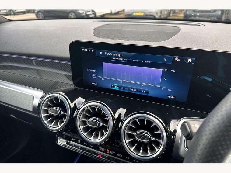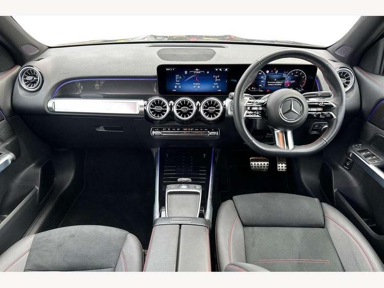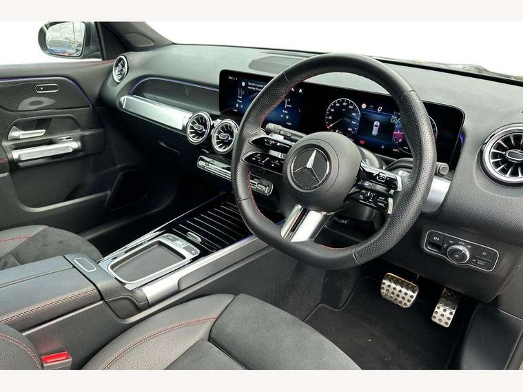 10.25 inch touchscreen central media display, 10.25" Digital instrument cluster display screen, Attention assist - Monitors steering behaviour and long journey fatigue, Blind spot assist, Bluetooth connection, Brake pad wear indicator warning light, Car wash mode, Direct steering, DYNAMIC SELECT with a choice of driving modes (ECO, Comfort, Sport and Individual), ECO start/stop function, Exit warning function, Fingerprint scanner, Fluid level warning indicator for fuel, oil, coolant and washer fluid, Hard disk navigation, Hey Mercedes Voice activation, Lamp failure indicator, Lane keep assist, MBUX navigation premium, Mercedes me connect including emergency call system, accident recovery, breakdown and maintenance management, Mercedes me remote services, Outside temperature gauge, Owners manual and service booklet in English, Pre-installation of private car share, Preinstallation for parking damage notification, Radio aerial integrated into front and rear windshields, Service indicator (ASSYST), Smartphone integration with Apple CarPlay and Android auto, Speed limit assist, Tailgate, Trip computer in multifunction display with current consumption indicator, Wireless charging, Comfort suspension with ride height lowering, Rear axle multi-link, DAB digital radio tuner, MBUX multimedia system, Mercedes Benz sound system (225 W) with 10 speakers, 1 central speaker, speakers on doors, a tweeter on door, one sub woofer + boost amplifier, Pre installation for Mercedes Benz Link, Adaptive brake lights, Adaptive high beam assist, AMG front apron with front splitter in the colour of the vehicle with chrome trim element, AMG rear apron with visible tailpipe trim and chrome trim element, AMG specific/dual flow exhaust pipes in chrome (non-functional), Beltline trim and window line trim strip in high gloss aluminium, Black grained side sill trim with chrome inlay, Body coloured door handles, Electric adjustable and heated door mirrors with integrated LED side indicators, Front and rear electric windows, Headlamp assist automatic headlamp activation, Heat insulating dark tinted glass for rear side windows and rear window, Heated glass rear windscreen + timer control, High level LED third brake light, Illuminated door sill panels with Mercedes-Benz lettering, Interior mirror with black reading lamps and frameless, LED high performance headlamps with integrated LED daytime running lights, LED tail lamp, Polished aluminium roof rails, Radiator grille as a diamond grille with chrome pins and central Mercedes star, Rain sensor windscreen wipers, Rear fog lamp, Rear side wing doors, Rear wiper, Single louvre in matt grey with chrome inserts and black highlights, Two visible tailpipe trim elements exhaust, Wheel arch liners in the colour of the vehicle, 3 seat bench in 2nd row, 3 twin spoke flattened multifunction steering wheel in nappa leather - horizontal twin spoke in high gloss black, vertical twin spoke in silver chrome, 4 way adjustable lumbar support, 40:20:40 split folding rear seats, Air vents with silver chrome surrounds, AMG floor mats, AMG sports pedals with brushed stainless steel surfaces and black rubber studs, Automatic child seat recognition sensor, Black roof lining, Electrically adjustable front memory seats, Fluorescent jacket, Front and rear headrests, Front centre armrest with stowage, Galvanised steering wheel gearshift paddles in silver chrome, Heated front seats, Height adjustable head restraints, Height/reach adjustable steering column, Interior lighting - 64 colour Ambient lighting, Luggage net on driver/front passenger seat backrest, Single front passenger seat, Sports seats, Stowage compartment in centre console with retractable cover and double cupholder and 12 V socket, Sun visors with illuminated vanity mirrors, THERMOTRONIC automatic climate control, Third row of seats for two people on rear seat, Twin front cup holders, Two outer rear seat isofix and top tether child seat fixing points, Easy pack tailgate, Interior lighting with light and sight pack - GLB, KEYLESS-GO Comfort package - GLB, Mirror package - GLB, Parking Package with reversing camera - GLB, Seat comfort package - GLB, USB package plus - GLB, 3 rear 3 point seatbelts, Active bonnet pedestrain safety measure which detects an impact and raises bonnet by 65mm, Active brake assist includes forward collision warning system with autonomous braking, Adaptive brake assist with hold function and hill start assist, Airbags - kneebag for driver, Anti-lock braking system (ABS) with brake assist, Bonnet with power domes, Childproof locks manually operated for rear doors and electrically operated for rear power windows, Crash responsive emergency lighting, Curve dynamic assist, Driver and front passenger head and sidebags, Driver and front passenger windowbags, Dual stage driver and front passenger airbags, Electric parking brake, Electronic stability programme with acceleration skid control, Front and rear seatbelt reminder, Front brake callipers with Mercedes Benz lettering, Front passenger seat occupancy sensor, Perforated front brake discs, Tyre pressure monitoring system, Warning triangle and first aid kit, Guard 360 degree vehicle protection - Anti theft alarm system, tow away protection with visual, acoustic warning and alarm, Interior monitoring system, KEYLESS-GO starting function, Remote central locking and crash sensor with emergency opening function, Thatcham category 1 alarm system with immobiliser and interior protection, Black seatbelts, Carbon structure trim, 20" AMG multi spoke light alloy wheels aerodynamically optimised and painted in black with a high-sheen finish RVU, Summer tyres, Tirefit tyre sealant kit,