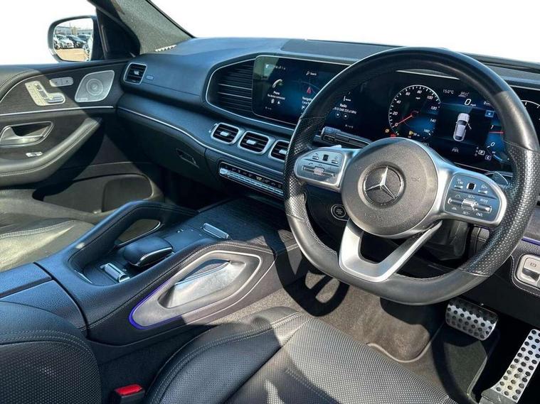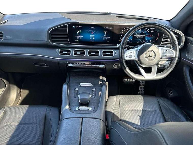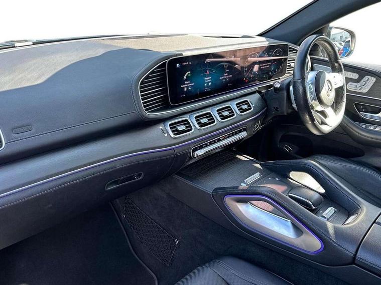 Attention assist, Cockpit display 12.3" widescreen digital instrument cluster, Crosswind Assist, Cruise control, Direct steer speed sensitive steering, DYNAMIC SELECT with a choice of driving modes (ECO, Comfort, Sport and Individual), Easy-pack tailgate - Powered opening/closing automatically, ECO start/stop function, Head up Display, Lane keeping assistant (LKA), Mercedes me connect including emergency call system, accident recovery, breakdown and maintenance management, Outside temperature display, rear seatbelt status indicator, Parking pilot with 360 degree camera, Reversing camera, Service indicator (ASSYST), Smartphone integration with Apple CarPlay and Android auto, Sports direct steer system with speed sensitive power assistance, Traffic Sign Assist, Traffic sign recognition including wrong way warning function and display of posted speed limits in the instrument cluster, 4MATIC permanent four wheel drive, 85 litre fuel tank, 9G TRONIC automatic transmission with steering column gear selector, DIRECT SELECT steering wheel gearshift paddles, Airmatic air suspension with adaptive damping system, Charging cable for household sock (mode 2) - 8m, 8A, Charging cable for wallbox and public charging stations (mode 3) - 8m, 16A, Diesel particulate filter (DPF), Bluetooth interface for hands free and audio streaming, DAB Digital radio, Hard disk navigation with MBUX multimedia system, Adaptive brake lights, Adaptive high beam assist plus, Aluminium look, illuminated running boards with rubber studs, AMG bodystyling front and rear bumpers, Body colour door mirrors, Body coloured bumpers, Electric panoramic sunroof with sunblind, Electric windows with one touch opening/closing and obstruction sensors, Exhaust system - twin pipe with two integrated chrome tailpipe trims, Front and rear underbody protection with chrome look finish, LED tail lamp, Magic vision control with adaptive windscreen wiper system, Multi beam LED headlights, Privacy glass - heat insulating dark tinted glass, Radiator grille with integrated star and single louvre in matt iridium silver with chrome trim, Rain sensing windscreen wipers, Rear wash/wipe, Top surround of side windows in polished aluminium, 2 cup holders in front and rear, 2 rear head restraints, 3 spoke AMG multifunction steering wheel with touch control buttons, trimmed in black nappa leather with flattened bottom section, 4 way adjustable front head restraints and 2 way rear head restraints, 40:20:40 split folding rear seats, AMG floor mats with AMG lettering, Artico man-made leather upper dash trim, Automatic child seat recognition sensor, Climatised front seats, Courtesy lights in rear grab handles with reading light functionality, Driver and front passenger cup holders temperature controller, Electric adjust front headrests, Electrically adjustable front seats with memory function, Electrically height and reach adjustable steering column with memory, Folding rear armrest, Front centre armrest with stowage compartment and illuminated grab handles, Glove compartment - lockable, air conditioned and illuminated, Heated front seats, Illuminated stainless steel door sill panels with Mercedes-Benz lettering, Interior lighting - 64 colour Ambient lighting, Luggage compartment cover, Nappa leather upholstery, Sports pedals with stainless steel surfaces and rubber studs, Sunvisors with illuminated vanity mirrors, Thermotronic automatic 4 zone climate control, Touchpad, Two (type C) USB ports in centre console, Acoustic comfort pack - GLE Coupe, Driving assistance pack - GLE Coupe, Interior chrome package - GLE, KEYLESS-GO Comfort package - GLE Coupe, Memory package - GLE Coupe, Mirror package - GLE Coupe, Parking package - GLE Coupe, 3x3 point rear seatbelts, Active bonnet, Active braking assist, Airbags - windowbags, Anti-lock braking system (ABS), Child proof door locks, Downhill speed regulation (DSR) with switch and variable speed control, Driver/front passenger airbag, Drivers knee airbag, Electronic four wheel traction control, Electronic parking brake, Electronic stability programme with acceleration skid control, First aid kit, warning triangle and high visibility jacket, Front side airbags, Hill hold function, Hill start assist, ISOFIX child seat attachment points two outer rear seats, Perforated front brake discs and brake calipers with Mercedes-Benz lettering, Pre-Safe anticipatory safety system, Tyre pressure monitoring system, Alarm system/interior protection/immobiliser, Chrome surround in electric key, Remote central locking, Urban guard vehicle protection, Dashboard and door, anthracite open pore oak wood trim, 22" AMG 5 twin spoke tremolite grey with high sheen finish light alloy wheels, Summer tyres with noise reducing absorber, TIREFIT with tyre inflation compressor,
