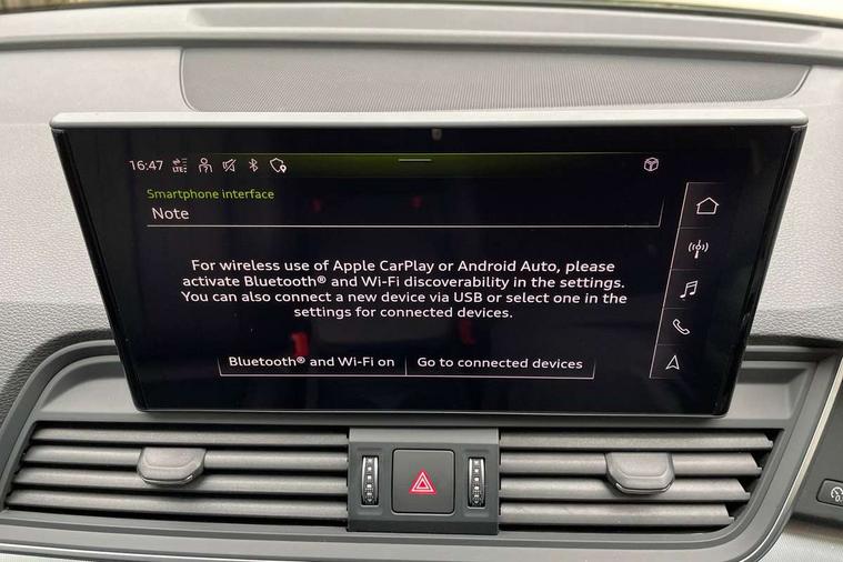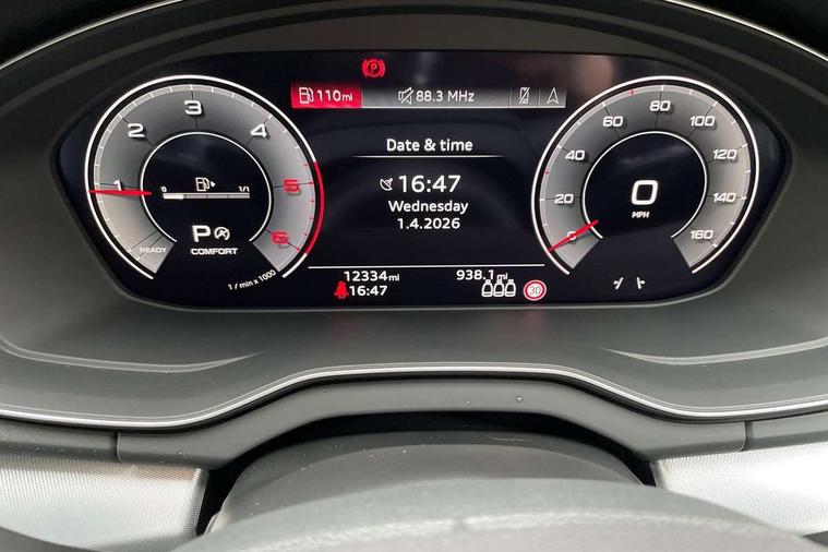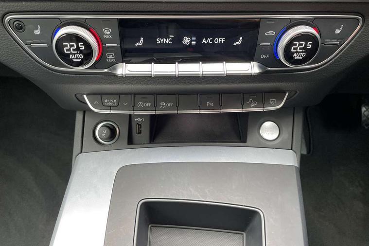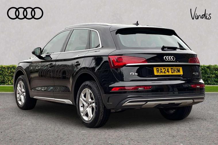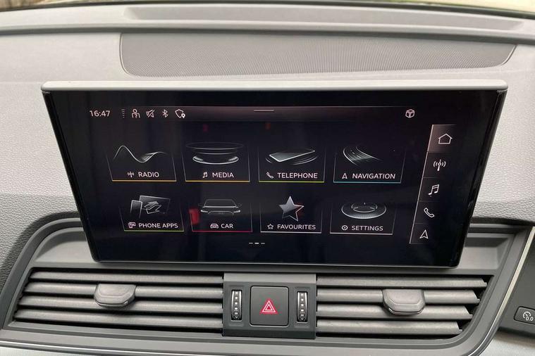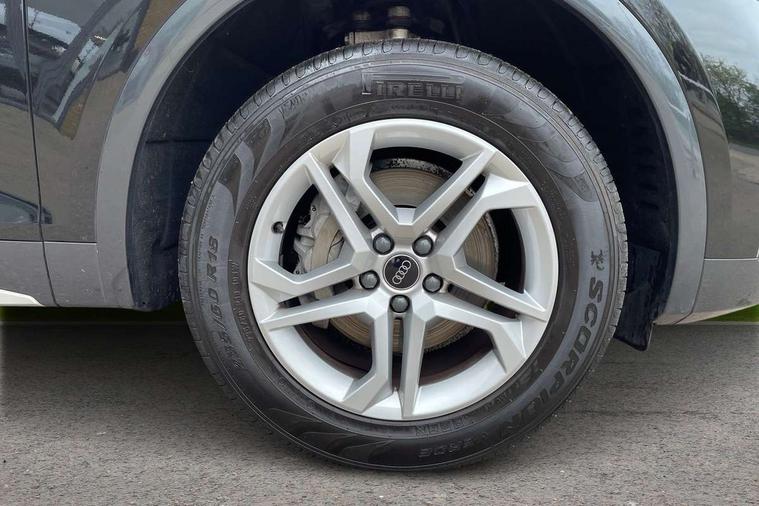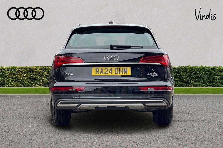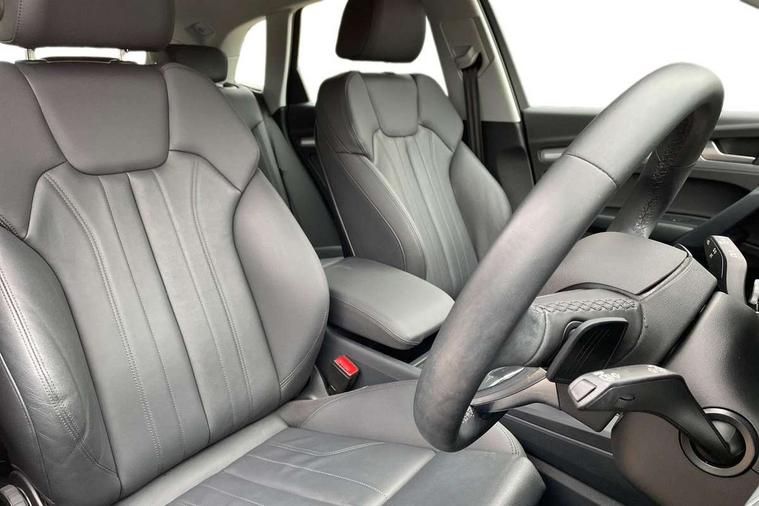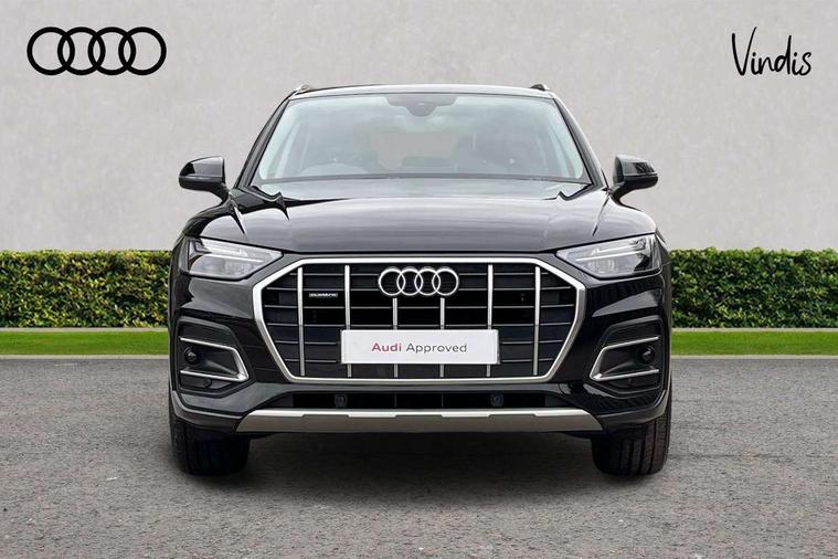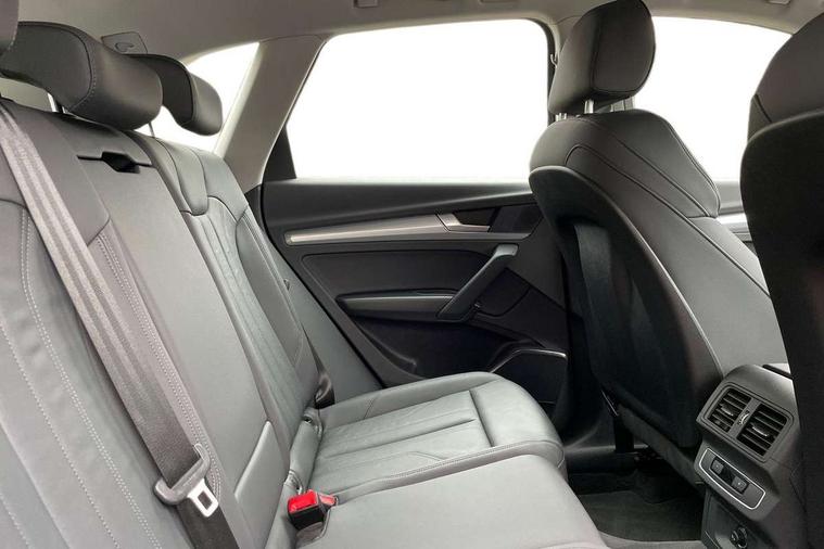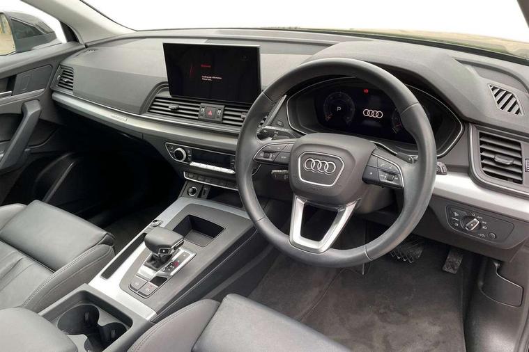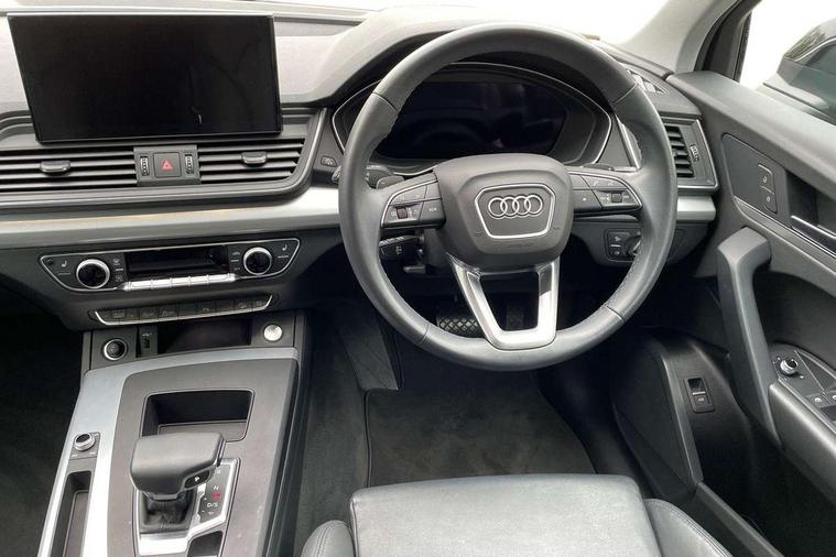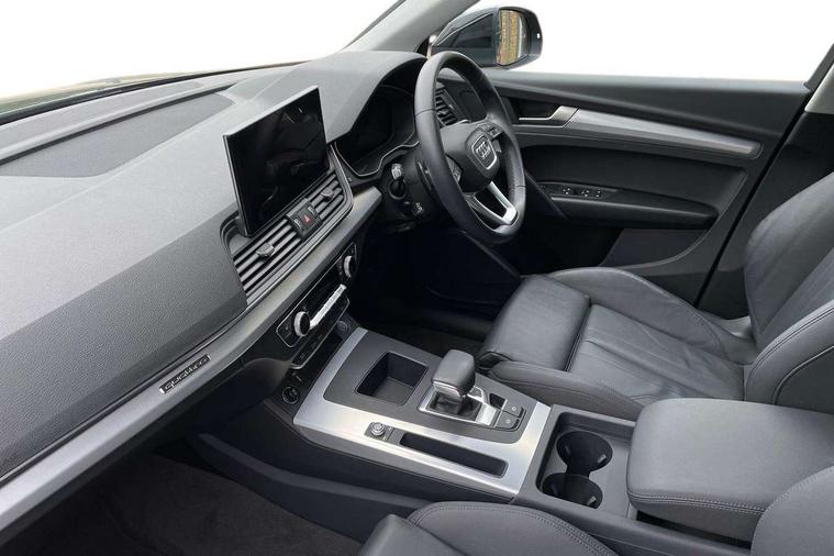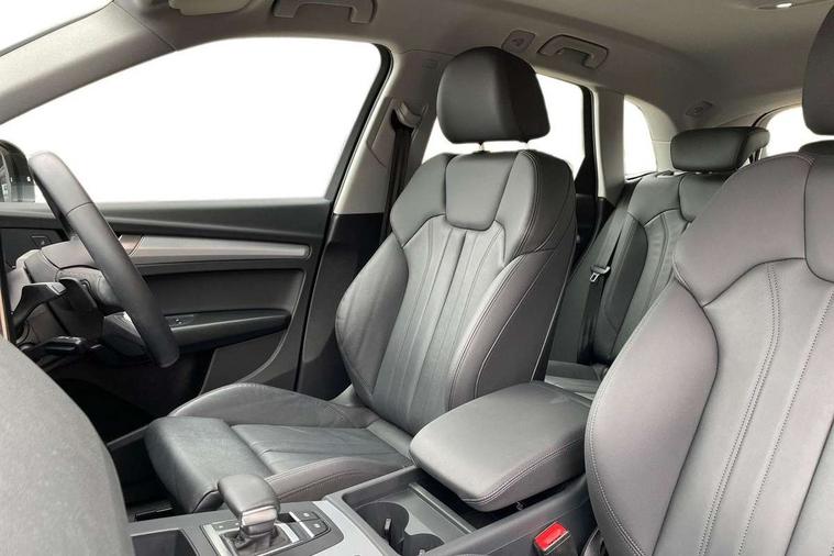 Acoustic front and rear parking sensor, Audi connect safety and service (e-call), Audi drive select, Audi virtual cockpit plus with 12.3" screen and three different layout designs, Audi wireless smartphone interface, Automatic start-stop system with coasting functionality and efficiency programme, Bluetooth interface, Camera based traffic sign recognition, Electro - mechanical power assisted steering, Lane departure warning, MMI navigation plus with 10.1" touch screen, Power tailgate, Reversing camera, Service interval indicator, Voice control system with Audi hotword activation "Hey Audi", Diesel particulate filter, Dynamic suspension, Quattro on demand, 8 loudspeakers, DAB Digital radio, Acoustic windscreen, Air inlets in matt anthracite black with blades in matt aluminium silver, Aluminium roof rails, Auto dimming door mirrors, Auto dimming frameless rear view mirror, Automatic headlight adjustment, Automatic headlights and windscreen wipers, Body colour bumpers, Body colour door mirrors, Chrome plated exhaust trims, Daytime running lights, Door sills in Selenite silver, Electric adjustable/heated/folding door mirrors, Front and rear electric windows, LED 3rd brake light, LED headlights and LED tail lights, Loading edge protection in stainless steel, Lower bumpers painted in contrast Manhattan grey, Matt selenite silver underbody protection, Matt twilight grey radiator grille with chrome vertical struts, Rear chrome trim strip below lights, Rear diffuser strip in selenite silver, Rear side wing doors, Rear spoiler, Rear wiper, Roof bars, 2 x USB charging port with aux input socket, 3 rear headrests, 3 spoke multifunction leather steering wheel with shift paddles, Comfort front centre armrest, Deluxe 3 zone electronic climate control, Door sills trims with aluminium inlays, Front head restraints, Front sport seats, Front/rear floor mats, Heated front seats, Height/reach adjustable steering column, Luggage compartment cover, Manual seat adjustment with 4-way electric lumbar support, Single front passenger seat, Split folding 3 seater rear seat bench in 3 parts (40/20/40), Sunvisors with vanity mirrors, Twin leather upholstery, High gloss pack - Q5, LED interior light pack - Q5, 3 point seatbelts on all seats, 6 airbags - Driver, front passenger, curtain and side airbags, Attention and drowsiness assist, Electrically operated child locks on rear doors, Electromechanical parking brake, Electronic stabilisation control including ABS, ASR and EDL, First aid kit with warning triangle and vests, Front passenger airbag deactivation, Hill descent control, Hill hold assist, ISOFIX child seat mounting for front passenger seat and ISOFIX child seat mounting with Top Tether for outer rear seats, Multi collision brake assist, Pop-up bonnet for pedestrian protection, Pre sense city, Seatbelt monitoring, Tyre pressure warning, Anti theft alarm, Anti-theft wheel bolts, Remote central locking, Remote control key with SAFELOCK and keyless go, Air vents inserts and centre console in matte black, Aluminium rhombus inlay, Tool kit, Tyre repair kit,