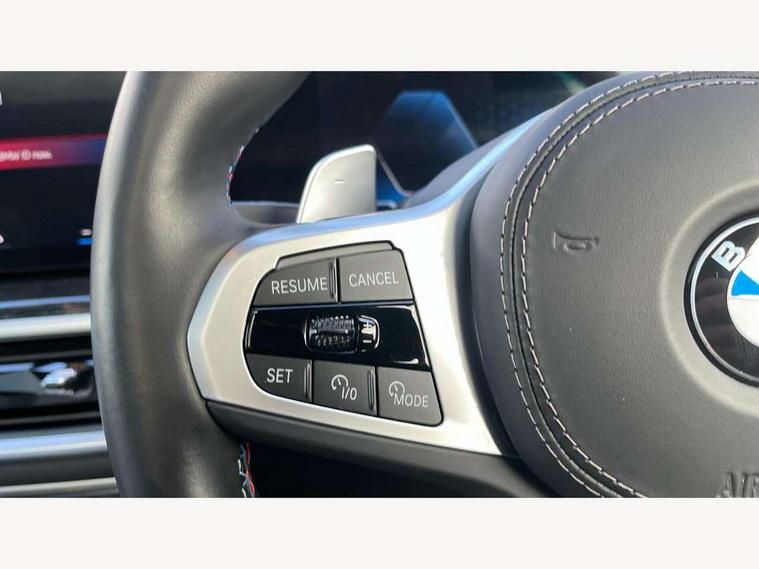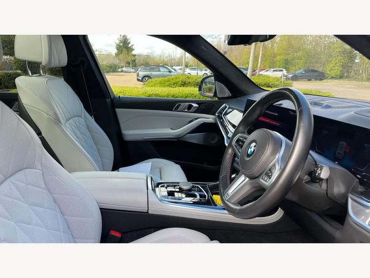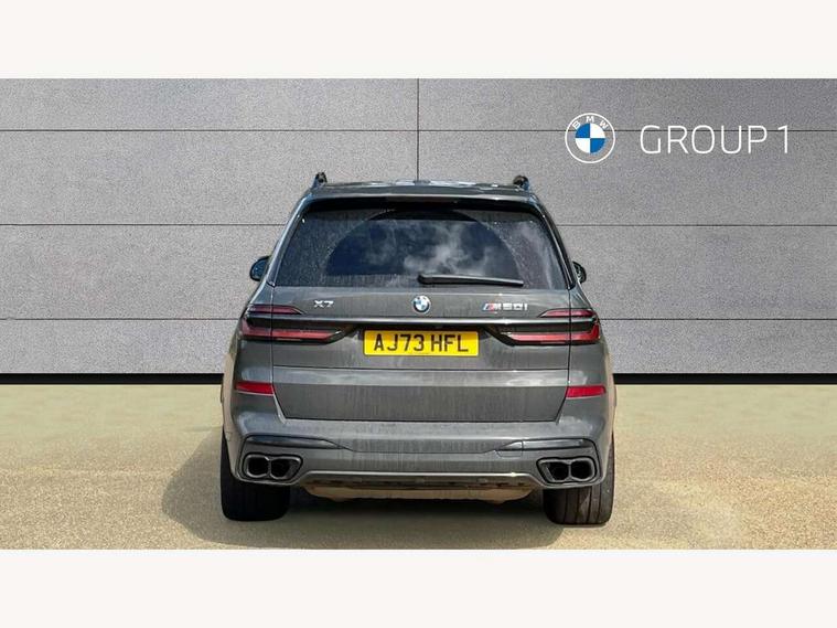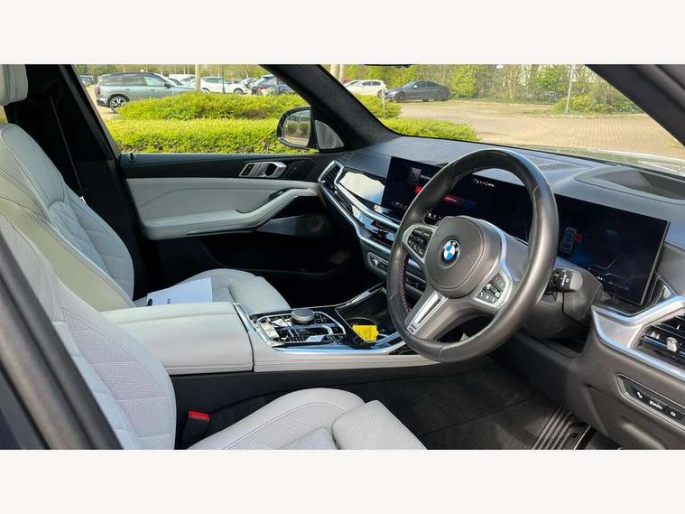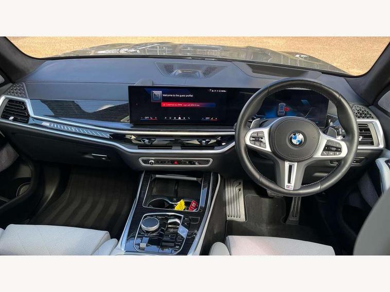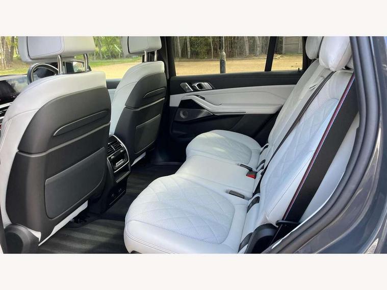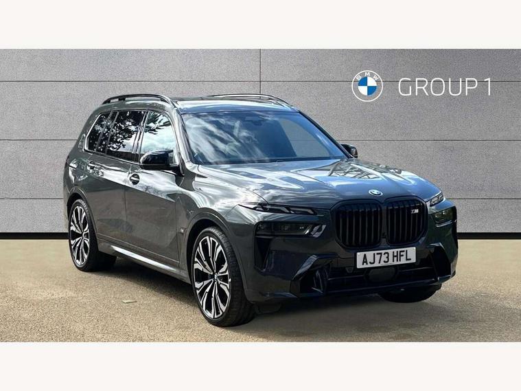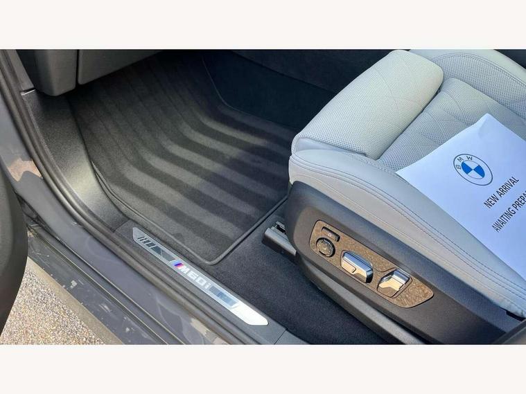 Attentiveness assist, Automatic start/stop function, Automatic tailgate operation, BMW ConnectedDrive online services, BMW Drive recorder, BMW gesture control, BMW Teleservices, Brake pad wear indicator in front and rear, Condition based service, Electric power steering with Servotronic steering optimised at all speed ranges, Integral active steering, Integrated owner's handbook, Live Cockpit Professional with head up display including 12.3" instrument cluster and 14.9" central display, Parking assistant pro including reversing assistant, PDC, lateral parking aid, reversing assist camera, parking drive off monitoring, Speed limiter, 48V Mild hybrid technology, 8 speed automatic with steptronic transmission including automatic hold function and gearshift paddles on the steering wheel, Drive experience switch with comfort mode + ECO PRO + sport mode, Executive drive suspension, M Sport differential, Permanent all wheel drive, DAB radio, Personal eSim, Acoustic glazing, Adaptive air flap control bars in high gloss black, Air breather and door claddings in high gloss chrome, Aluminium Running Board, Body coloured wheel arches, Dynamic brake lights with LED technology, Electrically adjustable and heated aspheric folding side mirrors with auto dimming, electric fold in function, automatic parking function, Exterior and central air inlets in front bumper painted pearl chrome, Follow me home headlight function, Frameless interior mirror, Front and rear electric windows, Front ornamental grille struts in chrome high gloss, Heated windscreen washer nozzles, High beam assist, High gloss black shadow line roof rails, High gloss black shadowline trim in side/window frame, window recess cover, window guide, B and C pillar, mirror triangle, mirror base, mirror frame, Integrated turn indicators (door), Kidney grille iconic glow, LED daytime running lights, LED rear lights, LED third brake light in rear spoiler, One piece front ornamental grille frame in pearl gloss chrome, Rain sensor with automatic headlight activation and windscreen wiper control, Rear side wing doors, Side window graphic in satinated aluminium, Sump guard front and rear painted in silver, Sun protection glazing, Trailer stabilisation logic, 12V - Power sockets with 2x centre console and 1x luggage compartment, 2 seat bench in 3rd row, 3 seat bench in 2nd row, 40:20:40 split folding rear seat backrests, Additional storage compartments, BMW inscription in front and rear door entry sills with illuminated, Centre console includes storage compartment, Compartment in front of cupholder, Driver and front passenger sunvisors with illuminated vanity mirrors and ticket holder, Electrical steering column with adjustable height and length with activation and control on the steering column, Front and rear colour co-ordinated with all standard carpet colours, Front and rear door pockets, Front and rear side armrests integrated into door trim, Grab handles, Height adjustable front headrests, Height adjustable rear headrests, Illuminated front left and right inscription M60i, Lockable glove compartment, M leather steering wheel, Nano filter, Single front passenger seat, Soft close doors, Storage tray and compartment with lid in centre console, Wireless charging tray, Additional storage compartment pack - X7, Ambient light interior pack - X7, Connected Package Professional - X7, Interior lighting pack - X7, Luggage compartment pack - X7, M aerodynamics pack - X7, M sport package pro - X7, 3 point seatbelts on all seats, front pyrotechnic belt tensioners, stopper and belt force limiters, front and outer rear seats, Acoustic protection for pedestrians, Active protection, Airbag - Front driver and passenger, side airbags and Head airbags, Anti lock braking system (ABS) with cornering brake control, Automatic Stability Control (ASC), BMW emergency call, Child seat ISOFIX attachment rear outer seats in 2nd row and both seats in 3rd row includes top tether, Comfort cushion seats for outer seats in 2nd row, Crash sensor inclu activation of airbags, interior light, safety battery terminal clamp, hazard warn flasher, unlock doors, deactivation of fuel pump, DSC - Dynamic Stability Control, Dynamic Traction Control - DTC, Electromechanical parking brake with automatic drive away release and auto hold function, Front and rear brake discs with interior ventilation, Hill descent control, Integrated braking system, Manual child lock in rear doors, PC iBrake PostCrash approach control warning with light braking function, Tyre pressure monitoring system, Tyre pressure sensors, Variable torque distribution, Warning triangle and first aid kit, Alarm, Central locking including 2 vehicle keys with integrated emergency key, Comfort access system, Engine immobiliser, Locking wheel bolts, Galvanic embellisher for controls,