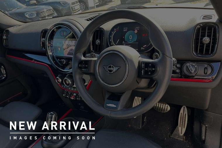 Active Guard incl speed limiting and lane departure functions with auto steering, and front collision warning with brake intervention, Automatic start/stop function with brake energy recuperation, Compatible mobile phone bluetooth with audio streaming, Cruise control with brake assist, Electro-mechanical speed dependant steering assistance, Instrument cluster, MINI Driving Modes - centre toggle switch to control driving setting (sport, mid and green), Mini E-call, On board computer, Rear parking distance control, 51 Litre fuel tank, Double Vanos system, Fully variable valve control, High precision injection, Performance Control, Sport automatic transmission with steering wheel paddles, FM tuner and DAB digital radio, 3rd brake light, Bonnet scoop, Chrome fuel filler cap, Day time driving lights, Dynamic brake lights, Electric windows, Heated rear window, Heated windscreen washer jets, John Cooper Works - aerodynamic kit (front and rear apron, spoiler), front and rear sport bumpers and part-painted side sills with door sill finishers, John Cooper Works Logo, LED fog lights, LED Headlights, Metal door sill strips with Cooper S imprint, Model logo, Model logo on Tailgate, Rain sensor with auto headlights, Rear fog lights, Rear side wing doors, Rear window wiper, Side scuttle panel with integrated indicator, Split rear doors, Sun/heat protection glass, White indicator lenses, 12V socket in centre console, 3 seat bench in 2nd row, 360L luggage compartment capacity, 4 lashing eyes in luggage compartment, 40:20:40 split folding rear seats, Anthracite headlining with grab handles and clothes hooks, Chrome interior highlights, Colour line - Carbon black, Cupholders, English handbook, Floor mats, Front headrests, Glove compartment, Height and length steering column adjustment, Interior lighting with 12 basic colours selectable via toggle switch in roof, Isofix rear child seat preparation, LED reading lights, vanity mirror lights, front foot well light and spotlight on front seats, Manual air conditioning, Mini John Cooper Works leather gearshift lever and handbrake gaiters, Multifunction steering wheel, Nappa leather steering wheel with MINI Yours logo, Rear headrests, Single front passenger seat, Stainless steel pedals and foot rest, Storage compartments in doors, Sunvisors with vanity mirrors, Excitement pack - Countryman, Navigation pack - Countryman, Piano black exterior pack - Countryman Cooper S/SD/SE/Boardwalk, 2 tone horn, 3 point seatbelts on all seats, 6 Airbags - front, side, head and seat belt tensioners, Anti-lock braking system (ABS), DSC - Dynamic Stability Control, Electronic handbrake, Front and rear disc brakes, Hill start assist, Manual rear child locks, Tyre pressure monitoring system, Alarm system with tilt sensor, monitoring doors, bonnet interior and tailgate, Auto drive away locking, Deadlocking function, Electronic vehicle immobiliser, Locking wheel bolts, Start/stop toggle with keyless go, Piano black JCW interior trim, Tool kit,