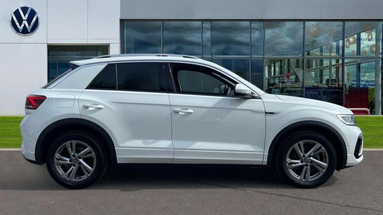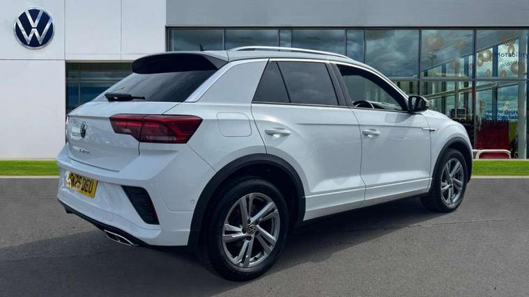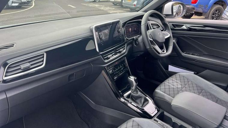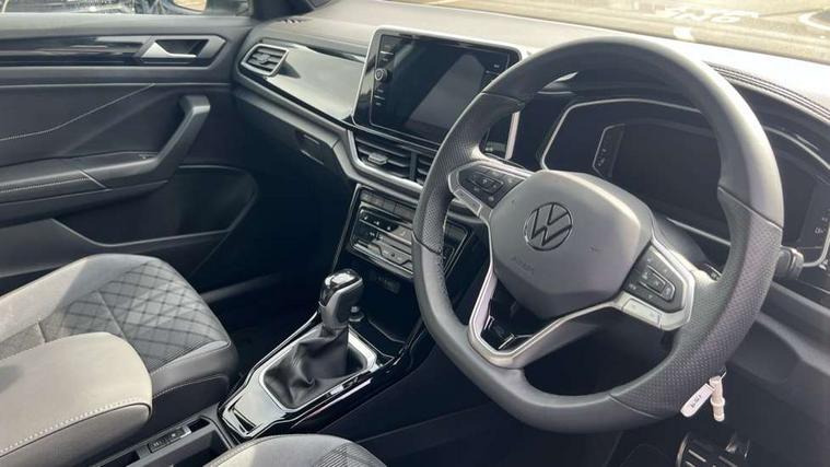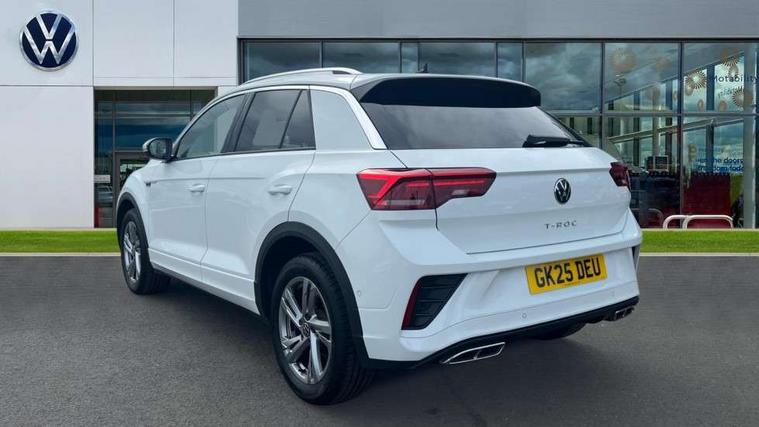 10.25" Digital cockpit pro, Advanced driver attention and drowsiness monitor, Emergency call service, Lane keeping system Lane Assist, Mobile phone interface, Modified key software - reduce switch off time for key status change to Long no motion, Online services, Park assist including front and rear parking sensors, Service interval indicator, Tailgate/trunk lid release from outside, Think blue trainer driver tips and journey analysis, Warning sound and light for front seatbelts unfastened, Wireless app connect, Battery regeneration during braking, Start/stop function with battery regeneration, DAB Digital radio, Diversity antenna for FM reception, Front and rear 6 speakers, Music playback - MP3, WMA and AAC files, Premium USB cable in choice of either Apple or Android smartphone compatibility, SD card slot, Simultaneous pairing of 2 compatible mobile devices, Title and cover art display, We Connect and We Connect Plus functionality, Auto dimming interior rear view mirror, Automatic hazard lights activation under emergency braking, Automatic headlight control with LED separate daytime running lights with coming/leaving home function, Body coloured exterior mirror housings and door handles, Electrically adjustable and heated door mirrors, Extended roof spoiler, Exterior mirrors aspherical on driver side, convex on front passenger side, External USB type C socket and charging sockets, Front windscreen wiper with intermittent wipe and 4 position delay, Heated rear window, LED 3rd brake light, LED rear combination lamps, LED rear number plate lights, Power windows with comfort operation and circuit breaker, Privacy glass for rear side windows and rear window, R-Line design body coloured bumpers, Rain sensor, Rear exhaust tailpipe, Rear fog light on one side and reversing lights on both sides, Rear side wing doors, Rear wash/wipe with intermittent wipe setting, Remote electrically foldable door mirrors, puddle lights and reverse activated passenger's door mirror, 12V power socket in centre console, 3 rear head restraints, 3 seat bench in 2nd row, 4 load lashing points in luggage compartment, Air care climatronic air conditoning system with active combination filter and 2-zone temperature control, Black roof lining, Chrome plated decorative trims, Chrome plated radiator grille inserts, air vent surrounds and light switch surrounds, Door and side trim panel with leatherette insert, Front + rear carpet mats, Front centre armrest, Front cupholders x 2, Front footwell illumination, Front reading light, Front scuff plates with R Line logo, Front seat back storage pockets, Glove compartment door with light, Instrument lighting, white adjustable panel illumination, Interior ambient lighting and surround lighting, Interior light delay, Isofix child seat preparation, Leather gearshift handle, Load-through provision with cup holder when folded down ('Unsplit rear seat bench, split folding backrest, with centre armrest), Luggage compartment lighting, Single front passenger seat, Stainless steel pedals, Storage compartment in left and right luggage area, Storage compartment in rear doors, Storage compartments in driver and front passenger doors, Sunvisors with illuminated vanity mirrors, Variable boot floor, height adjustable and removable, Driver assistance pack without proactive passenger protection - T-Roc, 3 point height adj front seatbelts + pretensioners, 3 point seatbelts in outer rear with ECE label, ABS, Child locks on rear doors, City emergency braking and pedestrian monitoring, Driver and front passenger airbag with front passenger airbag deactivation, Driver and front passenger safety-optimised head restraints, Drivers seatbelt reminder, Electronic parking brake, Electronic Stability Control (ESC) inc EDL (Electronic Differential Lock) and ASR (Traction Control), Front and rear passengers curtain airbag system including front side airbags, Hill start assist, Predictive pedestrian protection, Rear disc brakes, Two tone horn, Tyre pressure loss indicator, Volkswagen roadside assistance, Piano black decorative inserts in dashboard and front door trim panels, Trims for alloy wheels,