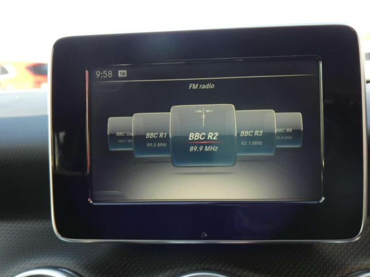 7" colour screen, Attention assist, Cruise control + speed limiter, Easy-pack tailgate - Powered opening/closing automatically, Low fuel level warning light, Multi function trip computer, Outside temperature gauge, Reversing camera, Service indicator (ASSYST), Smartphone integration with Apple CarPlay, Speed sensitive power steering, Comfort suspension, 6 speakers, Bluetooth connectivity including audio streaming, Media interface, Mercedes Audio 20 radio/single CD, SD card slot, USB port, Adaptive brake lights, Aluminium roof rails in high gloss black, Aspherically curved door mirror glass, Automatic headlamp activation, Body colour bumpers, Body colour door handles, Body colour door mirrors, Body colour side skirt, Chrome beltline trim, Electric front windows, Electric heated + adjustable door mirrors, Electric rear windows, Front fog lights, Heated rear window with timer, Heated windscreen wash system, High gloss black roof rails, LED indicators in door mirrors, LED tail lights, Radiator grille with 2 louvres in Silver with chrome trim, Rear privacy glass, Rear windscreen wiper with auto activation when reversing, Roof spoiler, 1/3 to 2/3 split folding rear seats, 12V power socket in centre console, 12V socket in luggage compartment, 3 spoke multifunction nappa leather steering wheel, Air conditioning, Artico man-made leather upholstery, Auto Mercedes-Benz child seat recognition sensor, Centre console storage, Centre console with cupholders, Front and rear headrests, Front centre armrest with storage compartment, Grey headlining, Height adjustable front seats, Height/reach adjustable steering column, Illuminated glovebox, Isofix rear child seat preparation, Load securing rings in luggage compartment, Luggage compartment cover, Luggage compartment lighting, Storage compartment in luggage compartment, 3 rear 3 point seatbelts, ABS with Brake Assist, Active bonnet, Adaptive brake system, Black seat belts, Child proof door locks, Crash responsive emergency lighting, Drivers knee airbag, Dual stage driver/passenger airbags, Electronic parking brake, ESP with ASR, Front and rear seatbelt reminder, Front passenger seat occupancy sensor, Front side airbags, Hill start assist, Tyre pressure monitoring system, Warning triangle and first aid kit, Window airbags, Alarm system/interior protection/immobiliser, Chrome surround in electric key, Keyless start, Remote central locking, Chrome air vent surrounds, Matrix effect trim, 17" 5 twin spoke alloy wheels in vanadium silver, Tirefit sealant with electric air pump,