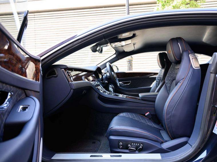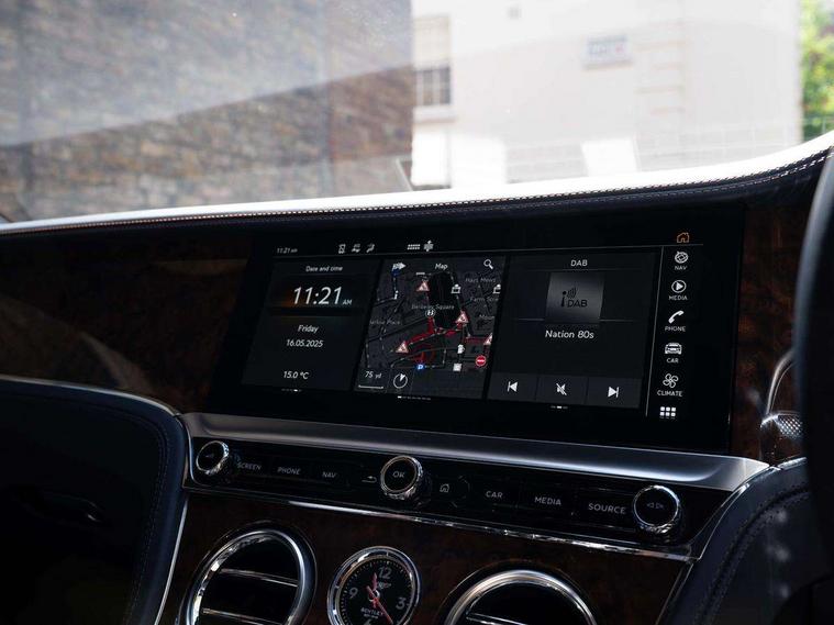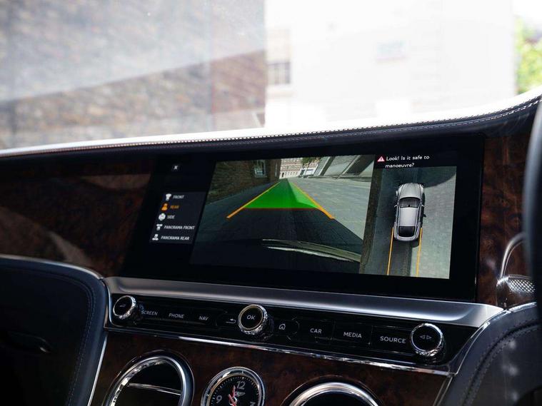 Apple car play, Blind spot warning, Bluetooth and Wi-Fi audio streaming, Brake pad wear indicator warning light, Collision prevention assist, Front/rear park distance control, Infotainment system with 12.3 high resolution touch screen retina disp + proximity sensors + advance music interface, single DVD/CD, 2 SD card slots, Navigation system, Park assist system, PAS, Power latching to all doors for easy entry, Reversing camera, Trip computer, 3 Chamber air suspension with continuous damping control, Battery charger, Dynamic ride height control + ground clearance function, 60GB hard drive, Acoustic and heat insulating front windscreen, Acoustic glass, Adaptive brake lights, Auto dimming rear view mirror, Black and Chrome bonnet and boot Bentley wing badges, Bright boot finisher, Bright wing vent with 12 in the black ribbed matrix, Deployable rear boot spoiler, Electrically adjustable door mirrors with heating, power fold, memory and dip on reverse functions, Full LED Matrix headlamps with high-beam assist, Full LED tail lamps, Heated rear windscreen, Lower front bumper grilles in black, Polished bright ware to side windows, Rain sensing windscreen wipers, Treadplates inner with "Handbuilt in Crewe, England" inserts, Twin oval exhaust finishers, 12v power sockets 2 in cabin and 1 in boot, 2 cupholders in front centre console, Bentley hide upholstery, Black seat belt buckles, Boot carpet in Beluga, Boot lid down lighters, Deep Pile Carpets to match upholstery, Electric tilt and reach adjustment steering column with memory and easy entry functions, Four occupant seating positions, Leather trimmed gearshift lever, Lockable cooled glovebox, Metal bulls eye vents with organ stop, Multi-zone automatic climate control - two zone, Rear headrests, Seats with straight fluted style hide cover, Single front armrest with fore/aft adjust and stowage, Ski hatch, Steering wheel gearshift paddles, Stowage to front doors, centre console and under centre armrest, Sunvisors with illuminated vanity mirrors, Two rear seats with centre stowage and cup holders including 12v socket and 2 USB charging points, Driver and passenger airbags, Electronic parking brake with drive away assist, Electronic stability programme with traction control, Anti lock braking System , Electronic brake force distribution, HBA + drag torque control, Electronic tyre pressure monitoring, Exit warning, Front vented 420x40mm disc brakes with Bentley branded black brake callipers, Multicollision braking system, Pre crash system, Pre sense braking system, Rear vented 380x30mm disc brakes with Bentley branded black brake callipers, Side airbags, Torque vectoring brake, Alarm, Bentley GPS advanced tracking system, Immobiliser, Keyless entry and start, 21" Summer tyres, Tyre inflation kit,