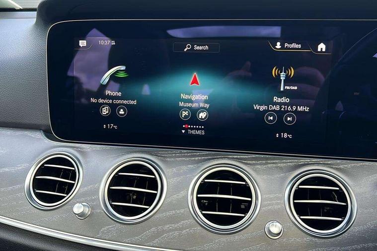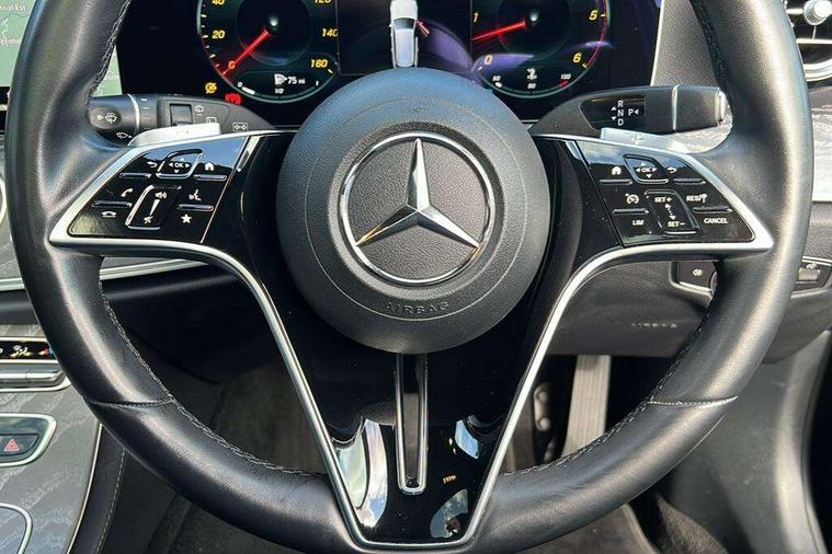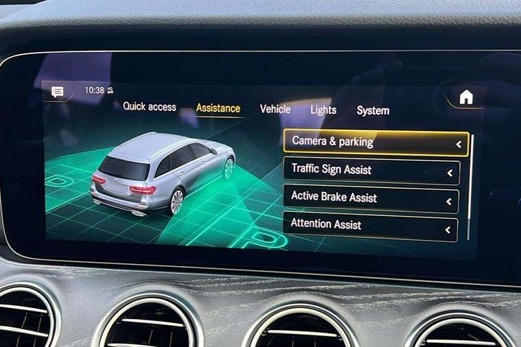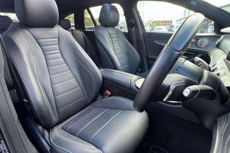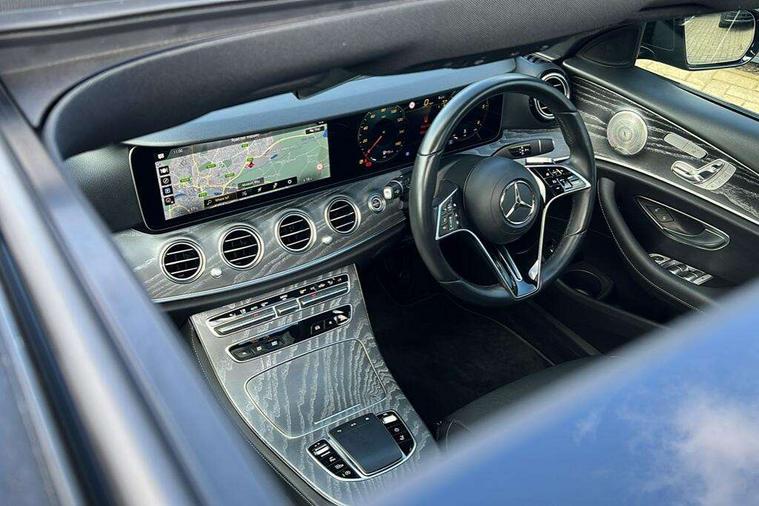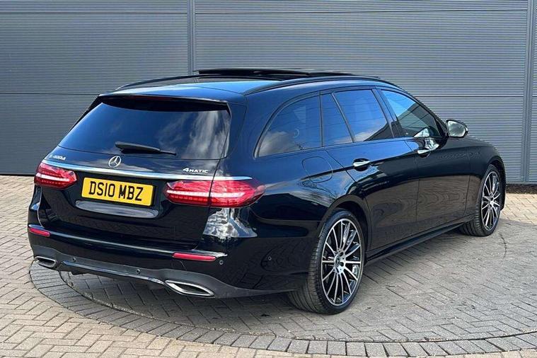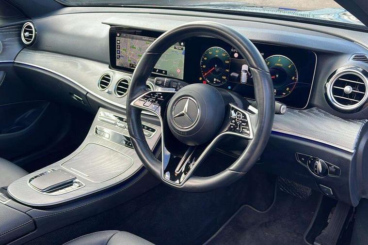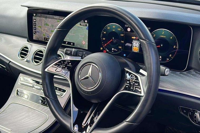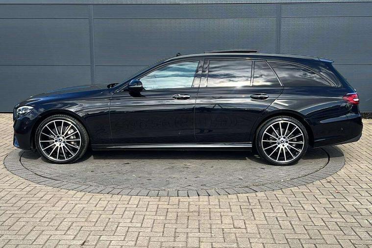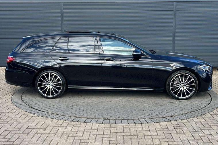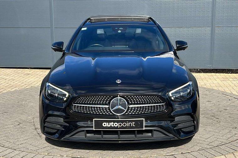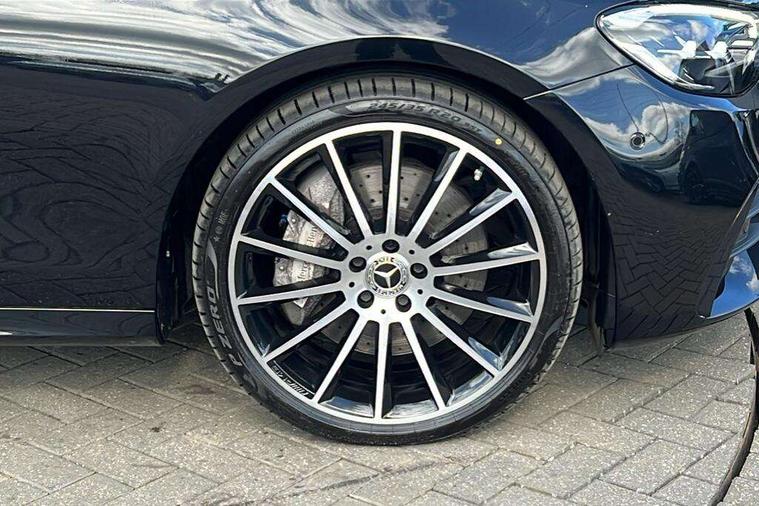 Attention assist, Brake wear warning display, Cockpit display 10.25" widescreen digital instrument cluster, Direct steer speed sensitive steering, DYNAMIC SELECT with a choice of driving modes (ECO, Comfort, Sport, Sport+ and Individual), Easy-pack tailgate - Powered opening/closing automatically, ECO start/stop function, Emergency call service, High resolution 10.25" multimedia colour display, MBUX voice control activated by keywords "Hey Mercedes", Mercedes connect me, Outside temperature display, Remote boot release, Service indicator (ASSYST), Smartphone integration via Android Auto/Apple CarPlay, Media Interface, USB and Bluetooth interface, Status display for rear seat belts in instrument cluster, Touchpad without controller, Traffic sign assist, Trip computer in multifunction display showing current fuel consumption, Wireless charging, 25 litre AdBlue tank, 66 litre fuel tank, 9G TRONIC 9 speed automatic transmission, Agility control sports suspension with selective damping system and lowered by 15mm, Diesel particulate filter, Incorrect fuelling protection, Rear air suspension with level control, 2 USB ports in centre console, 2 USB ports in the rear, Burmester surround sound system with 13 speakers and a 9 channel amplifier with total output of 590 watts, MBUX multimedia system with DAB digital radio and touchpad including satellite navigation, 3rd brake light, Adaptive brake lights, Aerial integrated in rear window, AMG bodystyling front and rear aprons in polished aluminium, Chrome pins diamond radiator grille, surround in high gloss black, single louvre in chrome with insert in high gloss black and integral star, Chrome roof rails, Electric windows with one touch opening/closing and obstruction sensors, Electrically adjustable and heated door mirrors, Front apron in high gloss black, High gloss black exterior mirror housing, High gloss black rear bumper with chrome trim, Illuminated front door sill panels with Mercedes-Benz lettering, LED High Performance headlamps including integral LED daytime running lamps and adaptive highbeam assist, LED rear lights, Panoramic electric glass sunroof, Privacy glass Includes rear side windows and rear windscreen, Rain sensor with automatic headlight activation, Rear side wing doors, Rear wiper, Tail lights, Top surround of side windows in polished aluminium, Visible twin pipe exhaust system integrated into bumper, Waistline trim strip in high gloss black, 3 seat bench in 2nd row, 3 spoke multifunction flat bottom AMG steering wheel with chrome inserts and touch control buttons, trimmed in black nappa leather, 40:20:40 split folding rear bench seat, Artico man-made leather upper dashboard and beltlines with contrast stitching, Automatic child seat recognition sensor, Black door pins, Black roof lining, Central stowage compartment with 12 V socket in centre console, USB socket for use with Android Auto and Apple CarPlay, Courtesy lights in rear grab handles with reading light functionality, Floor mats with AMG lettering, Four way partially front electric seat adjustment, Front centre armrest with stowage compartment, Glasses compartment in overhead control panel, Glove compartment - lockable, air conditioned and illuminated, Head restraints for driver and front passenger (four-way adjustability) and in rear (two-way), Heated front seats, Interior lighting - 64 colour Ambient lighting, Leather upholstery, Seat occupancy sensor for front passenger seat, Single front passenger seat, Steering column electrically adjustable for height and reach, Steering wheel multifunction with gearshift paddles, Steering wheel touch control buttons for audio and onboard settings, Sunvisors with illuminated vanity mirrors, THERMOTRONIC automatic climate control system with 3 climate zones, Mirror pack - E Class, Parking package including 360 degree camera - E Class, Seat comfort pack - E Class, Stowage pack - E Class Estate, 3x3 point rear seatbelts, Active bonnet pedestrian safety measure which detects an impact and raises bonnet, Adaptive brake system with HOLD function and brake drying in the wet, Airbags - sidebag for driver and front passenger with combined thorax/pelvis bag, Anti-lock braking system (ABS), Childproof locks manually operated for rear doors and electrically operated for rear power windows, Driver and adaptive front passenger airbags, Drivers knee airbag, Electronic parking brake, Electronic Stability Programme, Hill start assist, ISOFIX child seat attachment points two outer rear seats, Perforated brake discs with Mercedes Benz lettering, Pre-Safe anticipatory safety system, Tyre pressure monitoring system, Warning triangle and first aid kit, Window airbags, Alarm system/interior protection/immobiliser, Central locking with interior switch, automatic locking and crash sensor with emergency opening function, Chrome surround in electric key, Keyless entry go starting function, Grey open pore ash wood trim and centre console in grey open pored ash wood, 20" AMG multi spoke light alloy wheels painted in high gloss black with high sheen finsih, Summer tyres, TIREFIT with tyre inflation compressor,