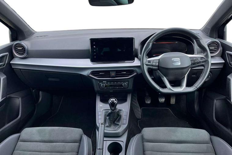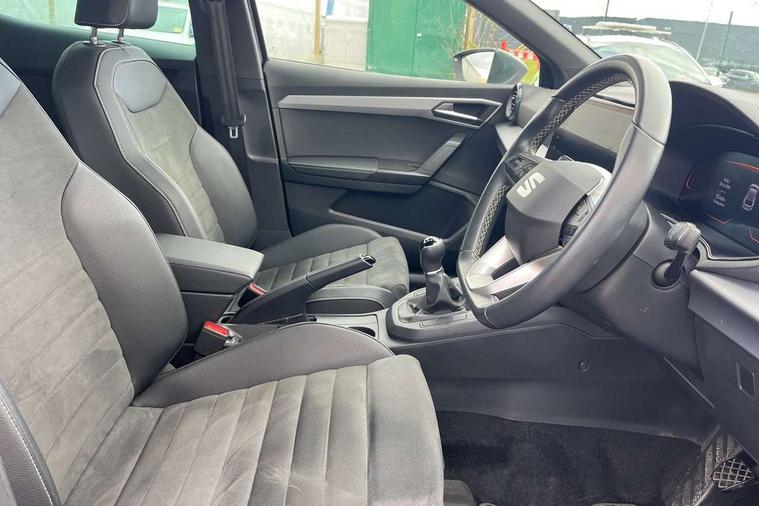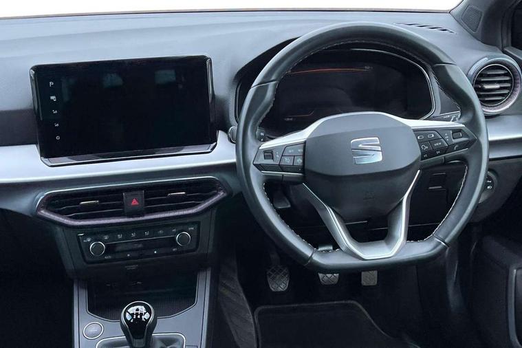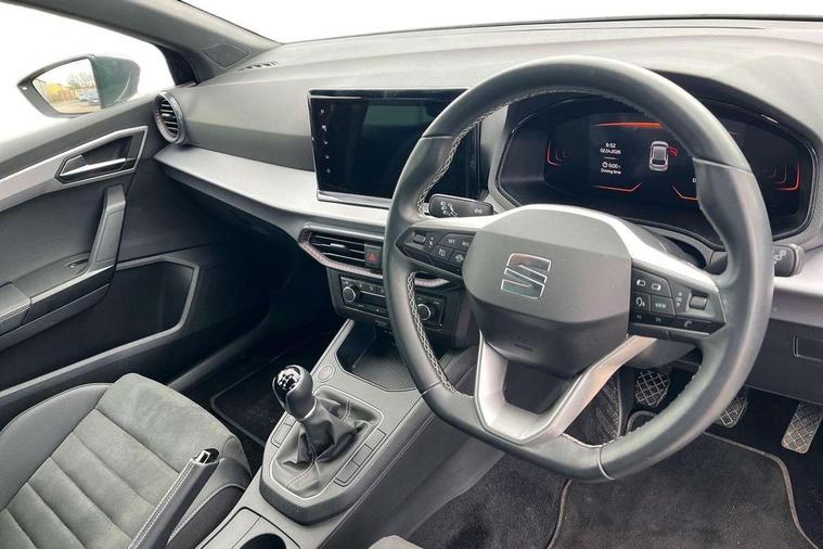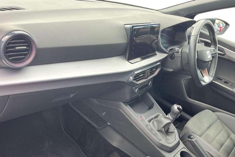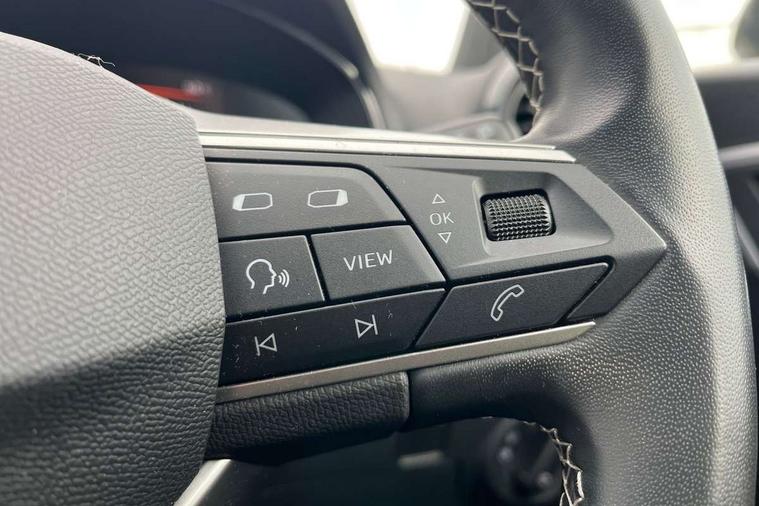 'Lights On' Reminder warning buzzer, 8" Digital cockpit, 9.2" touchscreen navigation system with type C USB socket, Voice control and DAB/AM/FM radio, Auto start and stop system, Bluetooth audio streaming with handsfree system, Digital clock, E-call, Full link smartphone integration with mirror link, wireless apple carplay, Google android auto + USB Type C cable for apple and android devices, Lane assist, Low fuel warning light, Outside temperature gauge, Power Steering, Rear parking sensor, Seat connect with safety, service, remote and online, SEAT logo boot release, Speed limiter, Trip computer, Comfort suspension, Auxiliary input socket, Radio/MP3 player, SD card slot, Steering wheel mounted controls, Anti theft roof antenna, Atom grey door mirrors, Auto dimming rear view mirror, Automatic rain sensing wipers, Body colour bumpers, Body colour door handles, Chrome window surround and upper grille surround, Dark tinted rear windows, Electric adjustable/heated/folding door mirrors, Electric front windows, Electric headlight adjustment, Electric rear windows, Front/rear fog lights, FULL LED automatic headlights with dynamic headlight range control, coming and leaving home, LED daytime running lights, LED tail lights, Rear side wing doors, Rear wiper, Third brake light, 3 seat bench in 2nd row, 60/40 split folding rear seat, Ambient interior lighting, Chrome detailing and black headlining, Comfort seats, Dual zone climate control with combination filter, Front centre armrest, Front courtesy lights, Front cupholders x 2, Front reading lights, Gear shift indicator, Glovebox, Height adjustable front and rear headrests (five), Height adjustable front seats, Height/reach adjust steering wheel, Illuminated air vent surrounds, Illuminated boot, Instrument lighting with brightness control, Isofix, Leather multifunction flat bottomed sports steering wheel, Microsuede cloth upholstery, Passenger sunvisor, Single front passenger seat, Storage pockets on back of front seats, Sunvisors with mirror and driver side card holder, 3 point seatbelts on all 3 rear seats, ABS, Active front headrests, Child locks on rear doors, Electronic stability control, Energy recovery system, Front assist forward collision warning and autonomous emergency braking, Front driver and passenger side airbags with curtain airbag and front passenger airbag deactivation, Hill hold control, Multi-Collision braking, Seat belt reminder for front and rear seats, Tiredness recognition system, Tyre pressure monitoring system, Electronic engine immobiliser, KESSY Keyless entry and go, Locking wheel bolts, Perimeter alarm and interior monitoring with backup horn and tow away protection, Remote central locking + deadlocks, 17" Dynamic machined alloy wheels in Nuclear grey,