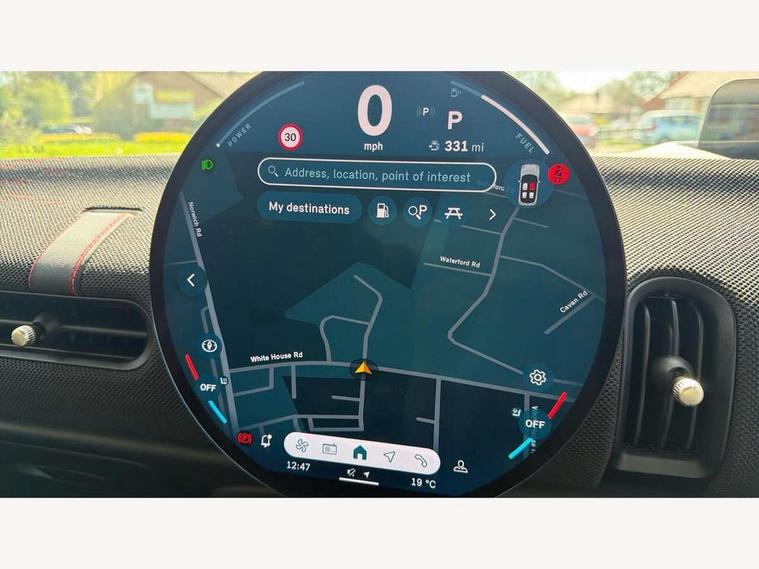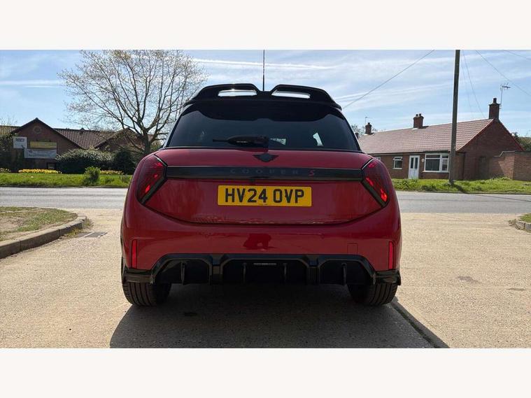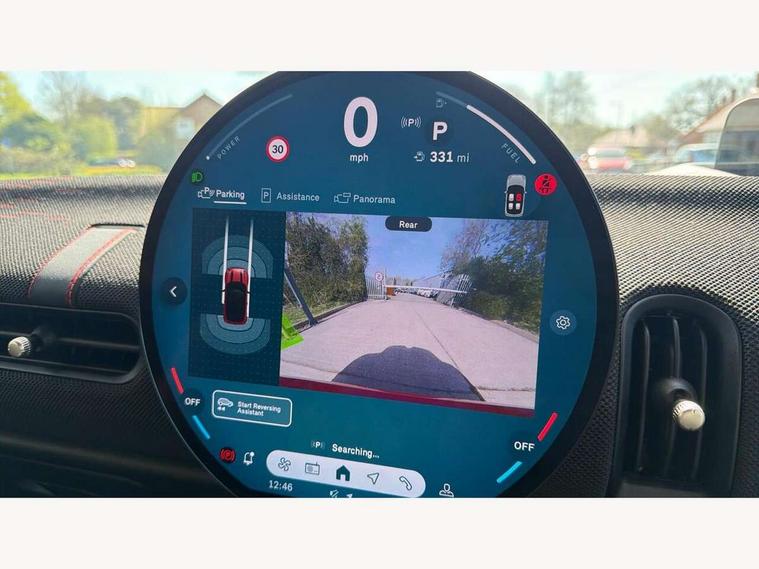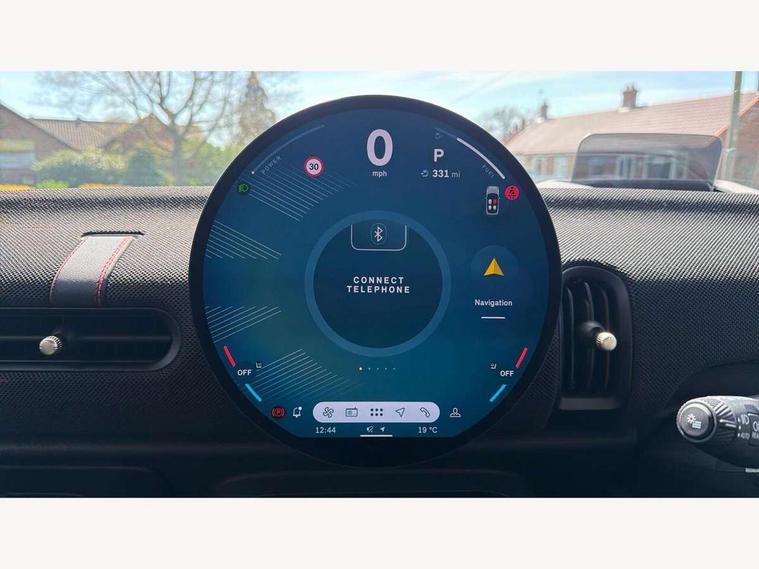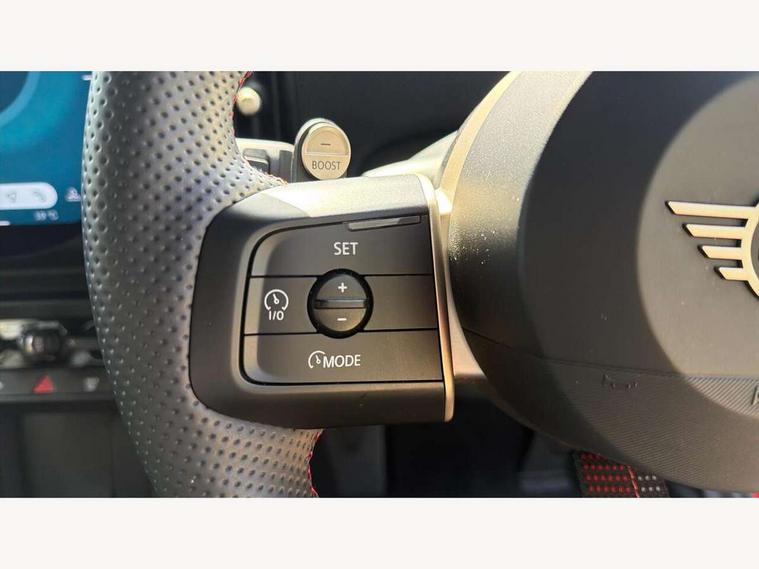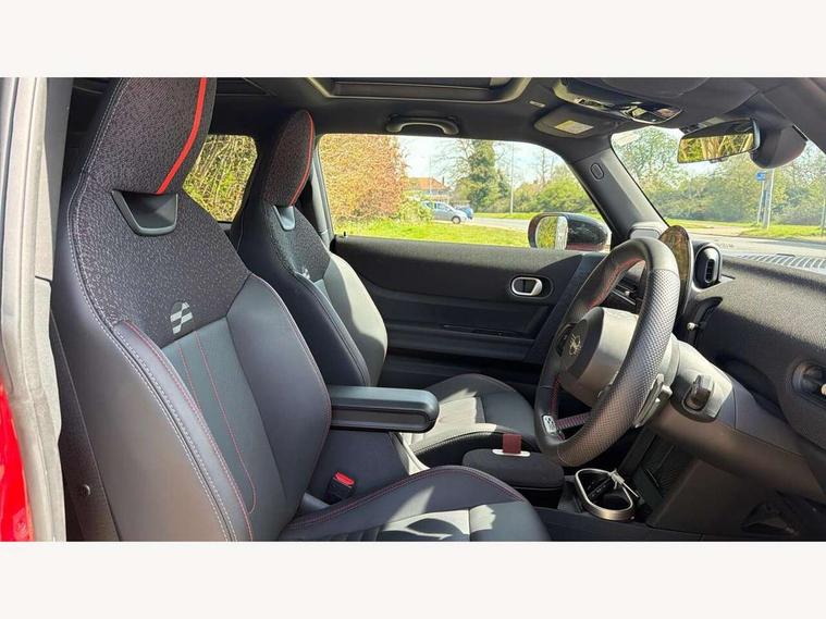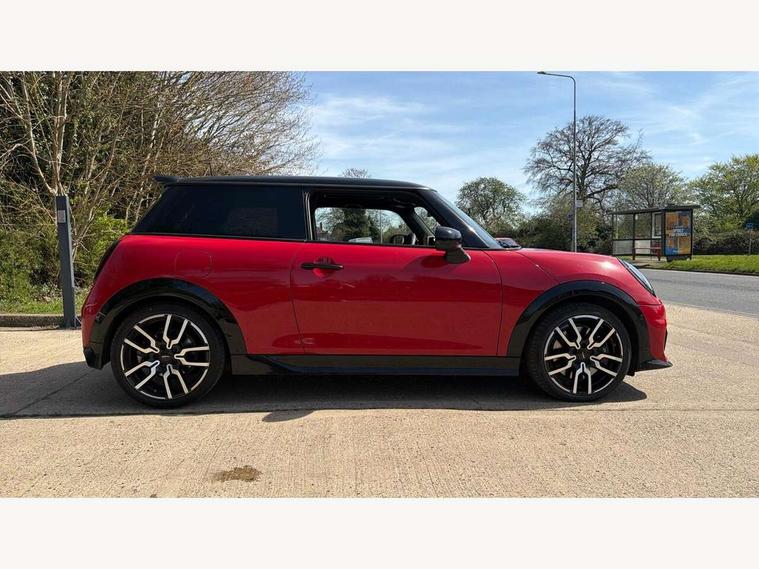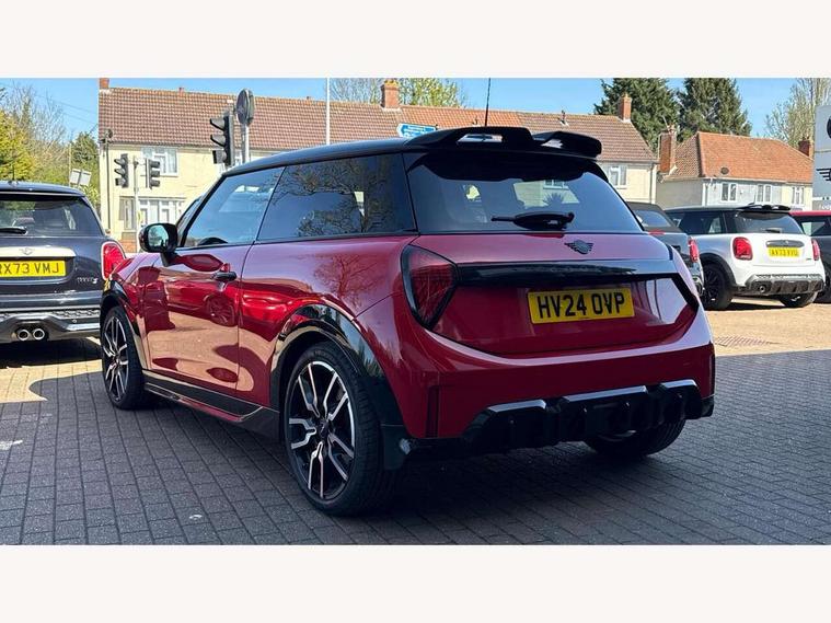 Central toggle bar, Circular OLED Screen, Compatible mobile phone bluetooth with audio streaming, Cruise control, Digital instrument cluster, Electro-mechanical speed dependant steering assistance, Emergency call service, MINI Experience Modes, Mini navigation system, On board computer, Service interval indicator, 7 speed steptronic sport transmission with double clutch, Adaptive suspension, DAB Digital radio, Personal eSim, Auto headlights, Electric adjustable heated door mirrors, Electric front windows, Front and rear apron, Heated rear window, Heated windscreen washer jets, High gloss black wheel arches, High gloss hexagonal patterned grill surround, JCW body kit, LED daytime running lights, LED indicator lights, LED rear lights, Rain sensor window wipers, Rear fog lights, Rear roof spoiler with airblades, Rear window wiper, Third brake light, 2 seat bench in second row, 2 zone automatic air conditioning, 60/40 rear seat bench, Ambient lighting, Cupholders, Dark headliner, Floor mats, Front and rear head restraints, Front compact armrest, Heated steering wheel, Height adjustable passenger seat, Lidded storage box in Black/Red knit, Luggage compartment lighting, Perforated Vescin steering wheel, Single front passenger seat, Steering wheel paddle shift, Sunvisors with vanity mirrors, Vescin/Cord upholstery, Driving assistant pack - Cooper Hatchback, Level 1 pack - Mini Hatchback, Park assistant pack - Cooper Hatchback, 3 point seatbelts on all four seats, 6 Airbags - front, side, head and seat belt tensioners, Acoustic pedestrian protection, Anti-lock braking system (ABS), Brake caliper in Black with JCW badge, DSC - Dynamic Stability Control, Electronic parking brake, Front and rear disc brakes, Front ISOFIX (iSize), Front passenger airbag deactivation, JCW Sport Brakes, Traction control, Tyre pressure monitoring system, Alarm, Immobiliser, Remote central locking, Black/Red decorative dash strap, JCW Black/Red dashboard knit, 18" JCW Lap spoke 2-tone alloy wheels, Tyre repair kit,