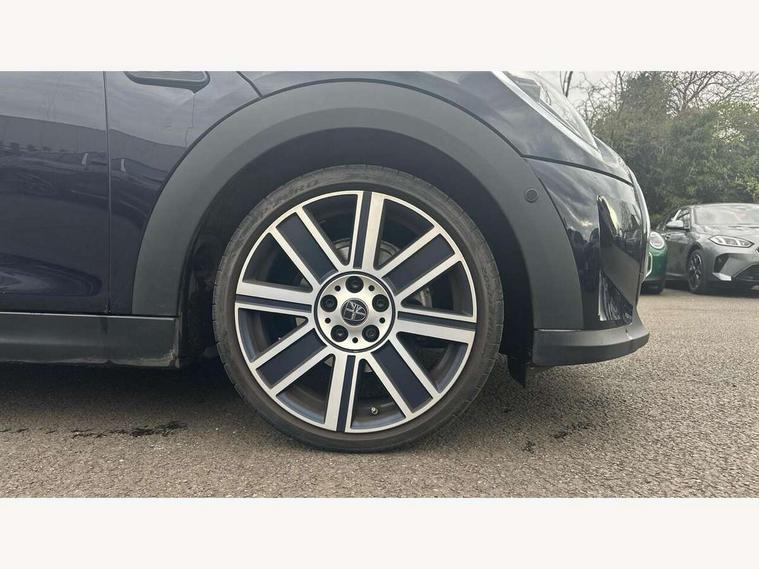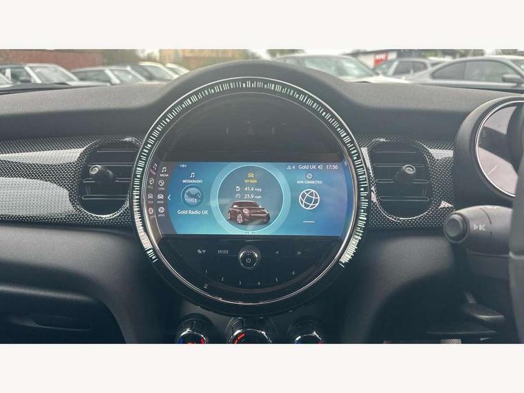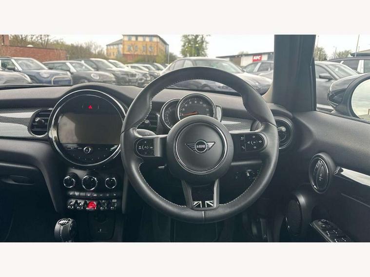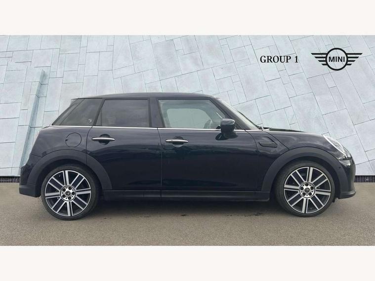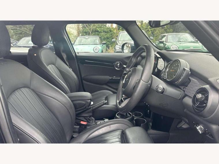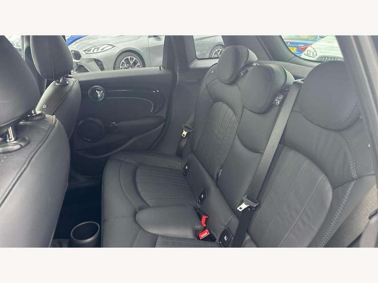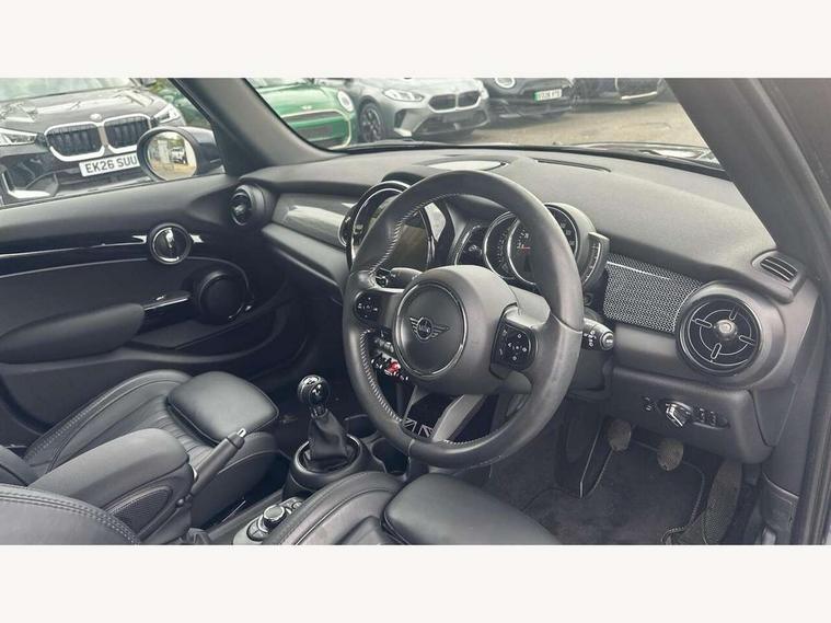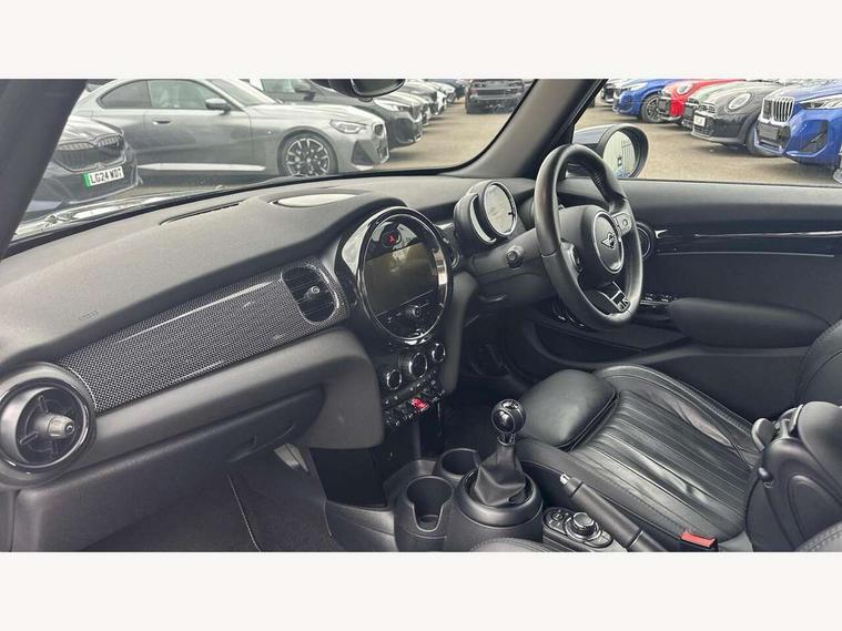 Apple CarPlay, Automatic start/stop function with brake energy recuperation, Compatible mobile phone bluetooth with audio streaming, Cruise control with brake assist, Electro-mechanical speed dependant steering assistance, Flexible car sharing preparation, Instrument cluster, MINI Driving Modes - centre toggle switch to control driving setting (sport, mid and green), Mini E-call, MINI TeleServices, On board computer, Rear park distance control, Service interval indicator, 6 Speed manual transmission including gear change indicator display, Double Vanos system, Fully variable valve control, High precision injection, Performance Control, 8.8" touchscreen with LED ring, FM tuner and DAB digital radio, 3rd brake light, Automatic headlight activation switch, Body colour fuel filler cap, Chrome line exterior - radiator grille bars, tailgate handle, lower front grille grating and rear central fog-light, Dynamic brake lights, Electric front+rear windows, Heated rear window, Heated windscreen washer jets, LED headlight with closed ring and daytime driving lights, Metal door sill strips with MINI imprint, Model logo Cooper on right of tailgate, Rain sensor window wipers, Rear fog lights, Rear LED lights with union jack design, Rear side wing doors, Rear window wiper, Side scuttle panel with integrated indicator, Sun/heat protection glass, White indicator lenses, 12V Accessory socket in centre console, 3 seat bench in 2nd row, 4 lashing eyes in luggage compartment, 60/40 split folding rear seat, Anthracite headliner including grab handles and clothes hooks, Carbon black colour line - Knee roll and door armrest, Chrome interior highlights, Chrome line interior - air vents, gear lever base, door handles and speakers in doors, Cupholders, Front and rear head restraints, Front and rear isofix with front passenger airbag deactivation, Front and rear velour floor mats, Glove compartment, Height and length steering column adjustment, Interior lighting with 12 different colours across the dashboard, underneath door bezel with illuminated laser-engraved design on central display, Leatherette gearshift lever and handbrake gaiters, LED reading lights, vanity mirror lights, front foot well light and spotlight on front seats, Manual air conditioning, Mechanical seat adjustment - forward/back & backrest for front seats and driver seat height adjust, MINI yours badge on exterior pillar, Multifunction steering wheel, Single front passenger seat, Storage compartments in doors, Sunvisors with vanity mirrors, Walknappa leather steering wheel with grey seam and MINI Yours badge on Piano Black lower steering wheel spoke, 3 point seatbelts on all five seats, 6 Airbags - front, side, head and seat belt tensioners, Anti-lock braking system (ABS), Child locks on rear doors, DSC - Dynamic Stability Control, Front and rear disc brakes, Hill start assist, Single tone fanfare horn, Tyre pressure monitoring system, Alarm system with tilt sensor, monitoring doors, bonnet interior and tailgate, Electronic vehicle immobiliser, Start/stop toggle with keyless go, Tool kit,