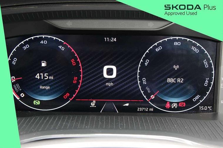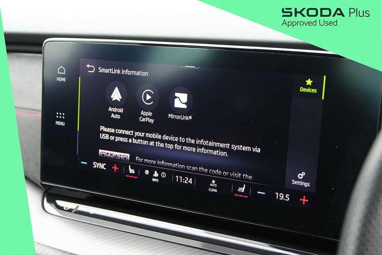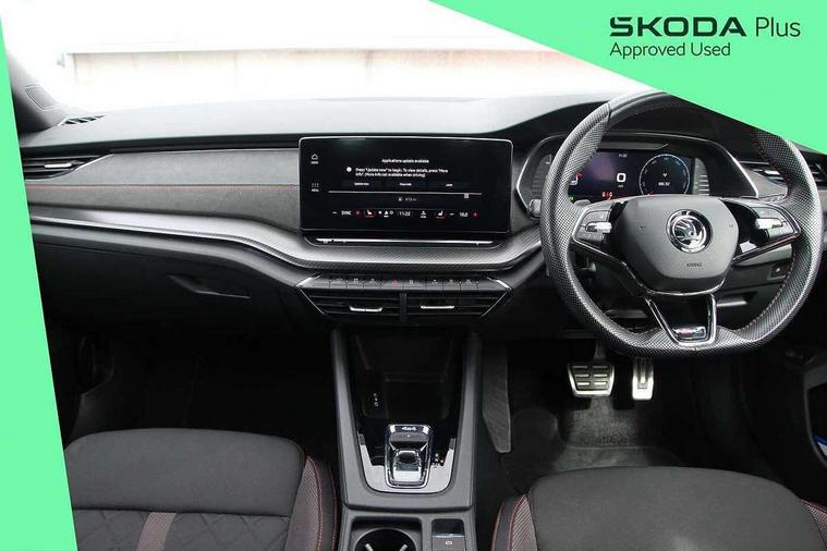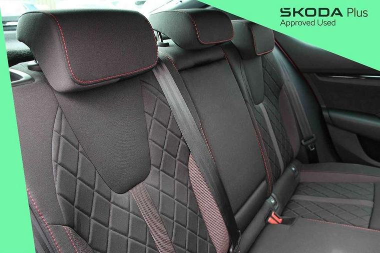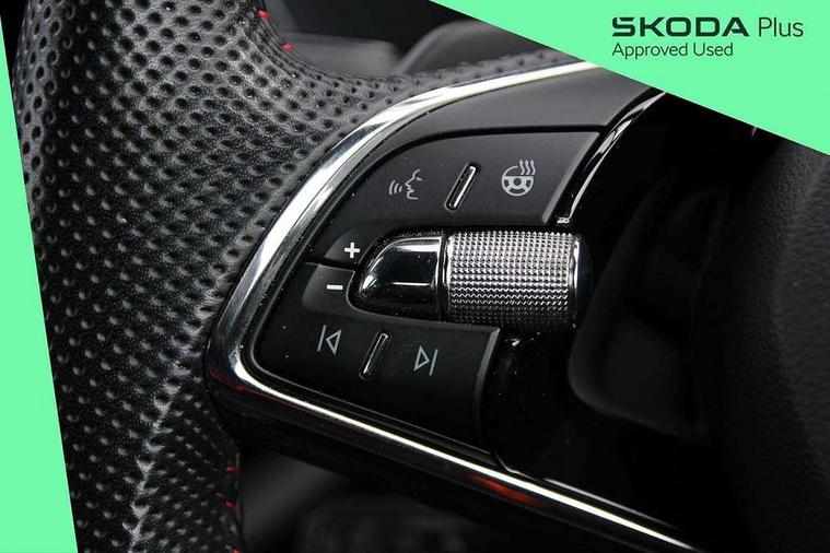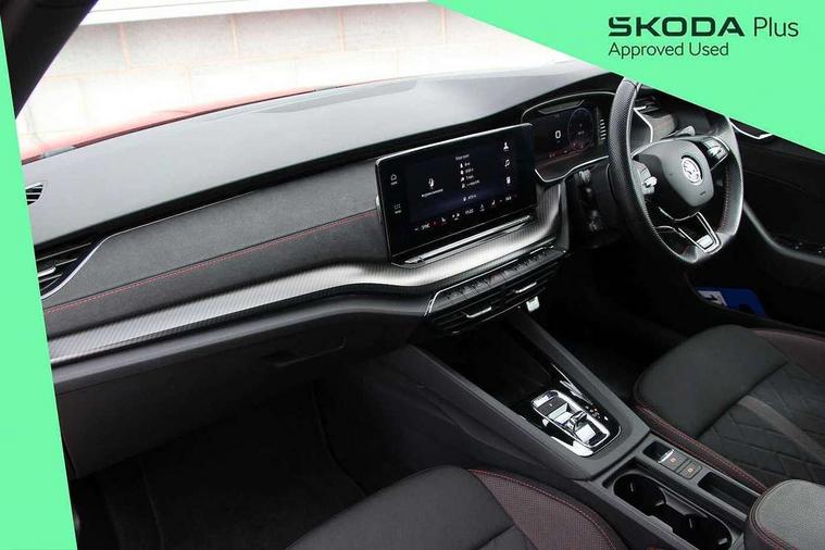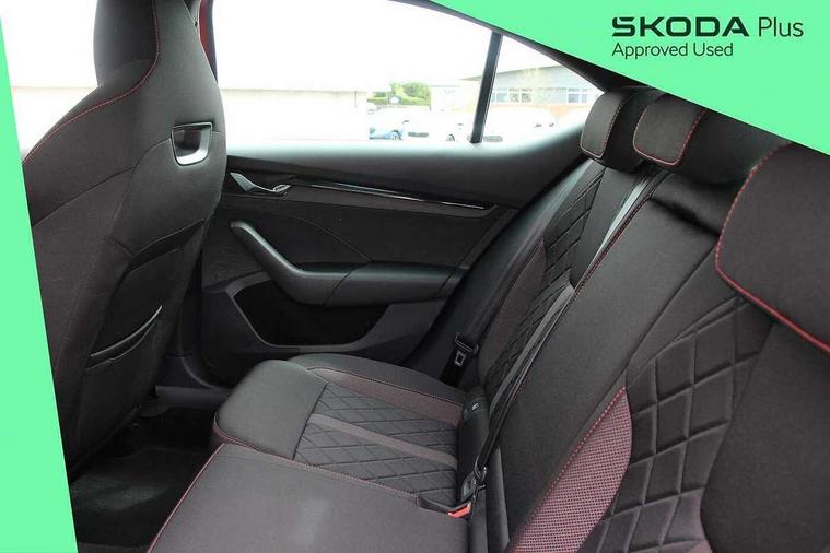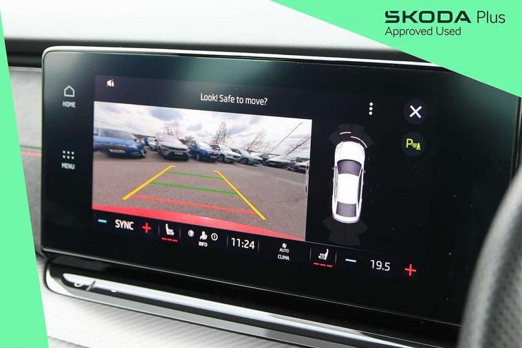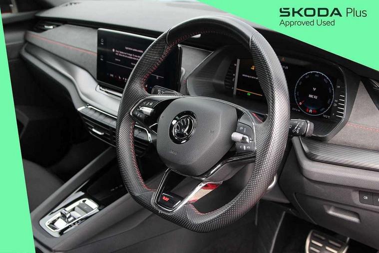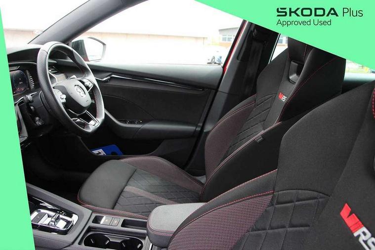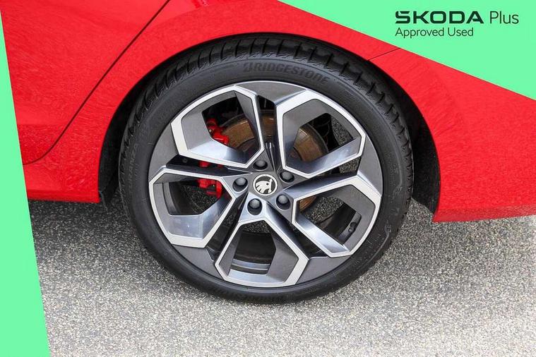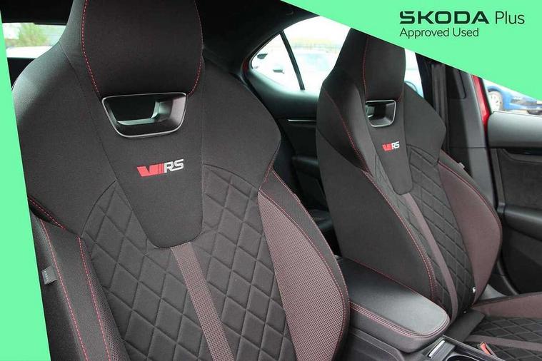 1x USB Type C port in rear view mirror (charging only), 2x USB Type C ports in rear of front centre armrest (charging only), Bluetooth system, Columbus satellite navigation with 10" touchscreen display, Driver fatigue sensor, eCall emergency system, Front and rear parking sensors with manoeuvre assist, Front assist system, Progressive dynamic steering, Smartlink (includes android auto and mirrorlink), Speed limiter, Turn Assist, Virtual Cockpit - 10.25" digital display, Voice control system, Wireless SmartLink for Apple Car Play, Front and rear stabilizers, 2x USB Type C ports (for charging and data transfer), 8 Speakers, DAB Digital radio, Aero front windscreen wipers with intermittent function, Auto dimming rear view mirror, Body colour door handles, Chrome exhaust tailpipes, Door sills with vRS logo, Electric front and rear windows, Exterior gloss black sports styling including front grille, side strip, window surrounds, door mirror and badging, Full LED Matrix headlights with AFS and cornering front fog lights, Headlight washers, Heated rear windscreen, High level third brake light, Ice scraper in fuel cap, LED daytime running lights, Rain and light sensors, Rear fog light on one side, Rear privacy glass, Rear side wing doors, vRS bumpers and lip spoiler, 3 rear headrests, 3 seat bench in 2nd row, 4 foldable roof handles, Aluminium pedals, Black headlining, Black microsuede padded dash panel with red contrast stitching, Chrome inner door handles, Front centre armrest, Front head restraints, Heated front seats, Illuminated glovebox, Leather trimmed gearshift lever, Luggage compartment lighting x1 light, Mechanical rear seat release, Parcel shelf - folding, Single front passenger seat, Sunglasses storage, Textile floor mat set, Three spoke leather sports multifunction steering wheel with paddles, Ticket holder, Umbrella in door panel, Unsplit rear bench seat and split folding backrest, LED interior light pack - Octavia, 3 point front/outer rear seatbelts+pre-tensioners, Alarm with interior monitoring, tilt sensor and back up horn, Automatic door unlocking in case of crash, Automatic fuel cut off in case of crash, Automatic warning lights in case of emergency braking, Curtain airbags and front side airbags, Driver and front passenger airbags, Drivers knee airbag, Electronic parking brake, Emergency call and proactive services, ESC including ABS, EBV, MSR, ASR, EDS, HBA, DSR, Front and rear disc brakes, Front central airbag, Hill hold control, Hill start assist, ISOFIX on front passenger seat and outer rear seats, Manual rear child locks, Passenger airbag deactivate switch, Red brake calipers, Two tone horn, Tyre pressure monitor, Visual and acoustic seat belt reminder, Warning reflectors in front door, Door locks with immobiliser, Keyless entry and start/stop including rear doors, Remote central locking, Carbon optic decorative inserts, Gloss black air vent surrounds, 19" Altair anthracite alloy wheels,