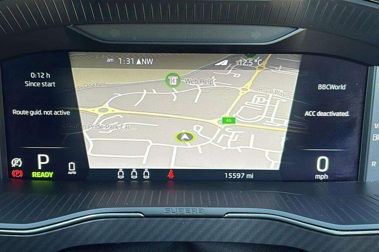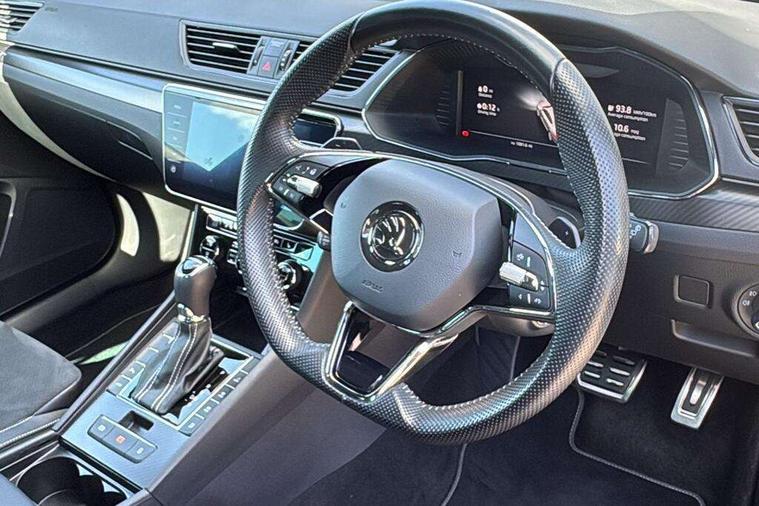 Bluetooth system, CareConnect and Emergency Call, Columbus HDD satellite 3D map navigation with 9.2" colour touch screen, web radio, integrated Wi-Fi, Driver fatigue sensor, E mode button for electric/hybrid drive, eCall emergency system, Front assist with pedestrian protection, Progressive dynamic steering, Stop/start engine system and energy recovery, Unique iV instrument panel, Virtual cockpit, Voice control system, Wireless smartlink apple carplay, SmartLink+ android auto and mirror link connectivity, Dynamic chassis control, E-noise generator for electric drive with noise emitted upto speed of 50km/h, Two charging cables 16amp for wallbox/chargepoints (mode 3) and 10amp mains charge cable (mode 2), XDS+, 2 USB ports, Bolero radio with 8" touchscreen display, DAB Digital radio, 3rd brake light, Aero front windscreen wipers with intermittent function, Auto dimming rear view mirror, Black rear badge, Body colour door handles, Cornering front fog lights, Electrically adjustable heated and folding door mirrors with memory function, Front and rear electric windows, Full matrix LED headlights with AFS LED DRL integrated with headlight washer LED rear lights(High function), dynamic indicators and lighting animation, Gloss black exterior door mirrors with sports styling including front grill, side strip and window surrounds, Gloss black grille surround with gloss black rib elements, Gloss black rear spoiler, Gloss black strip between rear lights, Light assistant (coming/leaving home/tunnel light), Privacy glass, Rain sensor, Rear exhaust diffuser styling elements, Rear side wing doors, Sport Line badging, Unique front grille with chrome-plated elements and charging socket cover, Unique iV badge on tailgate, 12v power point in centre console, 3 seat bench in 2nd row, Black roof headlining, Black textile floor mats, Carbon optic interior elements, Front and rear footwell illumination, Front armrest with storage box, Height adjustable front and rear head restraints, Ice scraper, Illuminated and cooled glovebox, Interior lights with control switches, Isofix child seat fittings on outer rear seats, LED front and rear reading lights, Microsuede/leather upholstery with silver diamond stitching sports seats, One umbrella compartments in driver door with one umbrella in drivers door, Overhead glasses storage compartment, Rear centre armrest with cupholders, Removable parcel shelf, Single front passenger seat, Split folding rear seats, Sport button for hybrid drive delivering maximum system performance, Storage compartment for charging cables under the luggage compartment mat, Storage compartment with cover in luggage compartment side panels, Ticket holder on A Pillar, LED package plus - Superb, 3 rear seatbelts, 7 airbags - Front, front side, curtain, driver's knee airbag with front passenger deactivation switch, Driver and passenger seatbelts with warning light, Electronic parking brake, ESC including ABS, EBV, MSR, ASR, EDS, HBA, DSR, RBS, CBC, multi-collision brake (MKB) and Auto hold, Power operated child lock in rear doors, Tyre pressure monitor, Alarm with interior monitoring tilt sensor and back up horn, Electronic engine immobiliser, Keyless entry and start/stop, Remote central locking with SAFE system, Third remote key, Unique decorative door sills front and rear, Tyre repair kit,