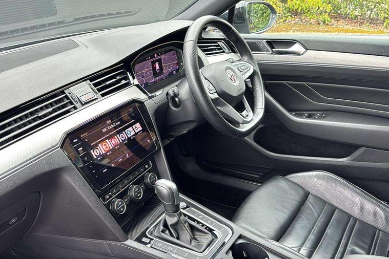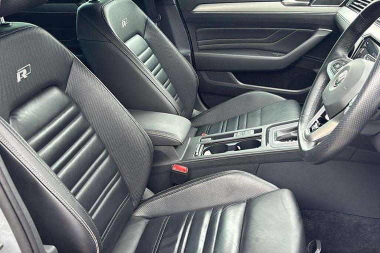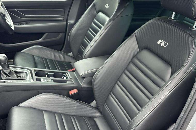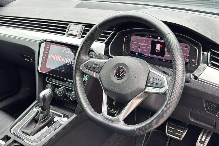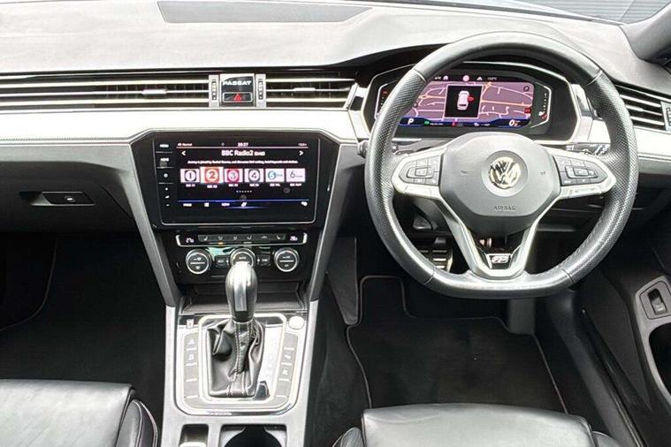 Adaptive cruise control including Front Assist, radar sensor controlled distance monitoring system, City emergency braking system, Area view, Driver alert system, Driver profile selection, Exterior temperature gauge with frost alarm, Front and rear ultrasonic parking sensors, audible with audio volume reduction when activated + optical parking display via vehicles infotain system, Lane assist, Low washer fluid warning light, Multifunction computer includes visual gear, One touch indicator turn signal, Proactive occupant protection, Security and service including e-call, Speed sensitive power steering, Speedo and rev counter, electronic odometer, trip, service interval display and fuel gauge, Start/Stop function, Traffic jam assist, Warning buzzer and light for front seatbelts unfastened, Wireless app connect, Battery regeneration during braking, Diesel particulate filter, Dynamic chassis control, Misfuel prevention device, XDS electronic differential lock, Aerial for radio integrated into rear windscreen, DAB Digital radio receiver, Auto dimming interior rear view mirror, Automatic headlights with dusk sensor, Automatic leaving home and manual coming home lighting functions, Black door mirrors with integrated indicators, Black radiator grille with chrome louvres, Body colour bumpers, Body colour door handles, Front and rear electric windows, Fully galvanised body, Gloss black finish on B pillar, Heated rear window, Heated windscreen washer jets, High level 3rd brake light, IQ.LED matrix projection technology headlights w. washers, dynamic curve lighting, dual U-shaped LED DRL, LED indicators, static cornering fog lights, LED rear lights, LED rear number plate lights, Plastic load sill protection, Rain sensor, Rear tinted glass from B pillar backwards, approx 65% tinted, Rear window wash/wipe, Remote electrically adjustable and foldable heated door mirrors including automatic dimming function on drivers side door mirror puddle lights, Signature solid paint, Silver anodised roof rails, Warning lights for open tailgate and doors, White instrument lighting, 12V socket in front centre console, 12V socket in luggage compartment, 40:20:40 split folding rear seat backrests, Carbon optic side bolsters, Climate control - 3 Zone electronic air conditioning with automatic air recirculation, Driver's door storage compartment for 1.0 litre bottle, Driver/front passenger seat height adjustment, ErgoComfort seat with seat cushion tilt adjustment, thigh support and electric backrest adjustment on the driver side, Extending luggage compartment cover with convenience opening, stowable, Front and rear interior lighting with delay and dimming function, Front centre armrest with storage compartment and two rear air vents, Front cupholders x2 with covers, Front passenger storage compartment for 1.5 litre bottle, Front seats with embroidered R Line logo on backrest, Front seats with lumbar adjustment, Heated front seats, Height adjustable and removable variable boot floor, Height adjustable rear seat head restraints (x3), Height/reach adjust steering wheel, Illuminated vanity mirrors, Isofix child seat preparation, outer rear seats, Load lashing points x 4 in luggage compartment, Load through provision, Lockable, illuminated, cooled glovebox, Luggage compartment lighting, Nappa leather upholstery, Rear seat centre armrest with storage compartment, Stainless steel pedals in clutch, brake and accelerator, Storage compartment in rear doors, Storage compartment in roof console with cover, Three spoke leather trimmed multifunction steering wheel with aluminium inserts and R Line Logo including paddle shift, Unique R Line front and rear carpet mats, Ambient lighting plus pack - Passat, Black styling pack - Passat R Line Edition, Discover navigation pro pack - Passat, Easy open package with full electric tailgate/ boot - Passat (Estate), 3x3 point rear seatbelts, ABS (Anti locking brake system) includes BAS (Brake assist) and EBD (Electronic brake pressure distribution), Automatic post collision braking, Disc brakes front and rear, Door open warning reflectors, Driver/Front Passenger airbags, Drivers and front passengers safety optimised head restraints, longitudinal and height adjustable, Drivers knee airbag, Electronic parking brake with auto hold, ESC (Electronic stability control)and ASR (Traction control), EDTC (Engine drag torque control), First aid kit, Front airbags with deactivation switch, Front and rear passenger curtain airbags, Front side impact airbag, Height adjustable front 3 point seatbelts + pretensioners, Hill hold function, Pre crash preventive occupant protection, Rear seat side impact airbags, Rigid safety cell with front and rear crumple zones, Tyre pressure loss indicator, Volkswagen roadside assistance, Warning light for rear seat belts if unfastened, Alarm with interior protection and deactivation via infotainment system, Electronic engine immobiliser, Keyless entry system including start/stop button on centre console, Chrome air vent and instrument surround, Unique R Line dark diamond flag decorative inserts in dash and door panels, 19" Pretoria dark graphite alloy wheels and low rolling resistance tyres + anti-theft wheel bolts, Steel space saver spare wheel,