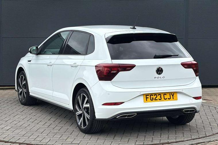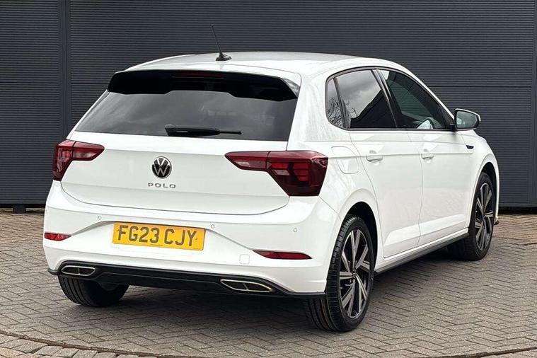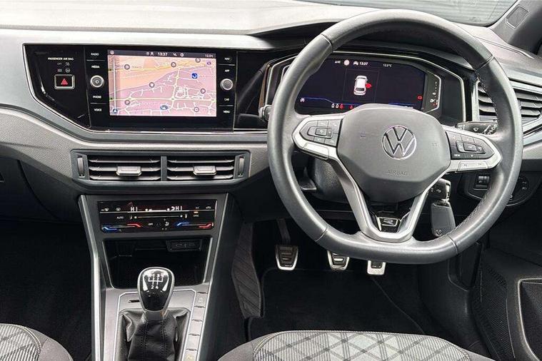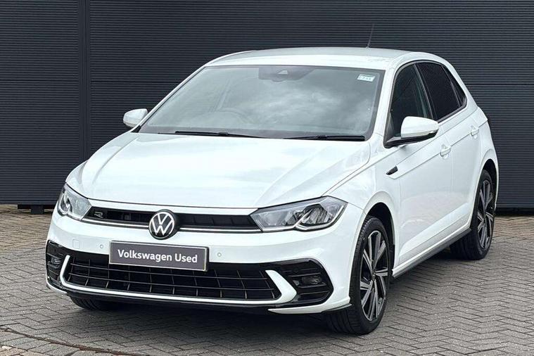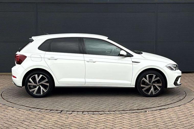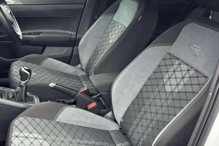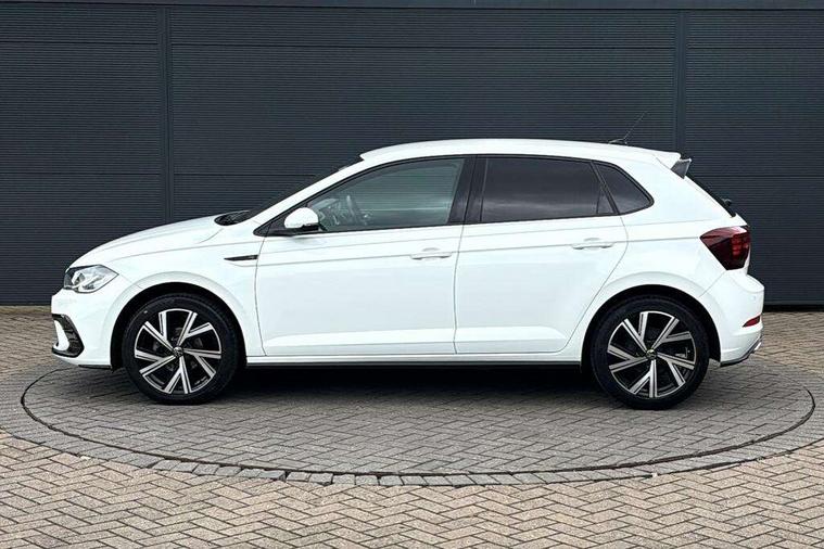 Adaptive cruise control without follow-to-stop and speed limiter, Bluetooth mobile phone interface, Digital Cockpit Pro with 10.25" Display, Driver alert system, Dynamic road sign display, Emergency call service, Power assisted speed sensitive steering, Preparation for We connect and We connect plus, Speedo and rev counter, electronic odometer, trip, service interval display and fuel gauge, Standard rear axle, Travel Assist - Lane keeping system and traffic jam assist, Travel assist including emergency assist, Trip computer, Warning signal and warning light for front and rear seatbelts not fastened, Washer fluid level indicator, Wireless app connect, Front wheel drive, Rear shock absorpion, Start-stop system with battery regeneration (recuperation - energy recovery during braking), DAB Digital radio, Diversity antenna for FM reception, Front and rear 6 speakers, Body colour bumpers, Body colour door handles, Electric front windows, Front scuff plates with R-Line logo, Heat insulating darkened glass in side and rear windows, Heat insulating glass windscreen, Power folding adjustable/heated exterior mirrors and front passenger exterior mirror lowering function, Rear electric windows, Rear fog light, Rear side wing doors, Rear windscreen washer and wiper with interval delay, Third brake light, 12V power socket in centre console, 2 USB-C ports in the front, 2 USB-C charging sockets on the center console in the rear, 3 rear head restraints, 60/40 split folding rear seat and rear seat bench not split, Air care climatronic air conditoning system with active combination filter and 2-zone temperature control, Black roof lining, Chrome plated radiator grille inserts, air vent surrounds and light switch surrounds, Door and side trim panel, Driver and front passenger seat height adjustment, Driver/passenger sunvisors with illuminated vanity mirrors, Front + rear carpet mats in recycled material, Front centre armrest, Front footwell illumination, Front seat backrest storage pockets, Front sports comfort seats, Handbrake lever handle in leather, Headliner in recycled material, Isofix child seat preparation easy-fit (for two outer rear seats, and front passenger seat) compatible with I-size, Karoso artvelours cloth upholstery, Leather trimmed gear knob, LED interior light with switch off delay and dimmer, 2 reading lights front and rear, Luggage compartment cover, Luggage compartment floor, Luggage compartment lighting, Lumbar adjustment for front seats, Multifunction steering wheel, Single front passenger seat, Stainless steel pedals, Standard pedal cluster, Light and sight pack - Polo R-Line/Black Edition, 3 point height adj front seatbelts + pretensioners, 3x3 point rear seatbelts, ABS, Driver and front passenger airbag with front passenger airbag deactivation, Drivers and front passengers safety optimised head restraints, ESC (Electronic stability control) + EDL (Electronic Differntial lock) and ASR (Traction control), Extended and predictive pedestrian/ cyclist protection, Front curtain and side airbags with center airbag, Hill hold control, Manual child lock in rear doors, Single tone horn, Tyre pressure loss indicator, Alarm with interior protection, Anti-theft alarm system with interior monitoring, backup horn, and towing protection, Anti-theft wheel bolts, Electronic engine immobiliser, Chrome applications on rotary light, mirror adjustment, window regulator switches, outlet with frame in black, Dark grey anodised matt decorative inserts in dash and front door panels, Low rolling resistance tyres,