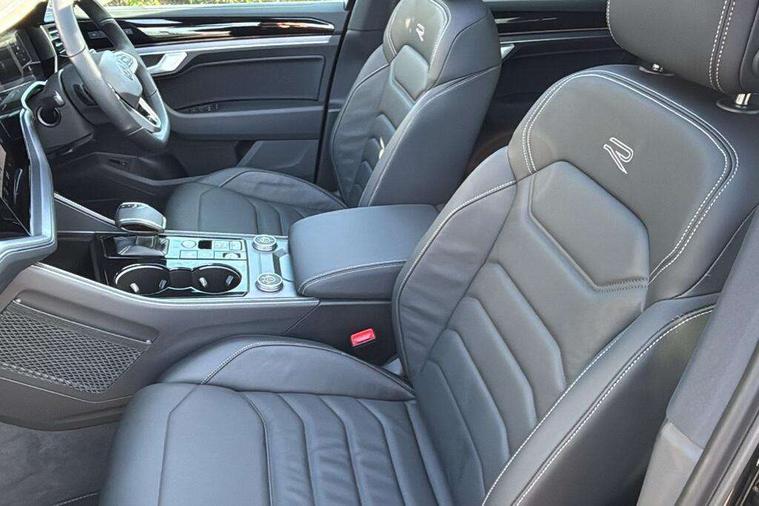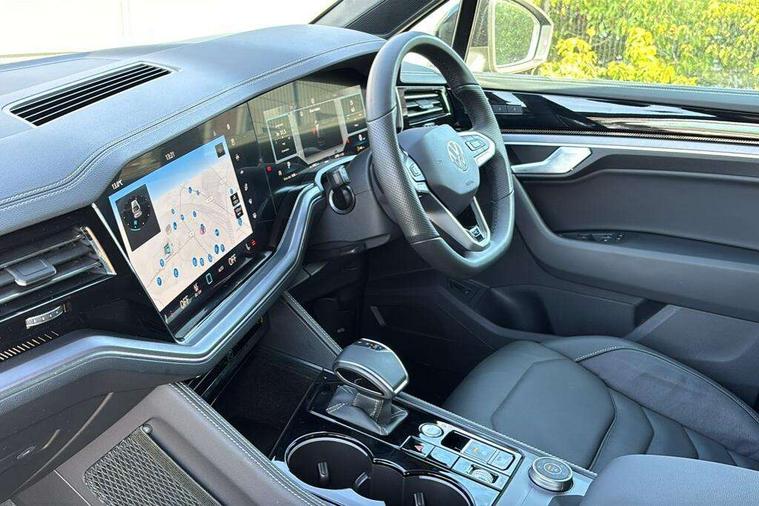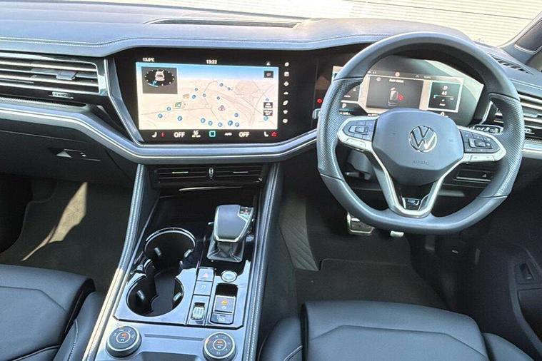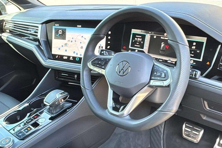15" Screen Top infotainment system Premium (MIB3), Adaptive cruise control, Advanced driver attention and drowsiness monitor, Driver profile selection, Dynamic road sign display, E-Sim card for online connectivity, eCall emergency system, Innovision cockpit, Intelligent park assist, Mobile phone interface with inductive charging, Multi-colour Active Info display, Park Assist - Sensor controlled steering aid to assist parallel or bay parking, PAS, Warning signal and warning light for front and rear seatbelts not fastened, Wireless app connect, Adaptive chassis control, DAB Digital radio, Diversity antenna for AM/ FM reception, We Connect and We Connect Plus functionality, Automatic coming/leaving home lighting function, Automatic headlights, Black door mirrors, Black style comfort bumpers, Dynamic headlight range control with dynamic cornering light, Electric front tilt/slide panoramic sunroof and fixed rear sunroof, Electrically power adjustable, heated, folding, auto dimming, front passenger exterior door mirror lowering function, External USB type C socket and charging sockets, Gloss black roof rails, HD LED Matrix beam plus digital headlight projection with variable light distribution, Headlight washers, Heat insulating darkened glass in side and rear windows, Highway light, LED 3rd brake light, LED daytime running lights, LED rear combination lamp with variable lighting functions and special styling, Poor weather light, Privacy glass for rear side windows and rear window, tinted glass from B pillar backwards - 80%, Rain sensor, Rear exhaust tailpipe, Rear fog light with back up light on both sides, Rear light bar and illuminated logo, Rear side wing doors, Rear wiper, Stainless steel door sill protection, 12V socket in centre console, 3 rear headrests, 3 seat bench in 2nd row, 4 zone climate control, Airbag label on sun visor and B-pillar, Brushed stainless steel pedals, Double sun visors with illuminated vanity mirrors, Front + rear carpet mats, Front centre armrest, Leather wrapped multifunction sports steering wheel, heated, with touch control and shift paddles, Mechanical rear seat release, Power adjustable lumbar support in front, Power seats in front, right side with memory features and seat cushion depth adjustment, Rear seat backrest and split folding with center armrest, Single front passenger seat, Extra acoustics pack - Touareg, Memory pack plus - Touareg, 3 point seatbelts, outer rear with ECE lable, ABS, Child locks on rear doors, Curtain airbags, Driver and front passenger safety-optimised head restraints, Driver/Front Passenger airbags, Extended pedestrian protection measures, Front assist, Front seat side impact airbags, Generative braking with start and stop system, Height adjustable 3 point front seatbelts with pre tensioners, Passenger airbag deactivate switch, Three 3 point rear seatbelts, Two tone horn, Warning triangle and first aid kit, Alarm system with interior protection, Easy open and close sensor controlled luggage compartment opening and closing with remote unlocking, Keyless Access Keyless locking and starting system with SAFELOCK, Aluminium decorative inserts, Black decorative trims, Gloss black decorative inserts in centre console, Tool kit,
