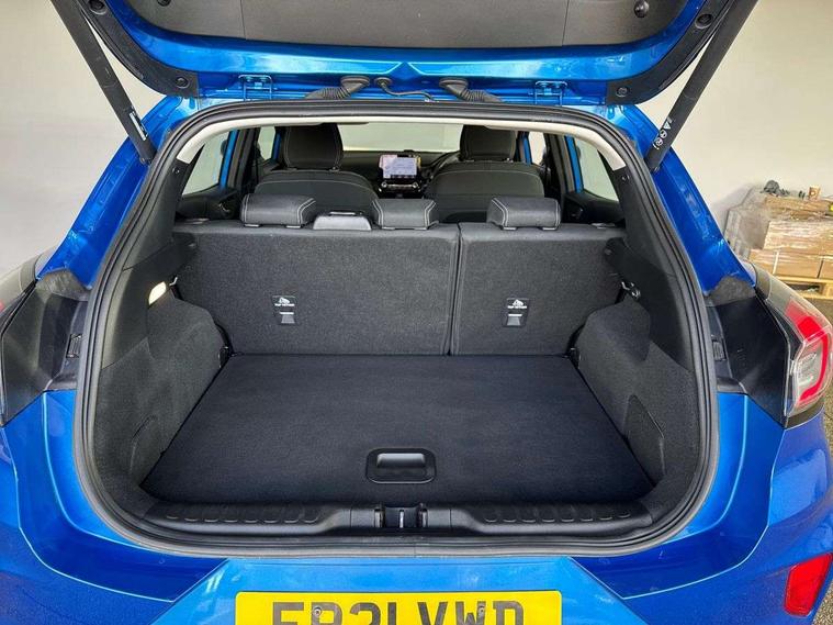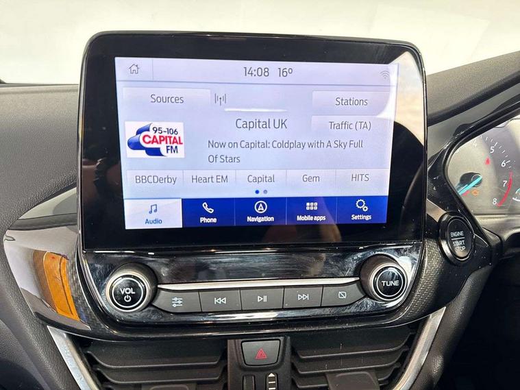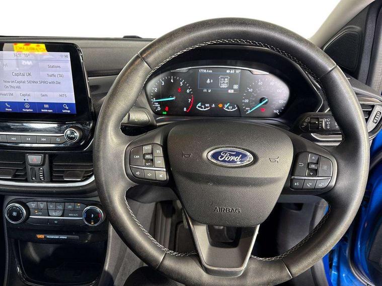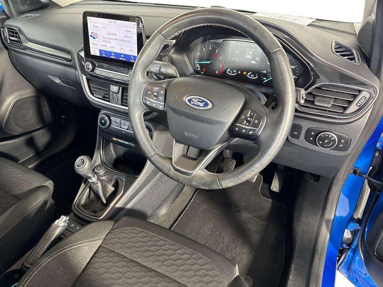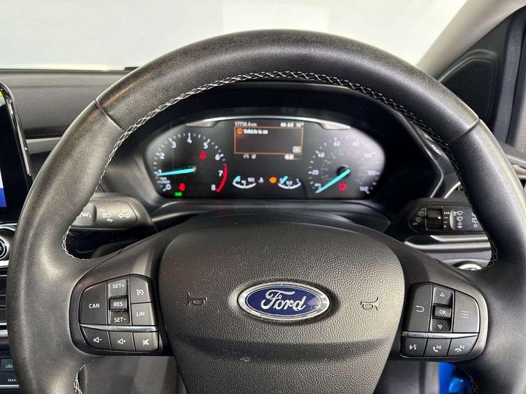 Ford easy fuel, Lane keeping aid with lane departure warning, Power assist steering, Rear parking sensor, Selectable drive modes(Normal, Eco, Sport, Slippery and Trail), Body coloured door mirrors, Front fog lights with cornering lights and LED rear lamps, Power foldable heated door mirrors with puddle lamps, Quickclear heated windscreen, Rear wiper, Centre console with armrest and stowage, Cloth upholstery, EATC - Electronic Auto Temperature control, Ford megabox extended bootspace, Front and rear head restraints, Front floor mats, Leather steering wheel/gear knob/handbrake, 3 rear seatbelts, Electronic stability control (ESC) and hill start assist, Pre-collision assist with autonomous emergency braking, pedestrian/cyclist detection & post-collision braking, Tyre pressure monitoring system (TPMS), Thatcham alarm, 17" 10 spoke absolute black machined finish alloy wheel,
