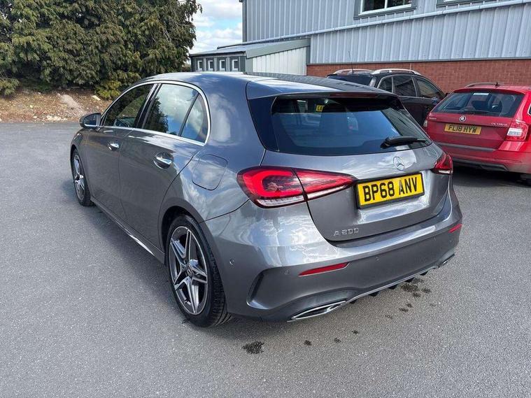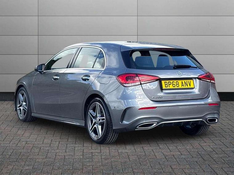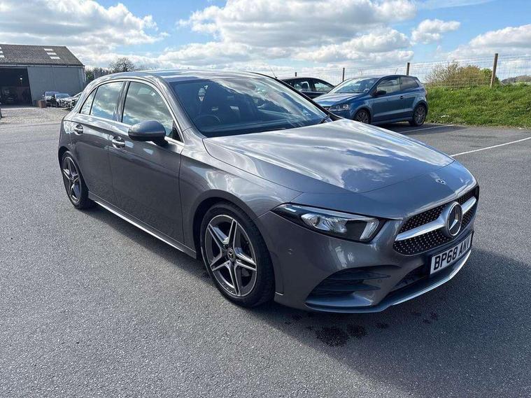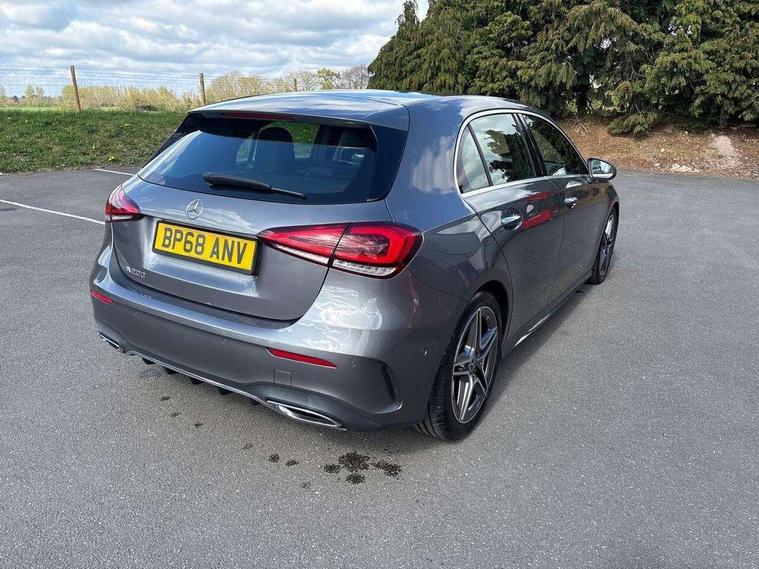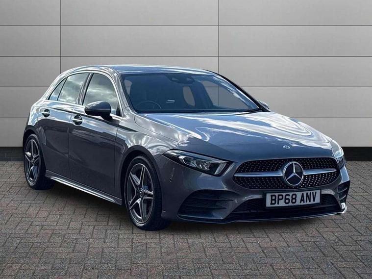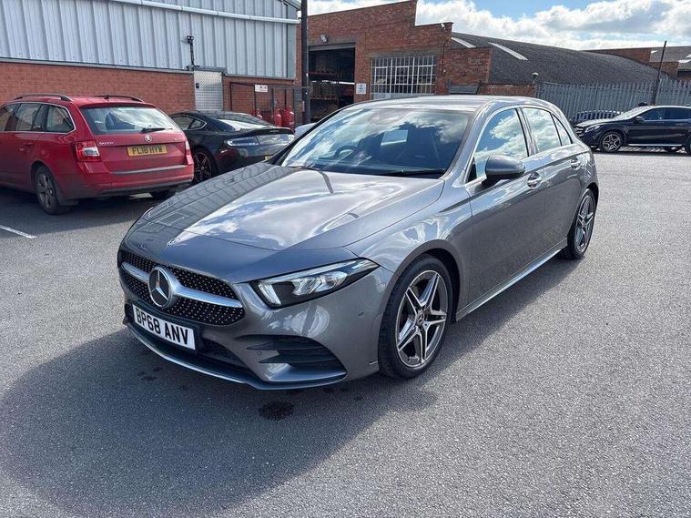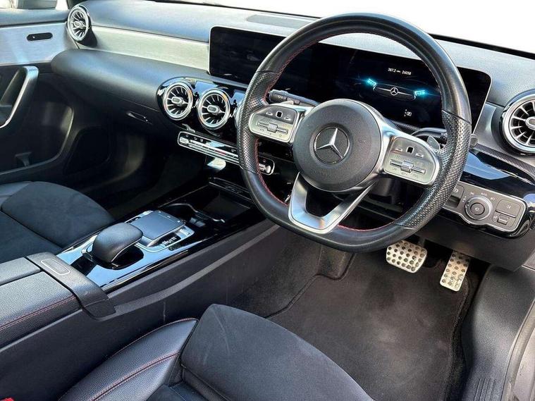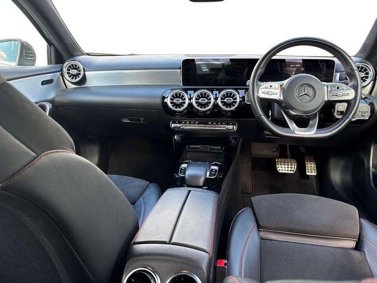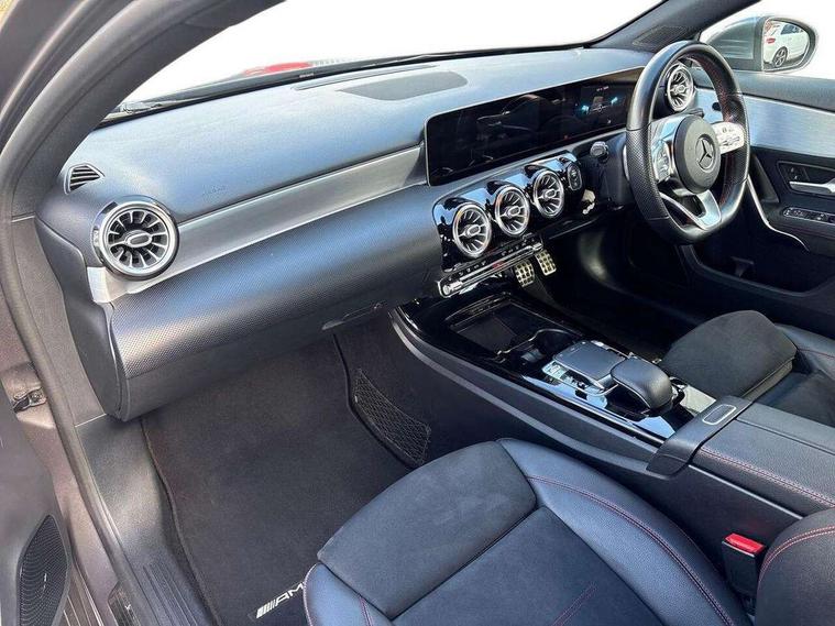 10.25" Digital instrument cluster display screen, 10.25" media display, 180 degree rear view camera with parking guidelines, Active lane keep assist, Active park assist with parktronic system including front and rear parking sensors, Attention assist, Brake pad wear indicator warning light, Direct steering, Direction indicators with lane change function, DYNAMIC SELECT with a choice of driving modes (ECO, Comfort, Sport, Sport+ and Individual), Fluid level warning indicator for fuel, oil, coolant and washer fluid, Hard-disk navigation, Lamp failure indicator, Mercedes me connect including emergency call system, accident recovery, breakdown and maintenance management, Outside temperature gauge, Radio aerial integrated into roof spoiler, Service indicator (ASSYST), Speed sensitive power steering, Stop/start system, Trip computer, Voice activation, Lowered comfort suspension, DAB Digital radio, Dual bluetooth interface, 2 USB ports (type C), MBUX multimedia system with DAB digital radio and touchpad including satellite navigation, Mid-range sound system, Adaptive brake lights, AMG front, rear apron and side skirts, Blue tinted glass, Body colour bumpers, Body colour door handles, Body colour side skirt, Body coloured door mirrors, Chrome beltline trim, Diamond radiator grille with chrome pins and silver louvre + chrome insert, Electric adjustable and heated door mirrors with integrated LED side indicators, Electric front windows, Electric rear windows, Exhaust system - Twin trapezoidal tailpipes in polished stainless steel, Headlamp assist automatic headlamp activation, Heated glass rear windscreen + timer control, LED high performance headlamps with integrated LED daytime running lights, LED tail lamp, LED third brake light, Rain sensor windscreen wipers, Rear fog lights, Rear wiper, 12V socket, 3 Spoke flat bottom leather multi function steering wheel with perforated leather in grip area, 40:20:40 split folding rear seats, Air vents surround and cruciform nozzle in silver chrome, AMG floor mats with red stitching, Artico man-made leather/Microfibre Dinamica upholstery with red contrast stitching, Auto Mercedes-Benz child seat recognition sensor, Black roof lining, Brushed stainless steel sports pedals with rubber studs, Controller on centre console with chrome surround, Cup holder and stowage compartment lighting, Front centre armrest with storage compartment, Front door sills with Mercedes Benz lettering, Front footwell lights, Front reading lamps, Front seat backs luggage nets, Front seat cushion length adjustment, Front signal exit lamp, Front vanity lights, Gearshift paddles on steering wheel, Handle recess/closing light, Heated front seats, Height/reach adjustable steering column, Illuminated door sills, Illuminated glovebox, Interior lighting - 64 colour Ambient lighting, ISOFIX Child seat top tethers and anchor fixings, Load securing rings in luggage compartment, Luggage compartment cover, Manual height adjustable front seats, Oddments tray lighting, Rear armrest, Rear head restraints, Rear Reading Lamps, Seat occupancy sensor for front passenger seat, Sports seats with integrated headrests, Storage compartment under load area floor, Sunvisors with illuminated vanity mirrors, Touchpad, Touchpad illumination, Twin front cupholders, Two zone thermotronic luxury automatic climate control, Mirror package - A Class, Seat comfort pack - A Class, 3 rear 3 point seatbelts, ABS with Brake Assist, Active bonnet, Adaptive brake assist with hold function and hill start assist, Brake calipers with Mercedes-Benz lettering + perforated brake discs, Childproof locks manually operated for rear doors and electrically operated for rear power windows, Crash responsive emergency lighting, Driver and passenger head and side airbags, Drivers knee airbag, Dual stage driver/passenger airbags, Electronic parking brake, ESP curve dynamic assist, ESP with ASR, Front and rear seatbelt reminder, Tyre pressure monitoring system, Warning triangle and first aid kit, Window airbags, Alarm system/interior protection/immobiliser, Keyless Go Lock/Unlock function, Remote central locking and crash sensor with emergency opening function, Black seatbelts, 18" AMG 5 twin spoke light alloy wheels in titanium grey with highsheen finish, Tirefit sealant kit,