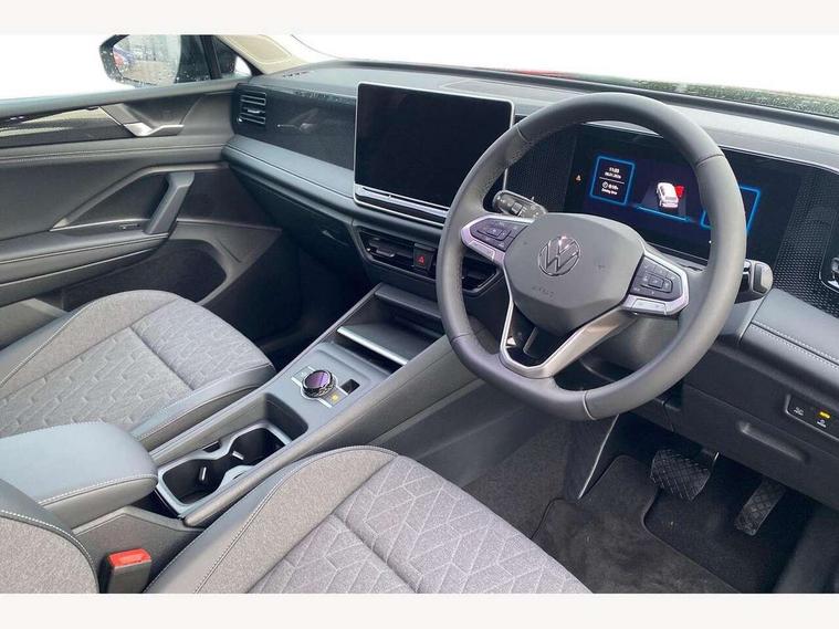 Adaptive cruise control (ACC), Advanced driver attention and drowsiness monitor, Bluetooth mobile phone interface, Car2X technology, Digital Cockpit Pro - 10.25" high resolution dash display screen with customisable menus and information, Dynamic road sign display, E-Sim card for online connectivity, eCall emergency call service, Front Assist - Autonomous emergency braking with pedestrian and cyclist monitoring, Lane change system, Side assist, Rear traffic alert and Exit warning system, Lane keeping system Lane Assist, Oncoming vehicle braking when turning including swerve support, Park assistance plus with front and rear parking sensors, Power assisted steering with speed sensitive, Start/stop system with regenerative braking, Warning signal and warning light for front and rear seatbelts not fastened, Wireless App-Connect, Front wheel drive, Digital radio reception (DAB), Diversity antenna for FM reception, Auto dimming interior rear view mirror, Automatic headlight control system, Body coloured bumpers and air intake with chrome trim, Body coloured door handles, Body-coloured exterior mirror housings, Coming/leaving home lighting function, Heat insulating glass in side and rear windows, Heat insulating windshield, Heated rear window, High level 3rd brake light, Illuminated door handle recesses, Illuminated lightline between headlamps, Puddle lights and reverse activated passengers door mirror, Rain sensor windscreen wipers, Rear fog light on one side, reversing light on both sides, Rear side wing doors, Rear wiper, 12V outlet in center console rear and in luggage compartment, 12V socket in centre console, 3 bench rear seats in 2nd row, Air care climatronic 3 zone air conditioning system with rear air conditioning control panel, Carpet mats, front and rear, Ceramique headlining, Door and side trim panel in foam film and woven fabric, Front centre armrest, ISOFIX anchors for child seats on outer rear seats and front passenger seat compatible with i-Size, Mechanical rear seat release, Power adjustable lumbar support in front, Rear bench seat, split folding, longitudinally movable and folding with load-through hatch and centre armrest, Safety optimised front head restraints, Single front passenger seat, Sun visors with illuminated vanity mirrors, Three rear head restraints, Variable luggage compartment floor, Comfort package with park assist plus and Safelock - Tiguan, Design package - Tiguan, 3 point seat belt for centre rear seats, 3 Point seat belts in front with pretensioners, 3 point seatbelts in outer rear with ECE label, Driver and front passenger airbag with front passenger airbag deactivation, Electronic parking brake with auto hold, Front and rear curtain airbags, Front and rear side airbags, Front centre airbag, Front disc brakes, Hill start assist, Manual child proof rear door locks, Rear disc brakes, Two tone horn, Warning triangle, Soul instrument panel,