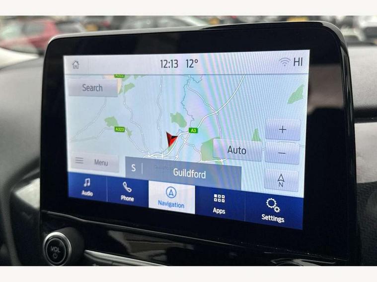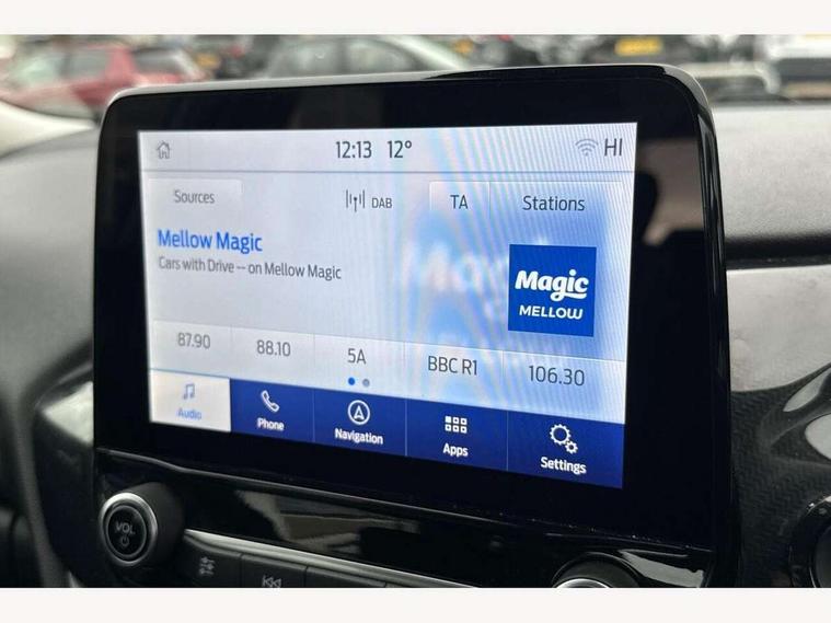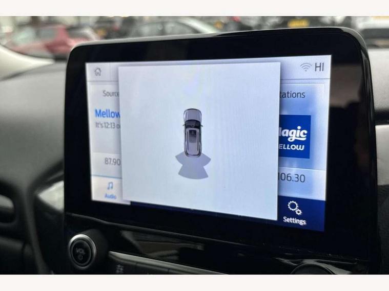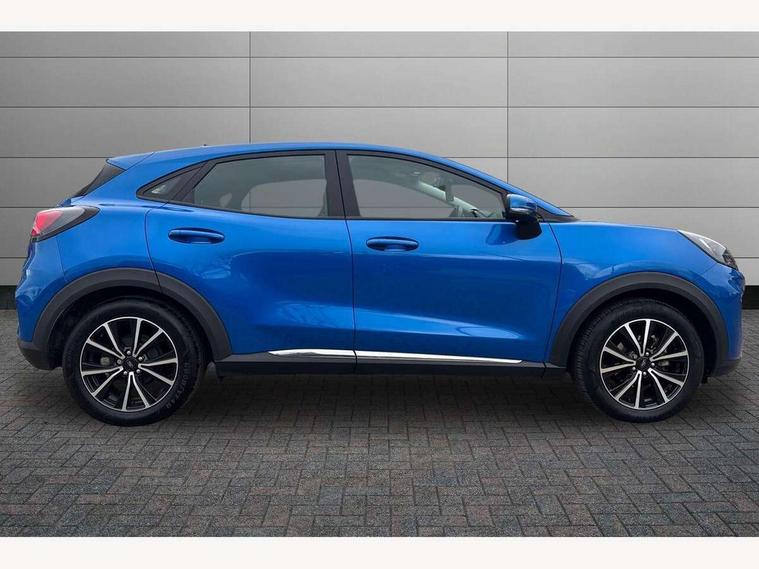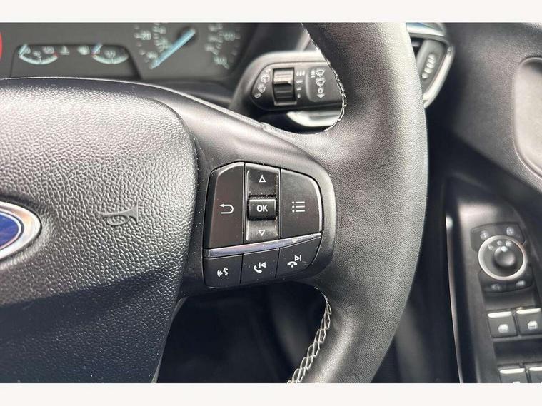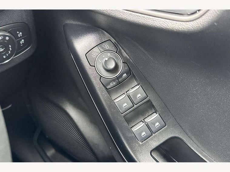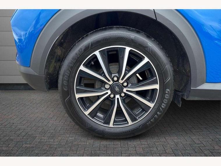 Driver impairment monitor, Emergency call service, Ford easy fuel, Lane keeping aid with lane departure warning, Power assist steering, Power start button, Rear parking sensor, Selectable drive modes(Normal, Eco, Sport, Slippery and Trail), Speed sign recognition, Standard suspension, Automatic headlights with auto high beam, Automatic rain sensing wipers, Body colour rear spoiler, LED rear lamps, Power foldable heated door mirrors with puddle lamps, Projector headlamps with LED day time running lights and front fog lamps, Quickclear heated windscreen, Rear side wing doors, Rear wiper, Third brake light, 3 seat bench in 2nd row, Centre console with armrest and stowage, Electronic automatic temperature control (EATC), Ford megabox extended bootspace, Front and rear head restraints, Front floor mats, Manual 2 way passenger seat adjustment, Manual 4 way driver seat adjust with lumbar adjustment, Sensico leather steering wheel/gear knob/handbrake, Single front passenger seat, Titanium cloth upholstery, Ford SYNC 3 navigation pack - Puma, 3 rear seatbelts, Child safety lock, Electronic stability control (ESC) and hill start assist, Pedestrian/cyclist detection & post-collision braking, Pre collision assist system, Tyre pressure monitoring system (TPMS), Thatcham alarm, 17" 10 spoke absolute black machined finish alloy wheel,