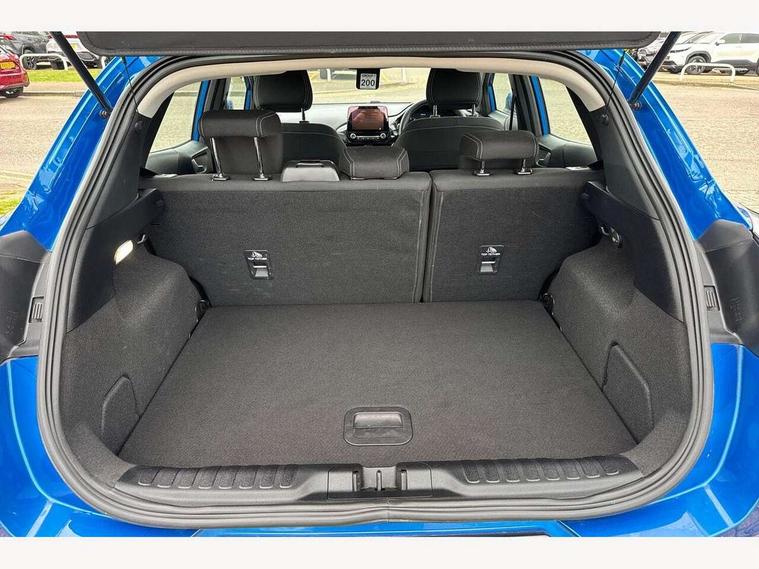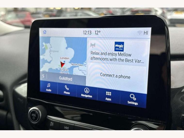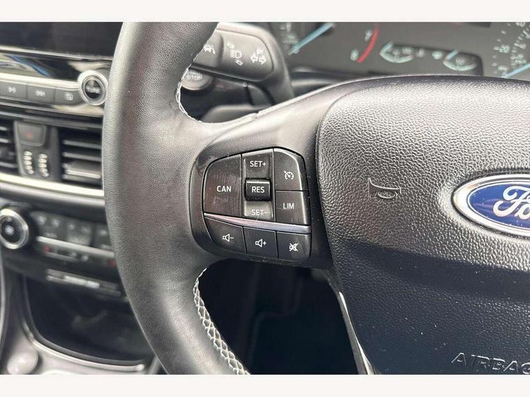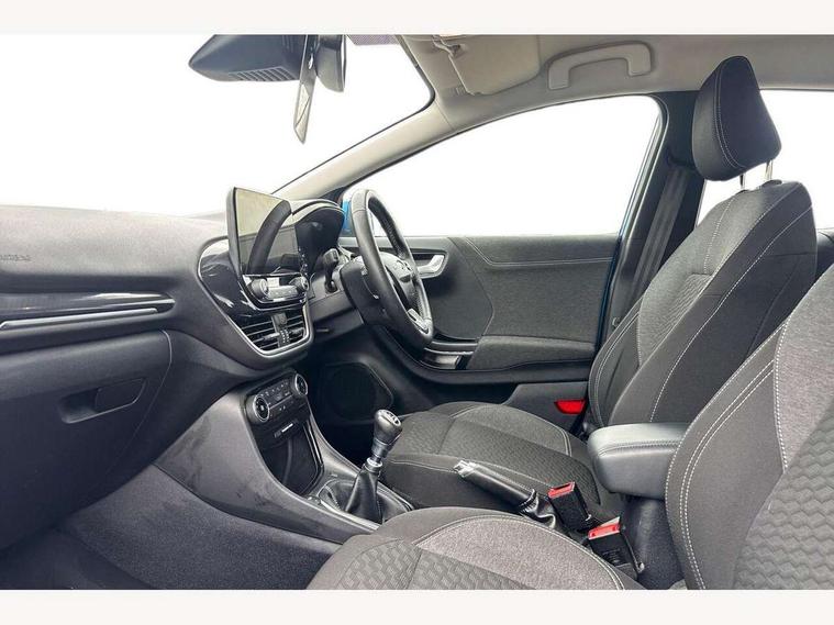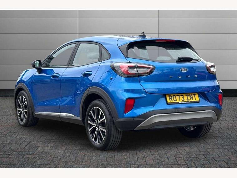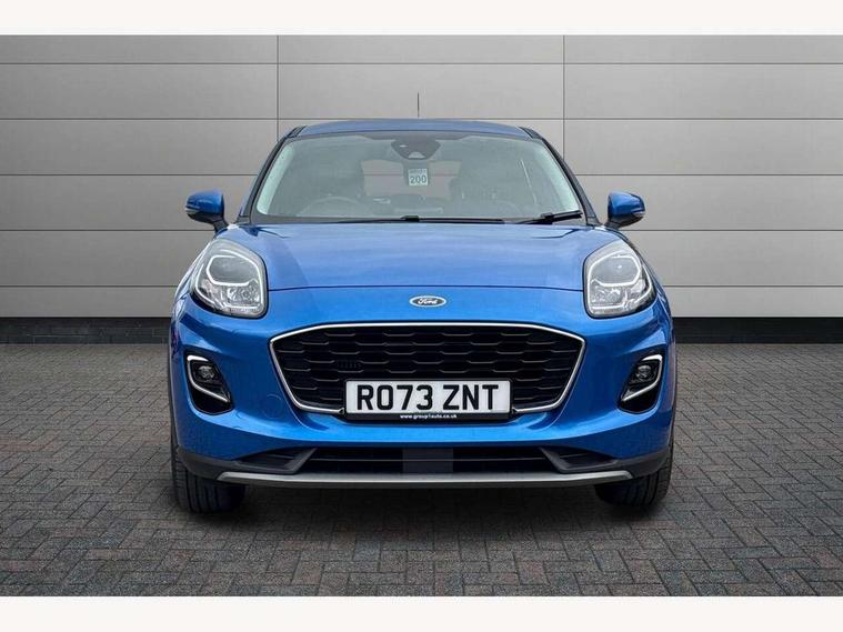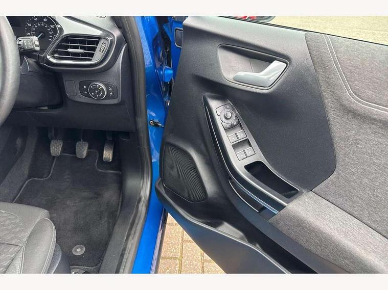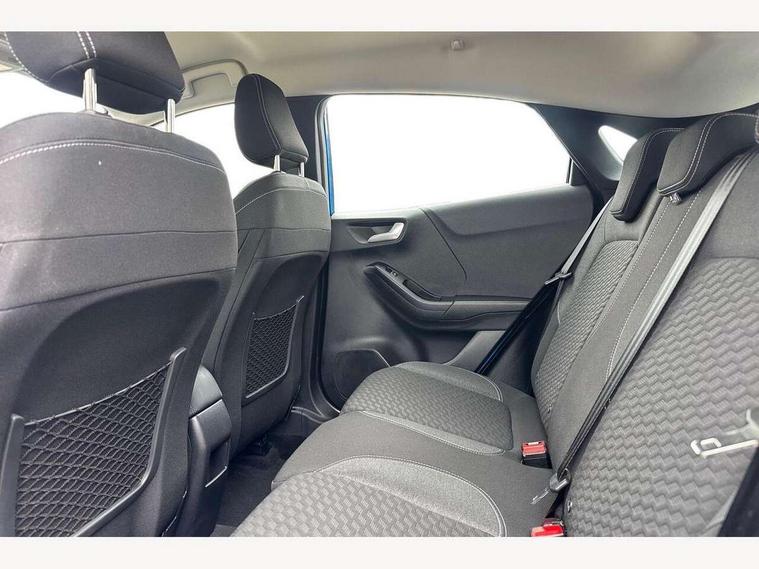 Driver impairment monitor, Emergency call service, Ford easy fuel, Lane keeping aid with lane departure warning, Power assist steering, Power start button, Rear parking sensor, Selectable drive modes(Normal, Eco, Sport, Slippery and Trail), Speed sign recognition, Standard suspension, Automatic headlights with auto high beam, Automatic rain sensing wipers, Body colour rear spoiler, LED rear lamps, Power foldable heated door mirrors with puddle lamps, Projector headlamps with LED day time running lights and front fog lamps, Quickclear heated windscreen, Rear side wing doors, Rear wiper, Third brake light, 3 seat bench in 2nd row, Centre console with armrest and stowage, Electronic automatic temperature control (EATC), Ford megabox extended bootspace, Front and rear head restraints, Front floor mats, Manual 2 way passenger seat adjustment, Manual 4 way driver seat adjust with lumbar adjustment, Sensico leather steering wheel/gear knob/handbrake, Single front passenger seat, Titanium cloth upholstery, Ford SYNC 3 navigation pack - Puma, 3 rear seatbelts, Child safety lock, Electronic stability control (ESC) and hill start assist, Pedestrian/cyclist detection & post-collision braking, Pre collision assist system, Tyre pressure monitoring system (TPMS), Thatcham alarm, 17" 10 spoke absolute black machined finish alloy wheel,