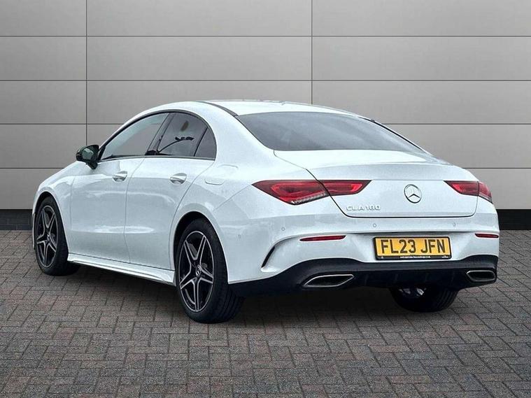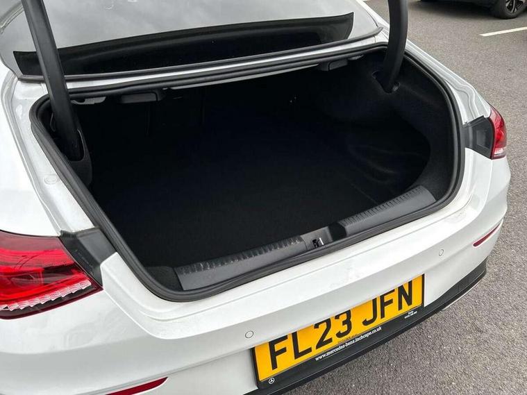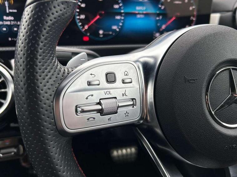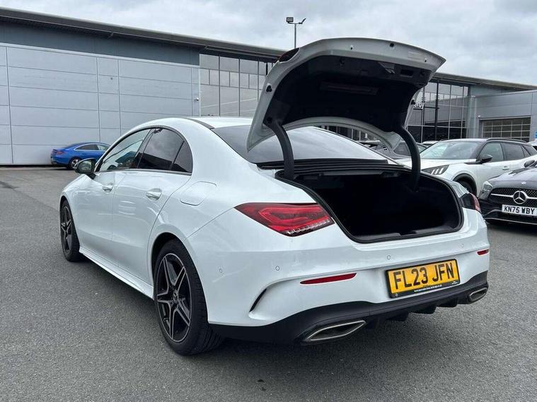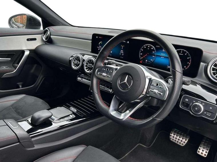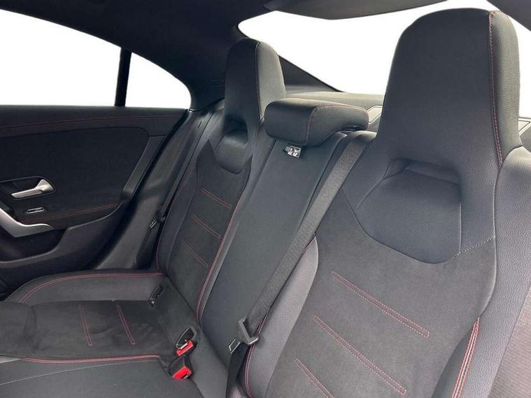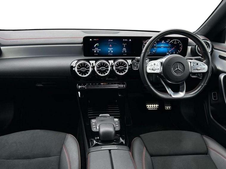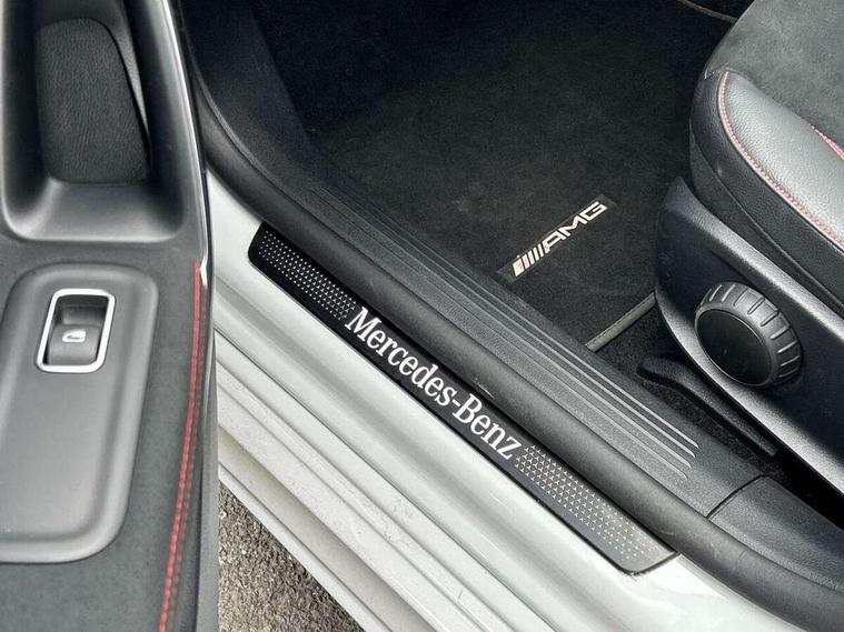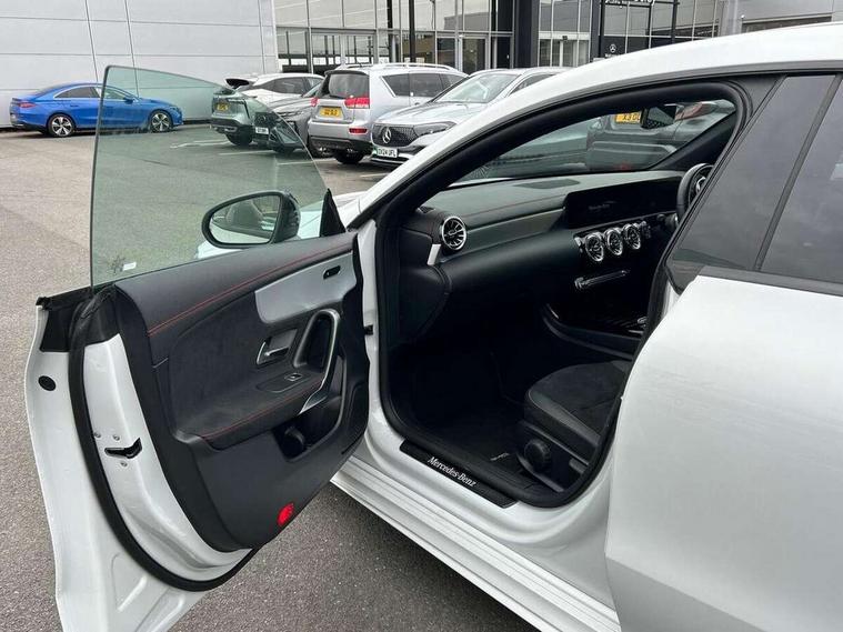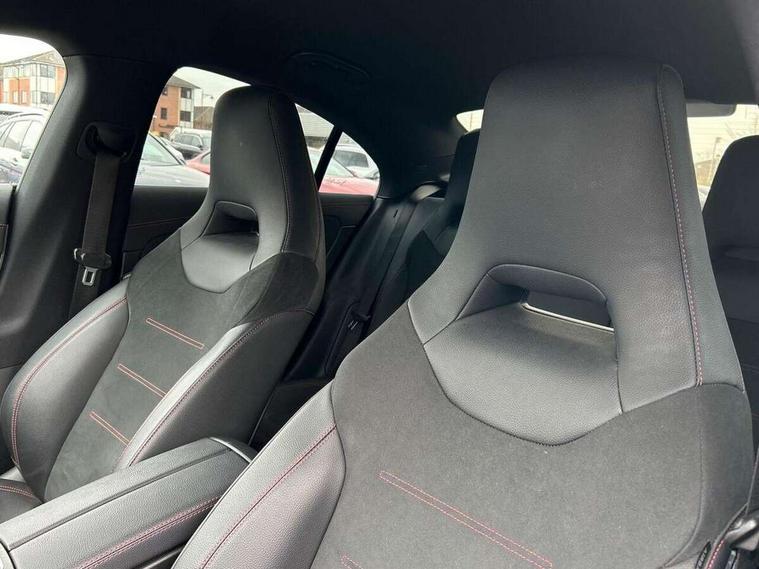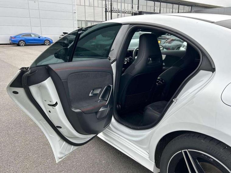 10.25 inch Instrument display with digital cockpit, 10.25 inch touchscreen central media display, Active lane keeping assist, Attention assist - Monitors steering behaviour and long journey fatigue, Bluetooth connection, Car wash mode, Cruise control with limiter, Direct steer system with speed sensitive power steering, DYNAMIC SELECT with a choice of driving modes (ECO, Comfort, Sport and Individual), ECO start/stop function, Fluid level warning indicator for fuel, oil, coolant and washer fluid, Hard-disk navigation, Hey Mercedes Voice activation, Lamp failure indicator, Mercedes me connect including emergency call system, accident recovery, breakdown and maintenance management, Mercedes me remote services, Outside temperature gauge, Owners manual and service booklet in English, Pre-installation of private car share, Preinstallation for Mercedes Benz link, Radio aerial integrated into front and rear windshields, Service indicator (ASSYST), Smartphone integration with Apple CarPlay and Android auto, Speed limit assist, Trip computer in multifunction display with current consumption indicator, Lowered comfort suspension, Rear axle multi-link, DAB digital radio tuner, MBUX multimedia system, Mercedes Benz sound system (100 W) with 6 speakers, USB (type C) ports (2) in stowage compartment and 1 in front of centre console, Adaptive brake lights, AMG body styling with AMG front apron and rear apron and visible exhaust tailpipe in chrome trim elements, AMG bodystyling side skirts, Body colour bumpers, Body colour door handles, Chrome beltline strips, Diamond radiator grille pins in chrome, Electric windows, Electrically adjustable and heated door mirrors with integrated LED indicators, Exhaust system with 2 Visible tailpipe trim elements and rear apron with trim in chrome, Headlamp assist automatic headlamp activation, Heated glass rear windscreen + timer control, High level LED third brake light, Interior mirror with black reading lamps and frameless, LED high performance headlamps with integrated LED daytime running lights, LED tail lamp, Privacy glass with dark tinting on rear side windows and rear window, Rain sensing windscreen wipers with two sensitivity settings, Rear boot, Rear fog lamp, Rear side wing doors, Variable front intermittent wipers, Window line trim strip in chrome, 3 seat bench in 2nd row, 3 spoke flattened bottom nappa leather multifunction steering wheel with perforated leather in grip area, 40:20:40 split folding rear seat backrests, Air condition air vents with surround in silver chrome, Air conditioning - Two zone thermotronic luxury automatic climate control with display, Artico man-made leather upholstery, Automatic child seat recognition sensor, Black roof lining, Brushed stainless steel sports pedals with rubber studs, Floor mats with stitched AMG lettering, Front centre armrest with stowage, Front door sills with Mercedes Benz lettering, Galvanished gear shift paddles on steering wheel, Heated front seats, Illuminated glove compartment stowage, Interior lighting - 64 colour Ambient lighting, Luggage net on driver/front passenger seat backrest, Manually adjustable front seats, Manually height and reach adjustable steering column, Rear head restraints, Single front passenger seat, Sport seats with fixed head restraints, Stowage compartment in centre console with retractable cover, Sunvisors with illuminated vanity mirrors, Touchpad on center console, Twin front cupholders, Two outer rear seat isofix and top tether child seat fixing points, Light and sight pack - CLA, Mirror pack - CLA, Night package - CLA, Parking package - CLA, Seat comfort pack - CLA, Active bonnet pedestrain safety measure which detects an impact and raises bonnet by 65mm, Active brake assist includes forward collision warning system with autonomous braking, Adaptive brake assist with hold function and hill start assist, Anti lock braking system (ABS) with brake assist, Black seat belts, Bonnet with power domes, Brake pad wear warning indicator, Childproof locks manually operated for rear doors and electrically operated for rear power windows, Crash responsive emergency lighting, Driver and front passenger head and sidebags, Driver and front passenger windowbags, Drivers knee airbag, Dual stage driver and front passenger airbags, Electric parking brake, Electronic stability programme with acceleration skid control, ESP curve dynamic assist, Front and rear seatbelt reminder, Front passenger seat occupancy sensor, Three point rear seat belts, Tyre pressure monitoring system, Warning triangle and first aid kit, Guard 360 degree guard vehicle protection system with immobiliser and interior protection, Keyless Go starting function, Remote central locking and crash sensor with emergency opening function, Light aluminium with longitudinal grain interior trim, 18" AMG 5 twin spoke light alloy wheels painted in black with high sheen finish, Summer tyres, Tirefit tyre sealant kit,