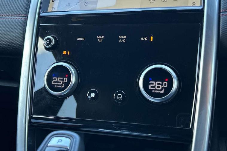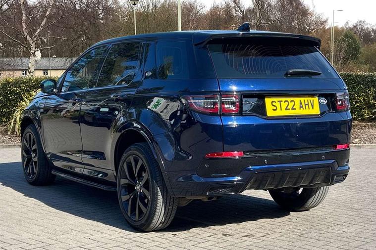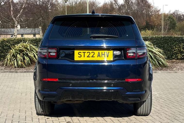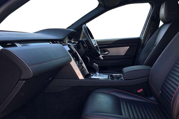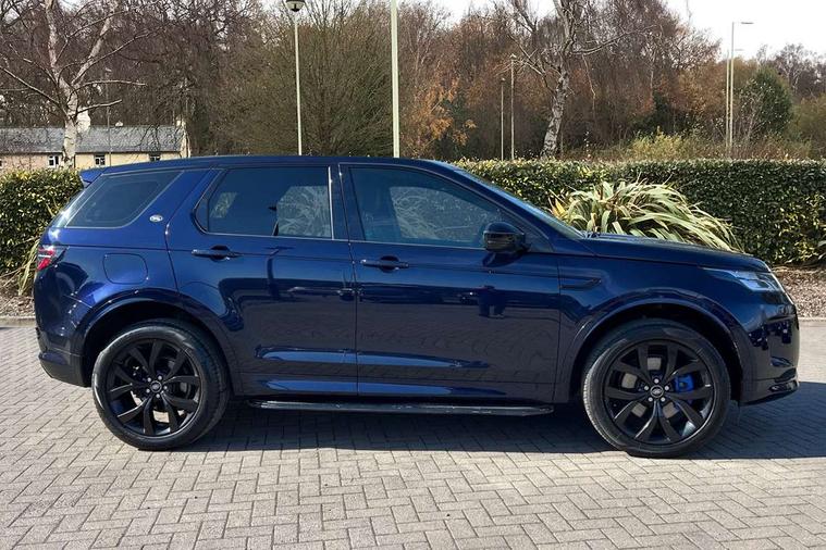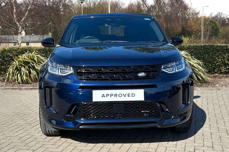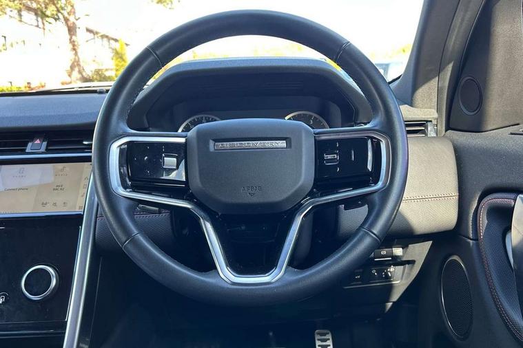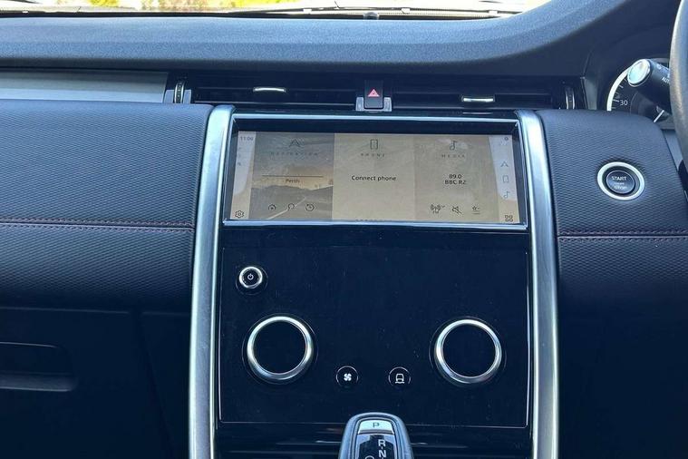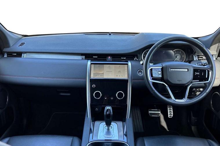 10" touch screen, Adaptive cruise control, Android Auto, Apple CarPlay, Driver condition monitor, eCall emergency call system, Front and rear parking aid, InControl remote premium, Lane keep assist, Locking fuel flap, PAS, Pivi Pro connected navigation system with upgraded Infotainment, Powered tailgate/boot lid, Push button start, Rear collision monitor, Service interval indicator, Traffic sign recognition with adaptive speed limiter, Trip computer, Wade Sensing, All terrain progress control, Coil suspension system, Diesel particulate filter, Dynamic stability control, Terrain Response 2, Bluetooth connectivity including audio streaming, Digital Audio Broadcast radio-DAB, Steering wheel mounted audio controls, 3rd brake light, Automatic headlights, ClearSight interior rear view mirror, Electric front/rear windows, Electric heated/power fold door mirrors with approach lights and auto dimming driver side, Fixed panoramic sunroof with powered sunblind, Front and rear recovery eyes, Heated rear window, Heated windscreen including heated washer jets, No badges, R Dynamic badge, Rain sensing windscreen wipers, Rear fog lights, Rear side wing doors, Rear wing door, Rear wiper, 5 seats, Bright metal pedals, Centre console with armrest, Footwell lights, Front and rear grab handles, Front passenger isofix child seat attachment, Loadspace cover, Loadspace light, Overhead lighting console, Overhead stowage for sunglasses, Rear headrests, Satin chrome gearshift paddles, Sunvisors with illuminated vanity mirrors, Tilt/reach adjustable steering wheel, Black exterior pack - Discovery sport, Online pack with data plan - Discovery, 3 point seatbelts on all seats, ABS, Brake hold function, Child locks on rear doors, Collision mitigation braking system, Cornering brake control (CBC), Driver/Front Passenger airbags, Drivers knee airbag, Electronic brake force distribution, Electronic parking brake, Emergency brake assist, ESP + traction control, Hill descent control, Hill launch assist, Pedestrian airbag system, Rear seat ISOFIX, Roll stability control, Side and curtain airbags for front and 2nd row seats, Trailer stability control, Tyre pressure monitoring system, Battery Back Up System (BBUS) with tilt sensor, Global lock and unlock switch on driver door, Intrusion sensor, Keyless entry, Locking wheel nuts, Centre stack rails in noble chrome,
