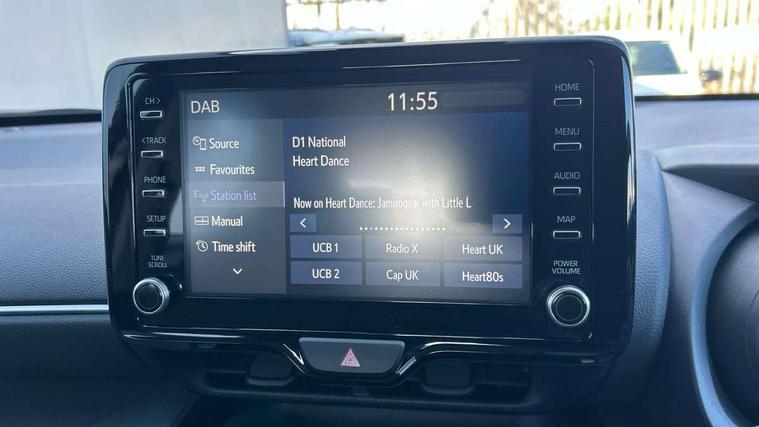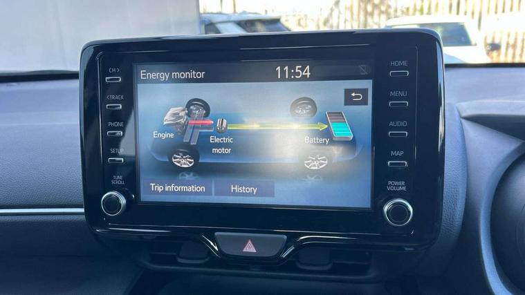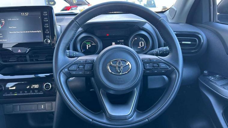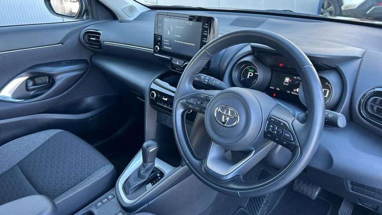 4.2" multi information display, 8" Toyota touch 2 multimedia system with Smartphone integration with Apple CarPlay and Android auto, Adjustable speed limiter, Bluetooth connectivity, Digital speedometer, Driver attention alert system, eCall emergency system, Electric power steering, Full range intelligent adaptive cruise control, Hybrid system indicator, Key reminder warning, Lane trace assist, Multimedia, audio, telephone and voice recognition switches on steering wheel, My T Connected services, Pre-collision system enhanced with emergency steering assist, Reversing camera, Road sign assist - RSA, Steering assisted vehicle stability control, 6 speakers, DAB Digital radio, USB connection, 3rd brake light, Acoustic windscreen glass, Anti-jam protection on power windows, Auto high beam [AHB] with on/off switch, Automatic headlights, Black lower front grille, Black Shark-fin antenna, Black upper front grille, Black wheel arch mouldings, Body colour door handles, Body colour front bumper, Body colour rear bumper, Electric adjustable heated door mirrors, Follow me home headlights, Front and rear electric windows with auto up/down function, Front intermittent wipers, Halogen projector headlights, Headlight cut off reminder, Indicators integrated on door mirrors, Intermittent rear wiper, LED daytime running lights, LED Indicators, Manual headlight levelling, Manually retractable door mirrors, Noise reduction layer on windscreen, Rain sensor, Rear side wing doors, Rear spoiler, Rear window defogger, 12v power outlet - front, 2x Rear coat hooks, 3 seat bench in 2nd row, 3 spoke leather steering wheel, 60/40 split folding rear seat, Adjustable speed limiter switch on steering wheel, Auto air conditioning, Boot light, Central armrest, Driver and front passenger personal lights, Fabric door trim, Fabric upholstery, Front console box, Front cup holders, Front head restraints, Glovebox, Grey roof lining, Height adjustable driver's seat, Height adjustable front passenger seat, ISOFIX child restraint system, Lane departure alert switch on steering control, Leather gearshift, Manual telescopic and tilting steering wheel, Mirror on driver and passenger sun visor, Pollen air filter, Rear head restraints, Single front passenger seat, Soft tonneau cover, 3x3 point rear seat belts, ABS+EBD+Brake assist, Driver and passenger central airbags, Driver and passenger front airbags, Driver and passenger side airbags, Electronic parking brake, Emergency brake light system (EBS), Front seat belt reminder, Hill start assist control (HAC), Passenger airbag on/off switch, Pre-collision system with pedestrian and cyclist detection, Rear door child safety locks, Rear passenger side airbags, Rear seat belt reminder, Traction control, Tyre pressure warning system, Immobiliser, Intrusion alarm, Keyless smart entry with push button start, Power door locks, Power passenger window lock, Remote door lock, 16" 10 spoke alloy wheels, Tyre repair kit,